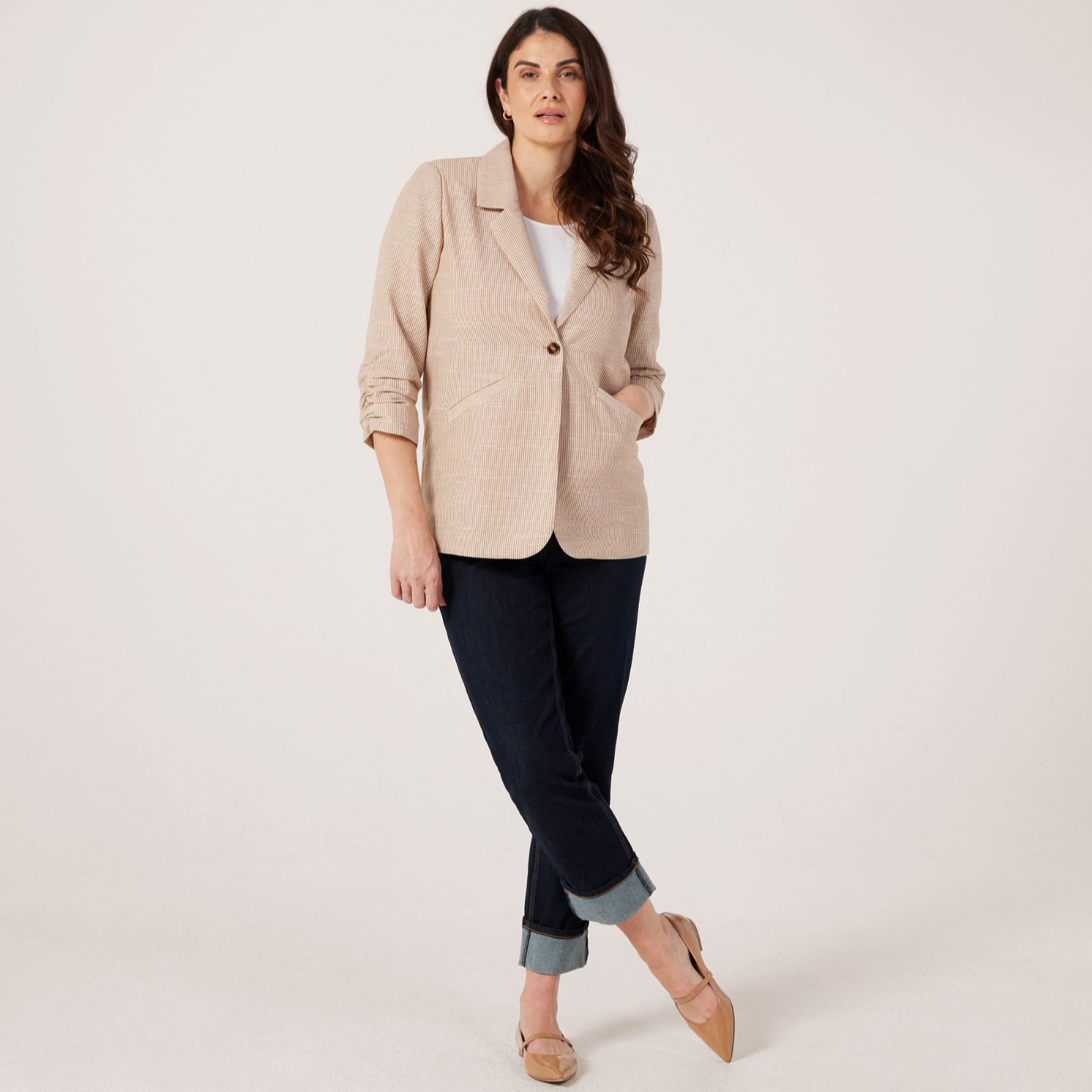 Add a touch of effortless sophistication to your wardrobe with this striped blazer from Izabel London, featuring a classic tailored silhouette and a single button fastening for a polished finish. Ideal for elevating your workwear or adding a smart edge to off-duty outfits, it transitions seamlessly from office meetings to weekend brunches. Try layering it over a simple tee and jeans for a chic, everyday look.