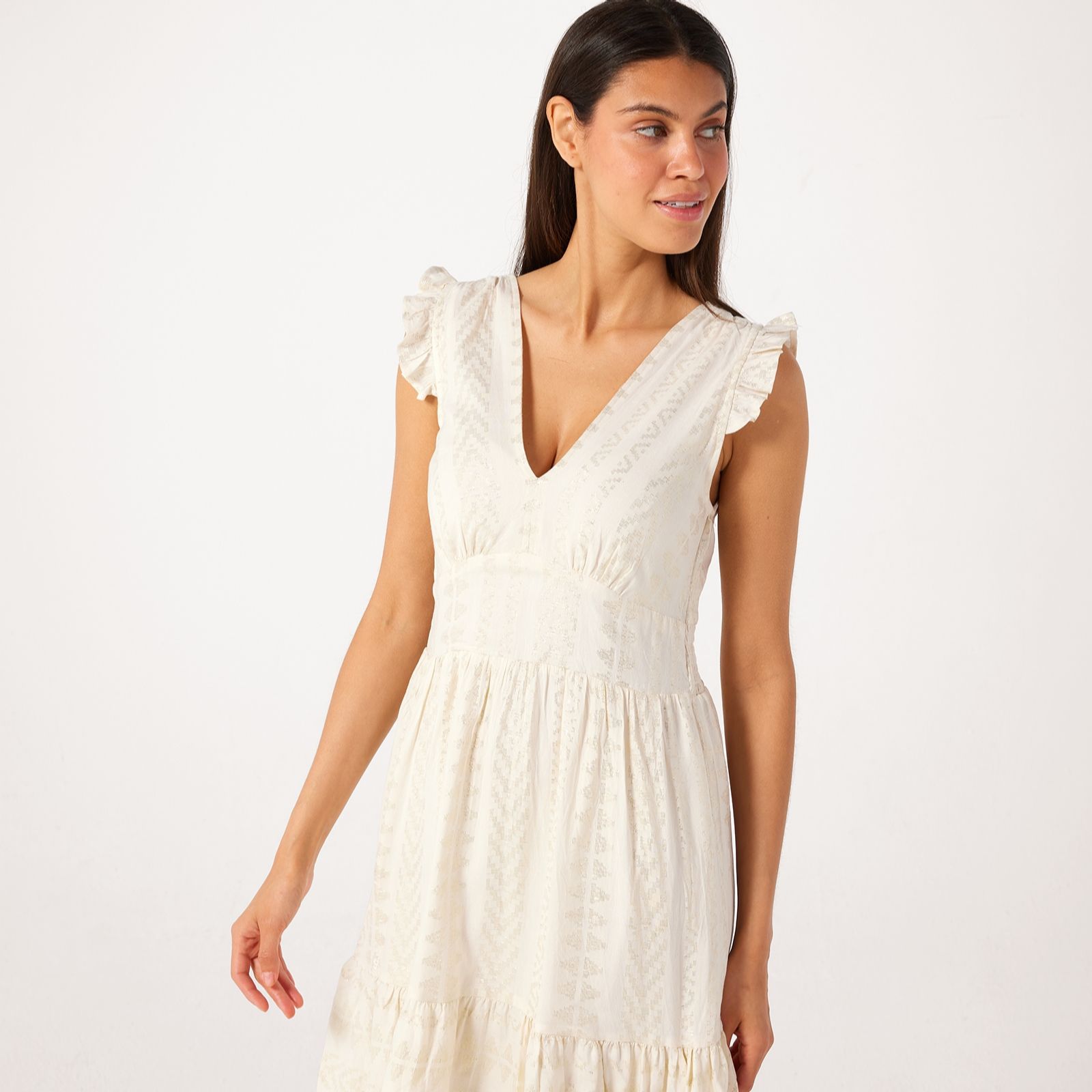 Shimmer into any occasion with the foil print dress from Izabel London, where a delicate metallic finish catches the light for an effortlessly glamorous look. Whether youre heading to a special event or elevating your everyday style, this dress brings a touch of luxury to any moment. Pair with heeled sandals and a statement clutch for a polished ensemble.