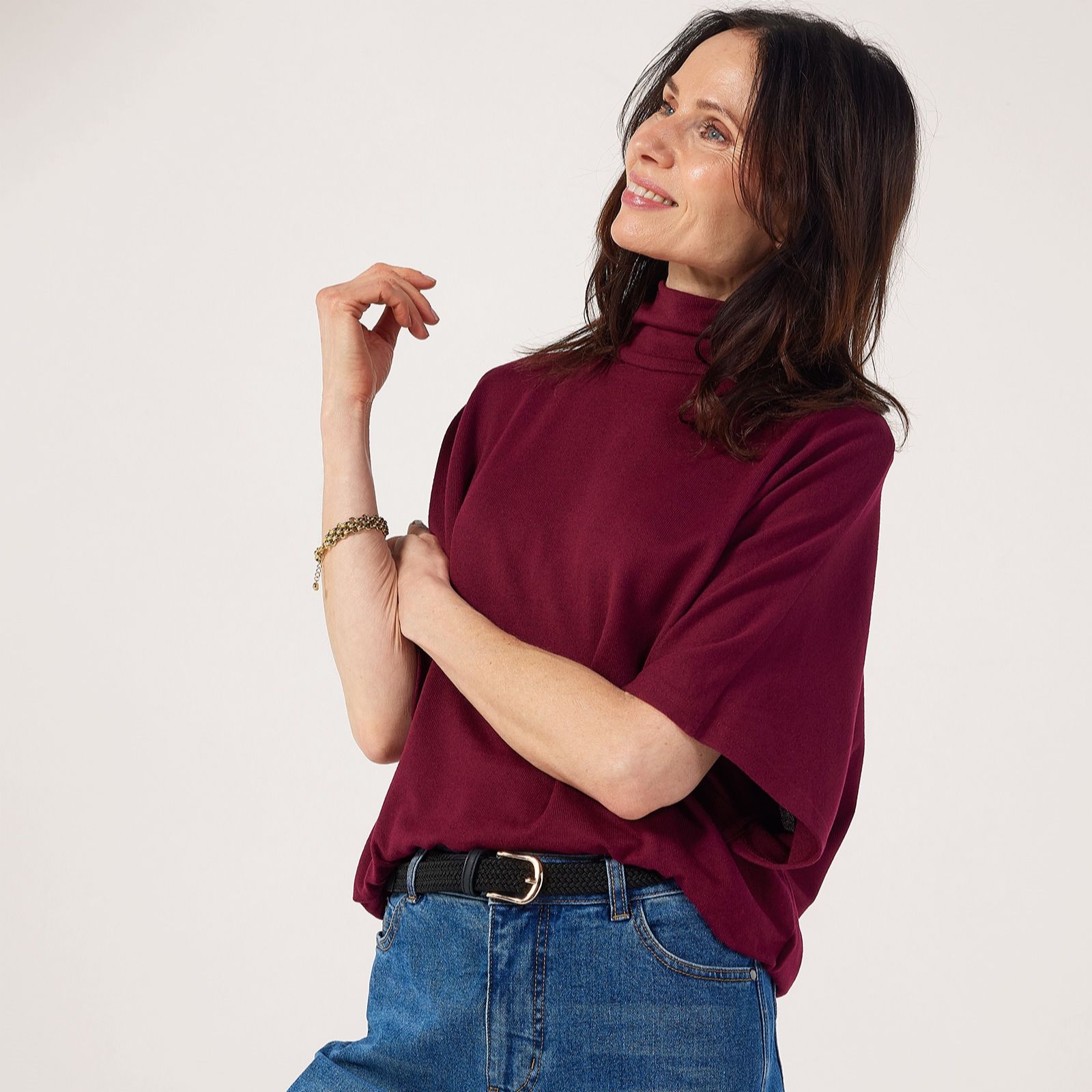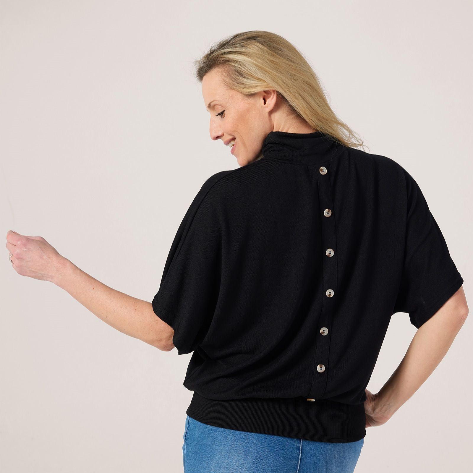 Get your sophistication on point with the roll neck short sleeve knit top from Izabel London, a chic blend of classic elegance and modern detailing. Featuring a sleek button-back design, this semi-relaxed top is perfect for smart-casual days at the office, weekend lunches or evening drinks. Pair it with tailored trousers for a polished look or dress it down with jeans and ankle boots for effortless everyday style.