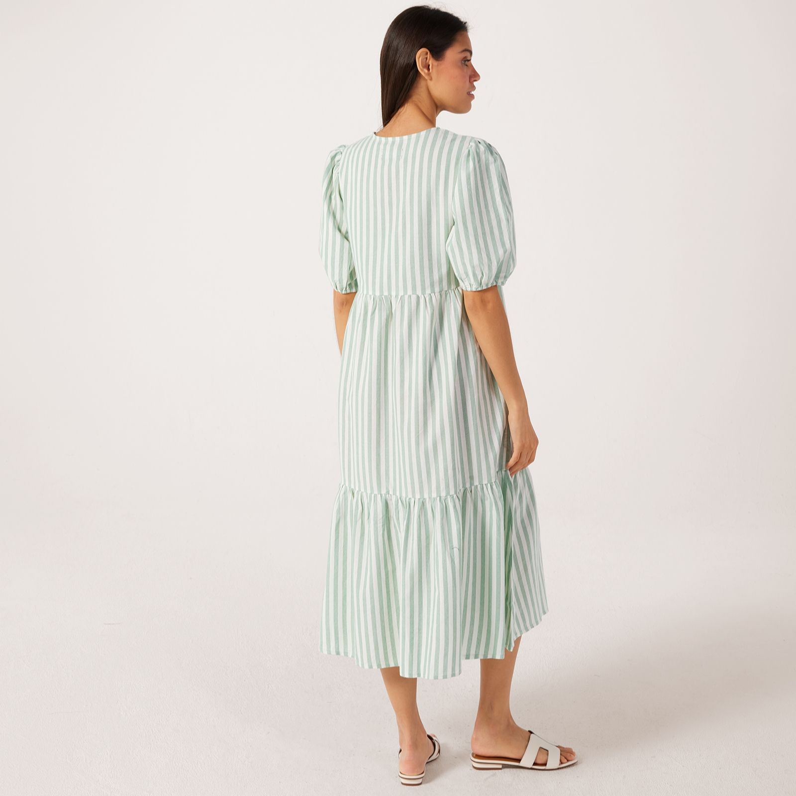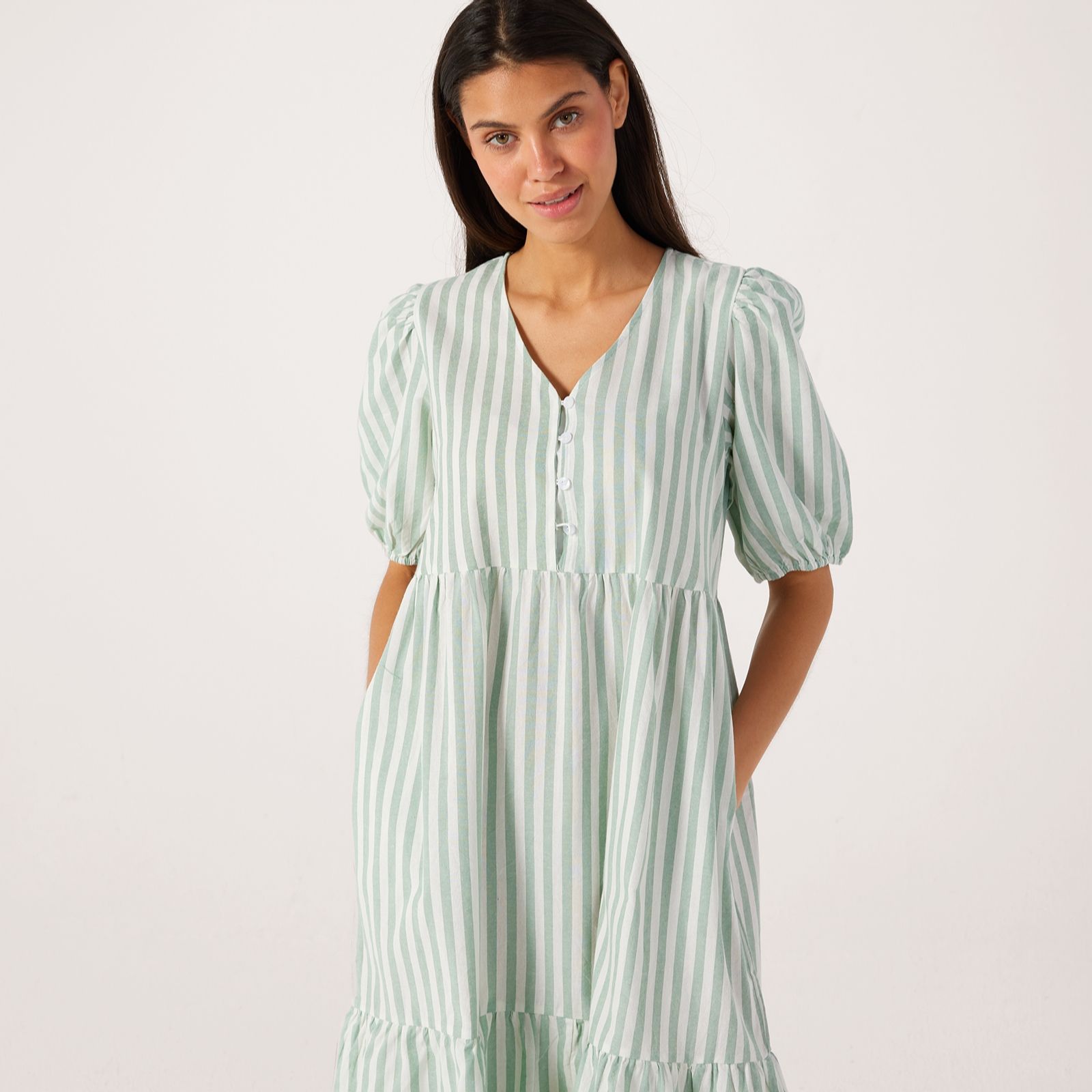 Step out in style with the striped midi dress from Izabel London, where timeless stripes meet a flattering silhouette for an effortlessly chic look. Whether you're heading to a weekend brunch or a relaxed afternoon in the city, this dress brings a fresh, easy elegance to any occasion. Pair it with trainers for a laid-back vibe or add wedges and a statement bag for a more polished finish.