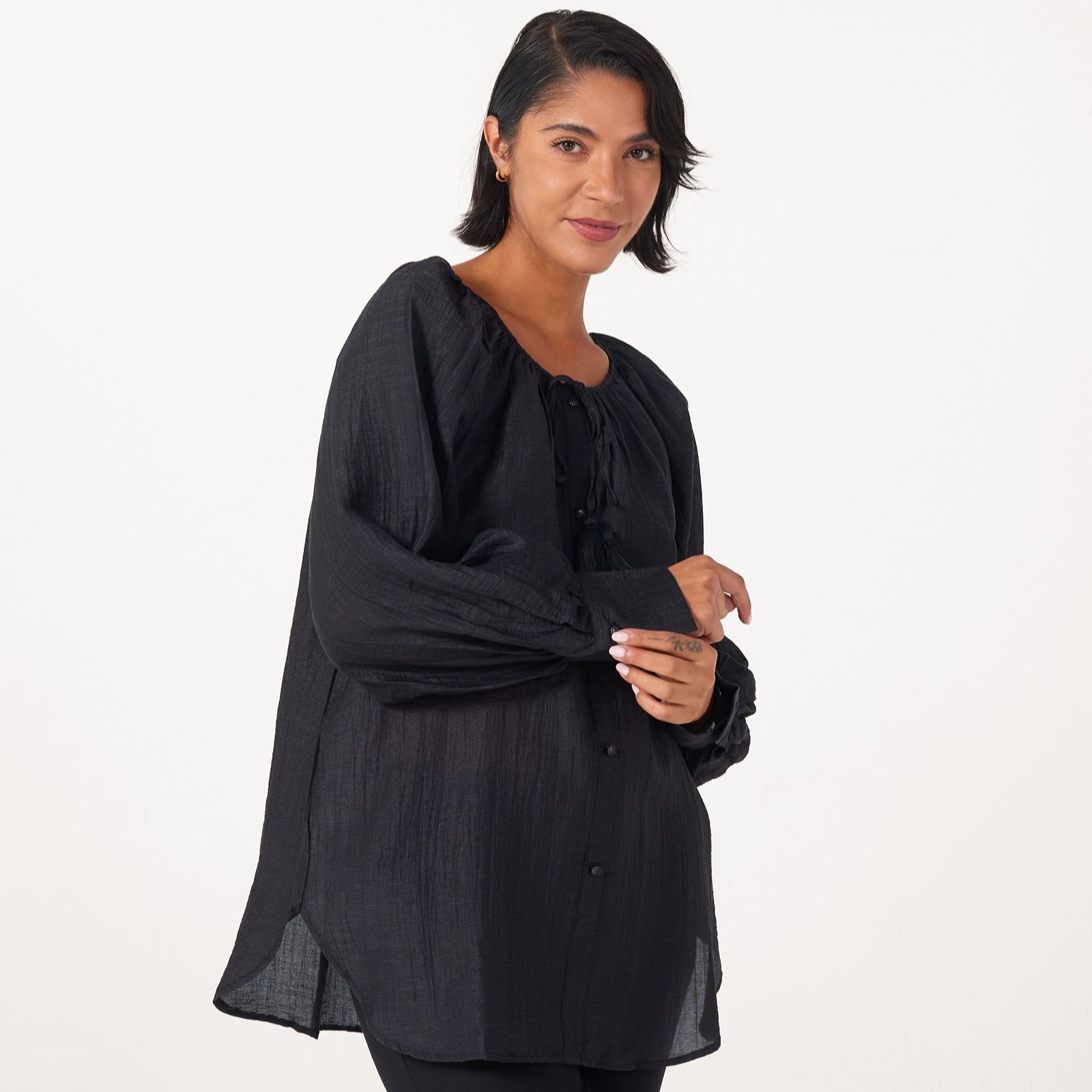 With its effortlessly chic silhouette, the drawstring blouse from Izabel London brings a modern twist to your everyday styling. Thoughtfully designed with button fastenings and an adjustable tie detail, this versatile piece is perfect for relaxed weekends or smart-casual workdays. Pair it with tailored trousers or your favourite denim for a look that transitions easily from day to evening.