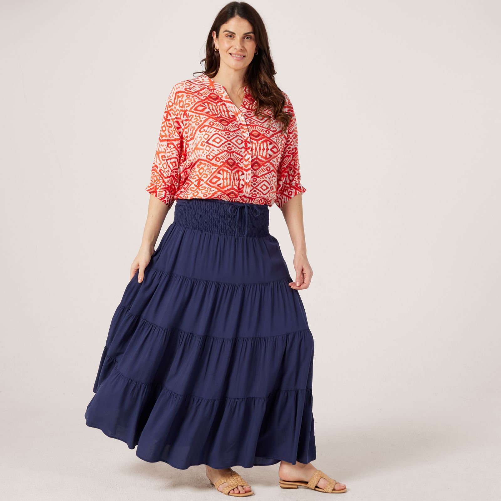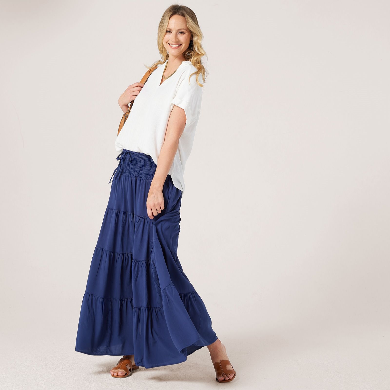 Bring a touch of boho-inspired elegance to your wardrobe with this tiered skirt from Izabel London. Designed with a relaxed fit and flowing silhouette, it moves beautifully with every step, making it perfect for casual days out or relaxed evening gatherings. Pair it with a tucked-in blouse and sandals for an effortlessly feminine look.
