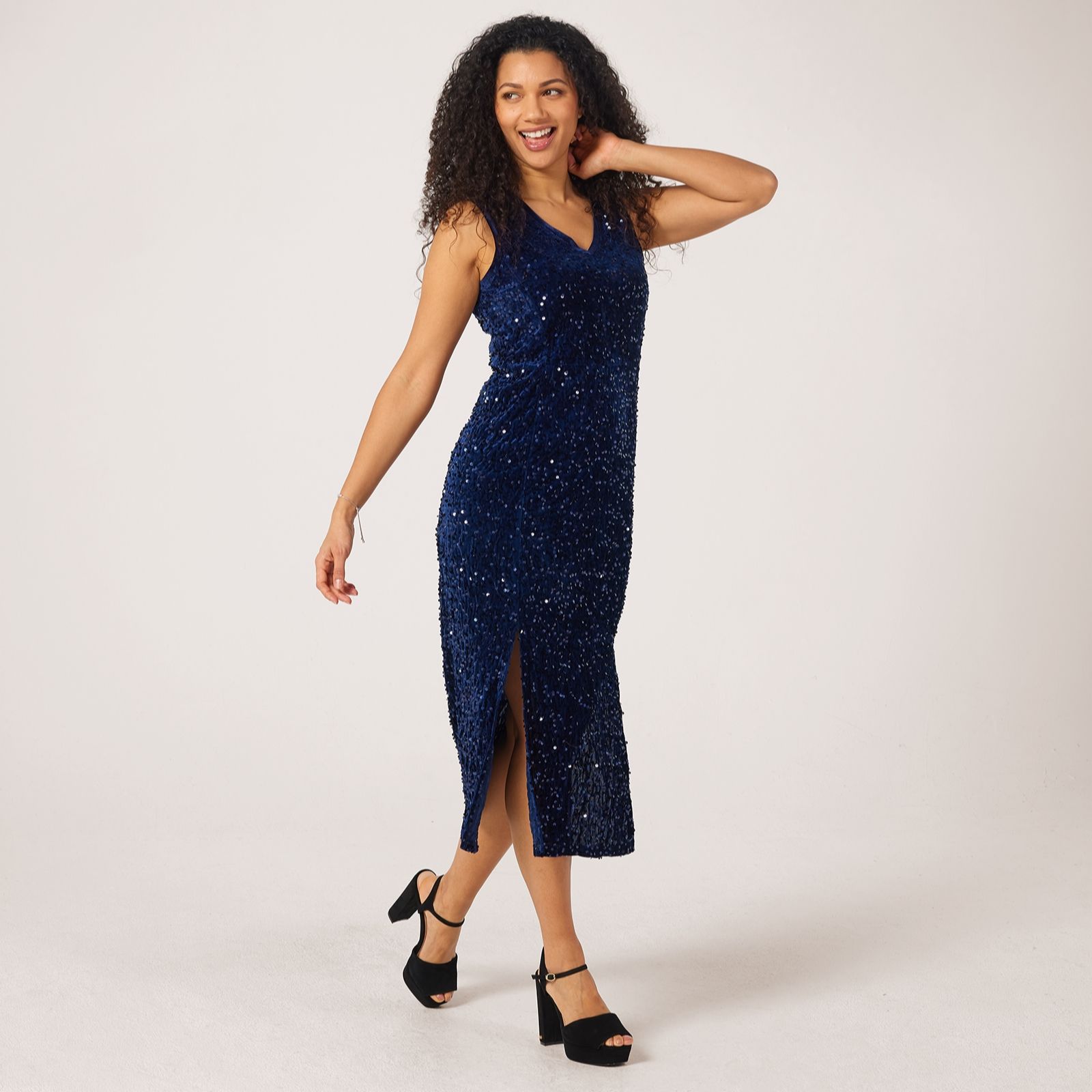 Dazzle at any event in the velvet sequin party dress from Izabel London, where midnight blue velour meets shimmering sequins for a look thats both glamorous and sophisticated. Perfect for festive gatherings, cocktail parties, or special evenings out, this dress promises to make you the centre of attention. Pair it with metallic heels and a statement clutch for a truly show-stopping ensemble.