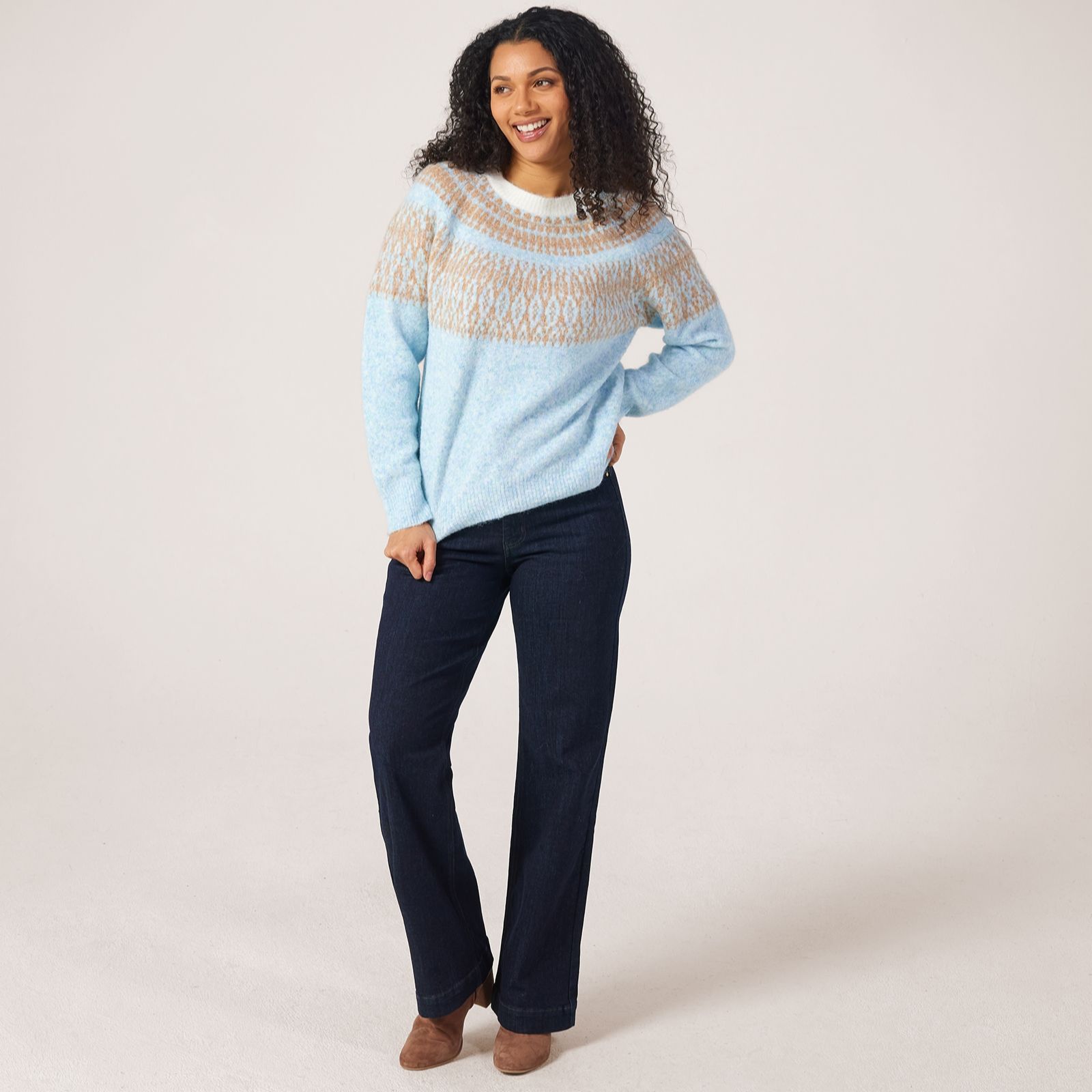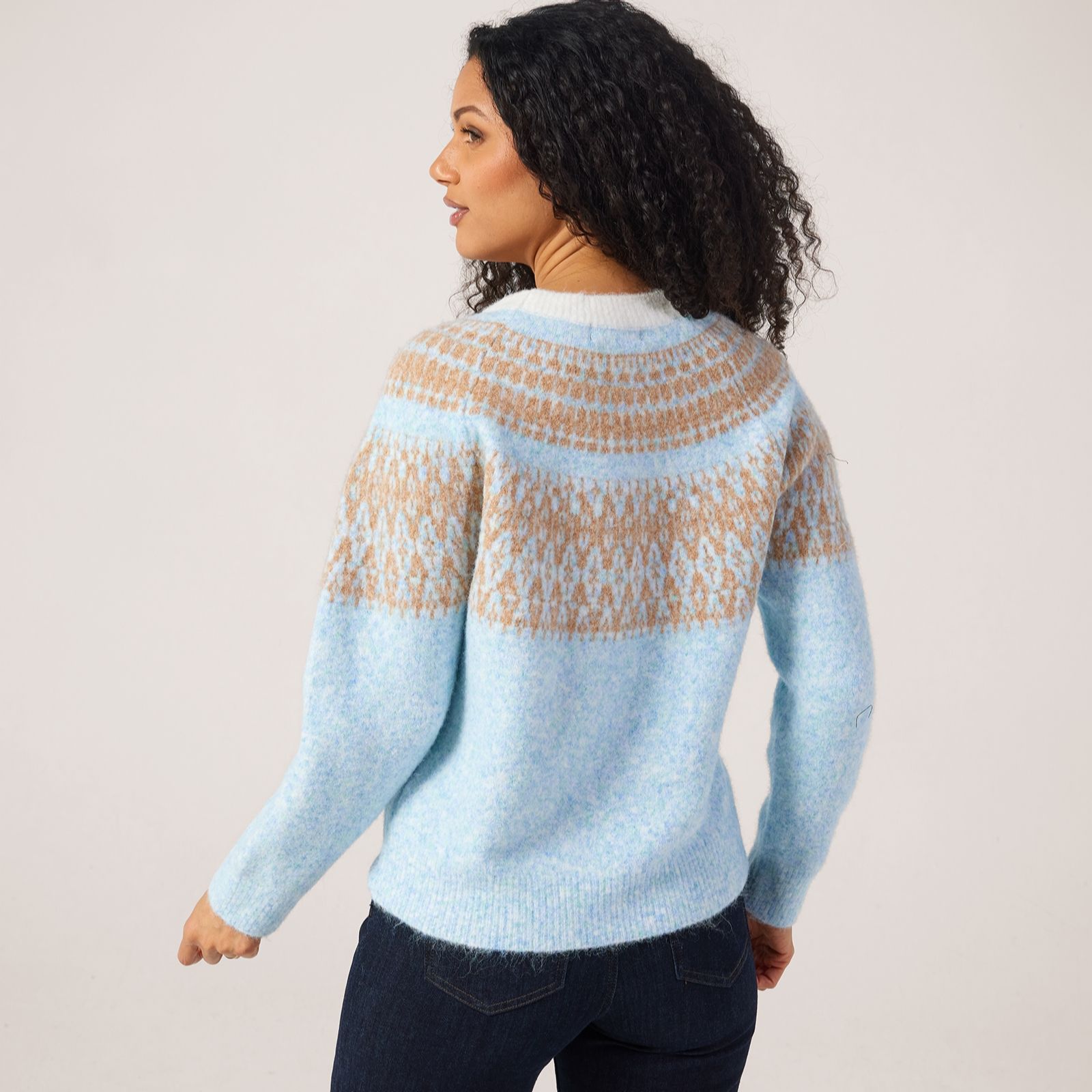 Bring a touch of timeless charm to your wardrobe with this Fair Isle knit jumper from Izabel London. Showcasing a beautifully woven pattern, this wool-blend piece offers cosy warmth and classic style for chilly days. Whether you're heading out for a casual brunch or enjoying a relaxed evening at home, its effortless design makes it a versatile choice. Pair it with your favourite jeans and ankle boots for an easy, stylish look.