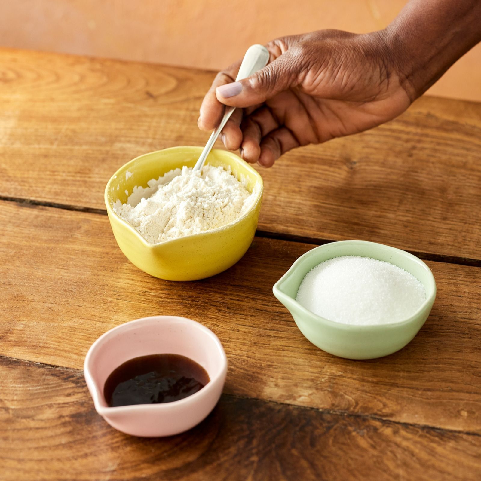 Elevate your culinary creations with Jamie Oliver's Big Love Pinch Me Pots, a delightful set that seamlessly blends charm and functionality. These adorable pots are perfect for serving dips and oils, and ingeniously double as measuring cups with capacities of 1, 0.5 and 0.25 cups. Crafted from durable stoneware, they feature handy pouring spouts and even nest together for easy storage.