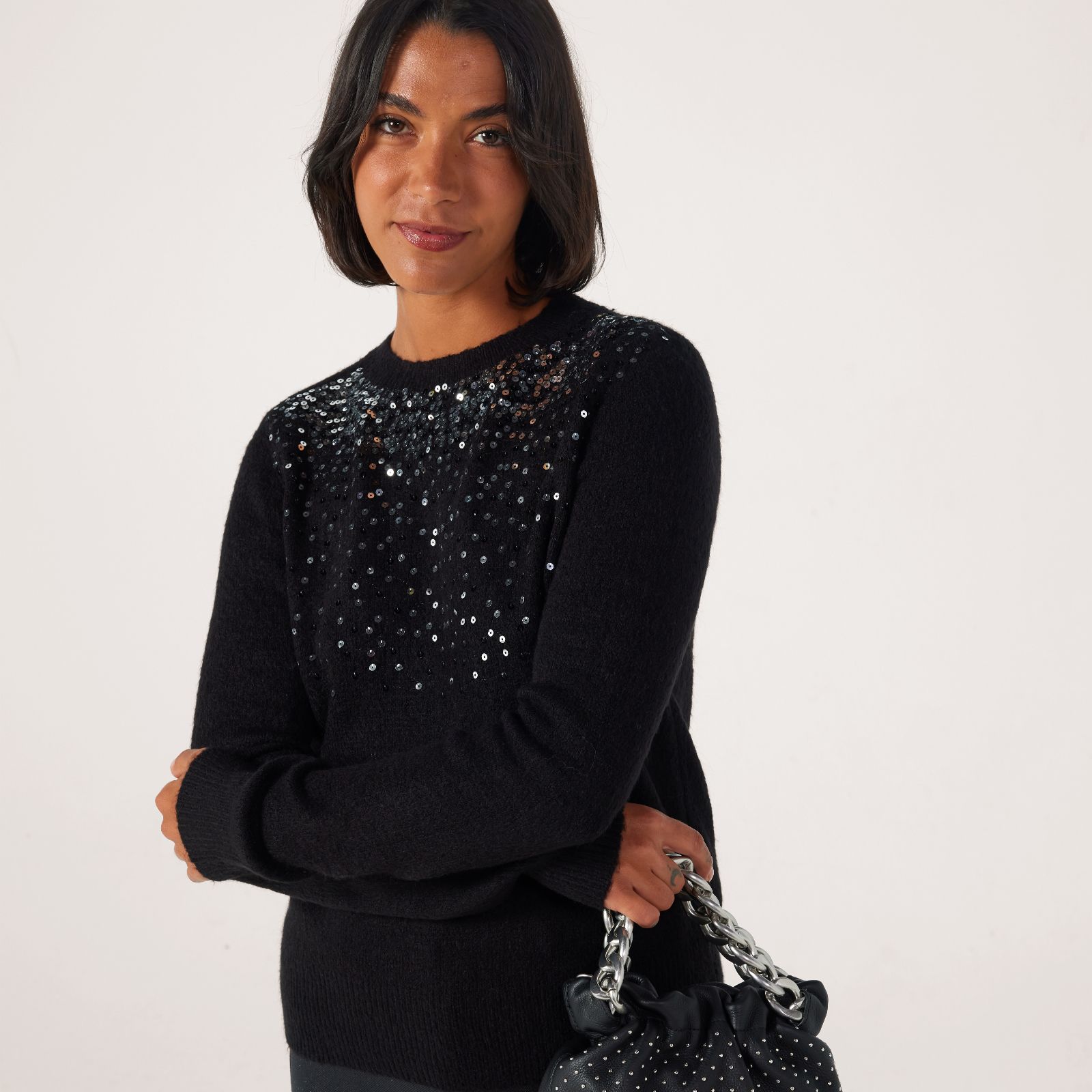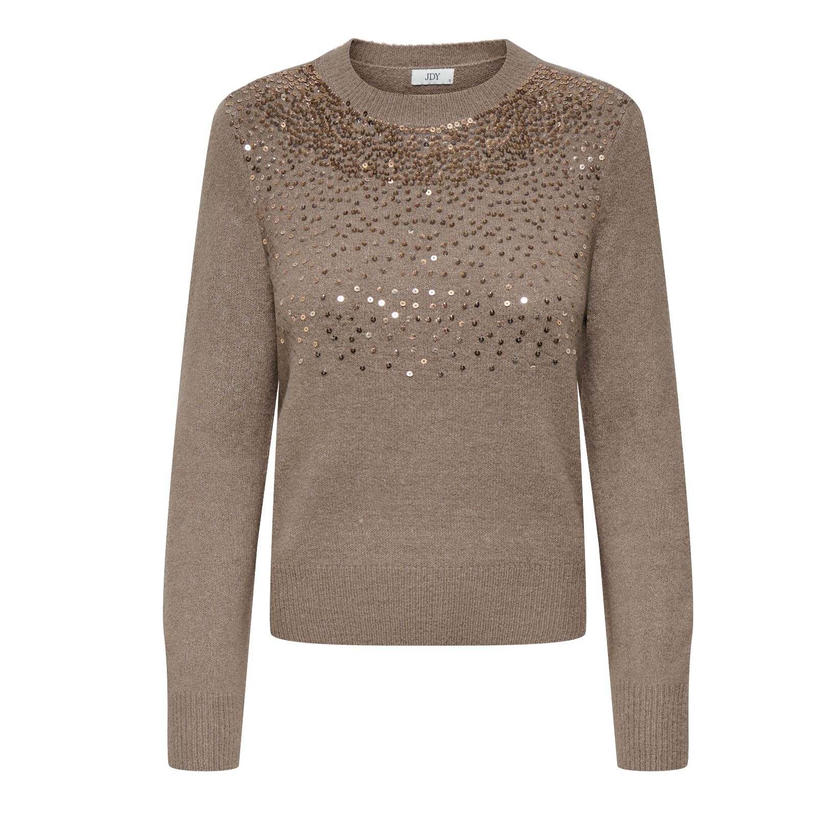 Add a touch of sparkle to your everyday style with the Amina scattered sequin knit jumper from JDY. This cosy pullover combines a classic ribbed round neck and long sleeves with shimmering glitter details, giving it a playful twist that works just as well for casual coffee catch-ups as it does for evening get-togethers. Try pairing it with tailored trousers for a chic smart-casual look or layer it over a midi skirt for effortless weekend charm.