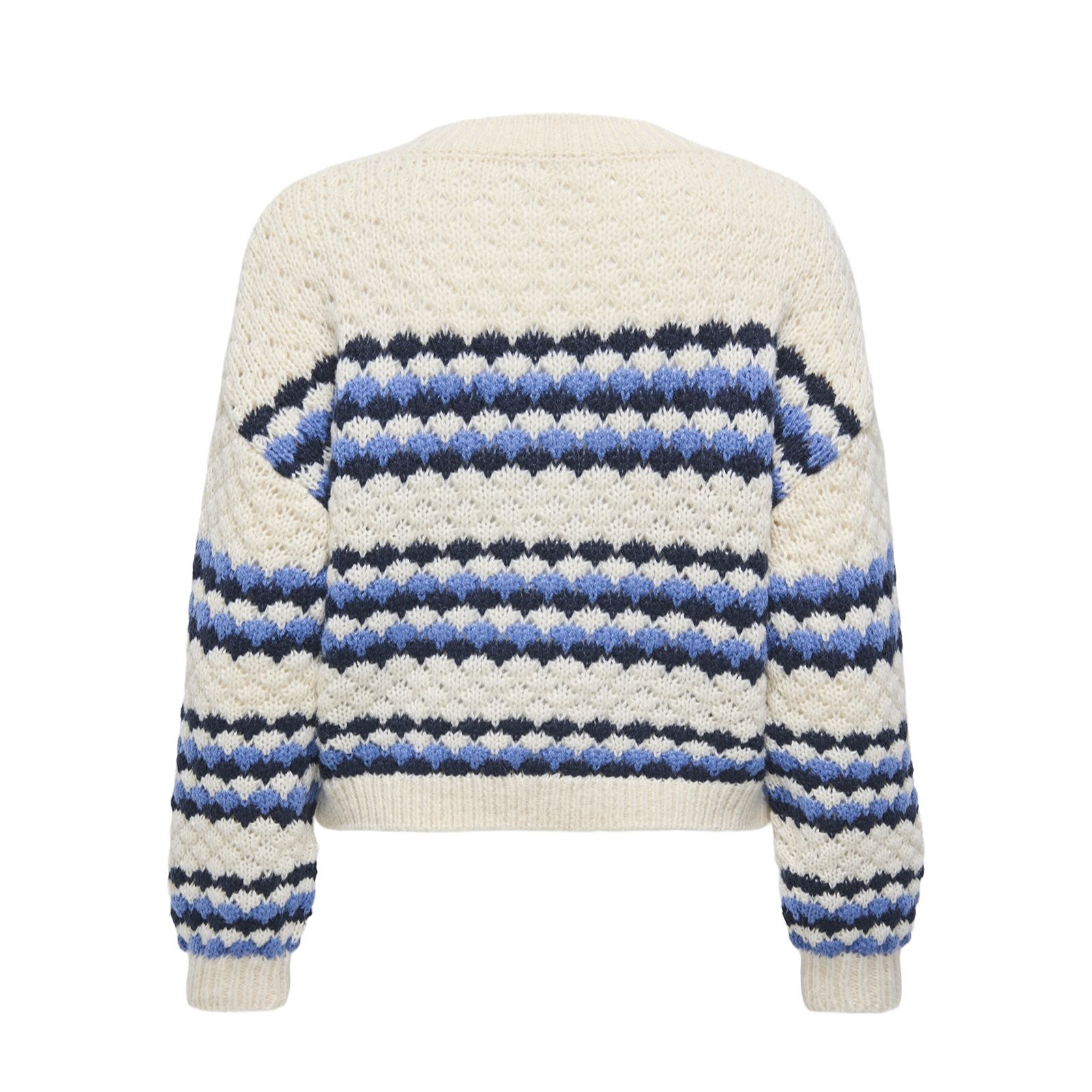 'Stripe' a pose in the Celeste striped knitted jumper from JDY, a cosy pullover with a stylish structure knit that brings texture and charm to your everyday looks. Perfect for laid-back weekends, coffee catch-ups or layering for the office, this versatile piece works across seasons with ease. Try pairing it with tailored trousers and loafers for a smart-casual vibe or team it with jeans and trainers for relaxed days out.