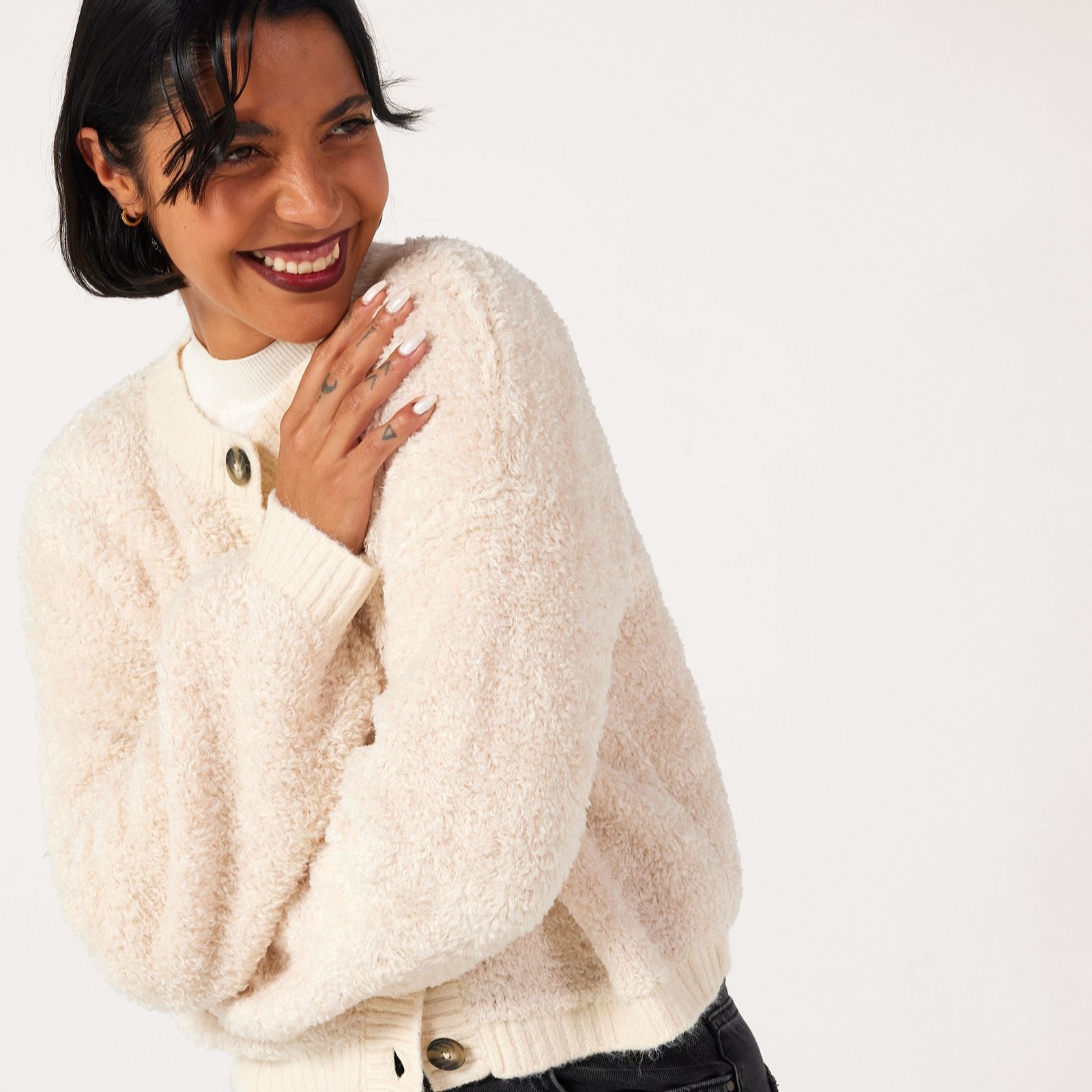Complete your look with the softness and texture of the JDY Eira textured cardigan. This easygoing knit is designed with a comfortable round neck, dropped shoulders and a button and loop fastening for subtle charm. Whether you're dressing for work or winding down at home, this jumper's versatile silhouette makes it a cosy addition to any look. Try pairing it with tailored trousers or your favourite jeans for an effortless, everyday style.