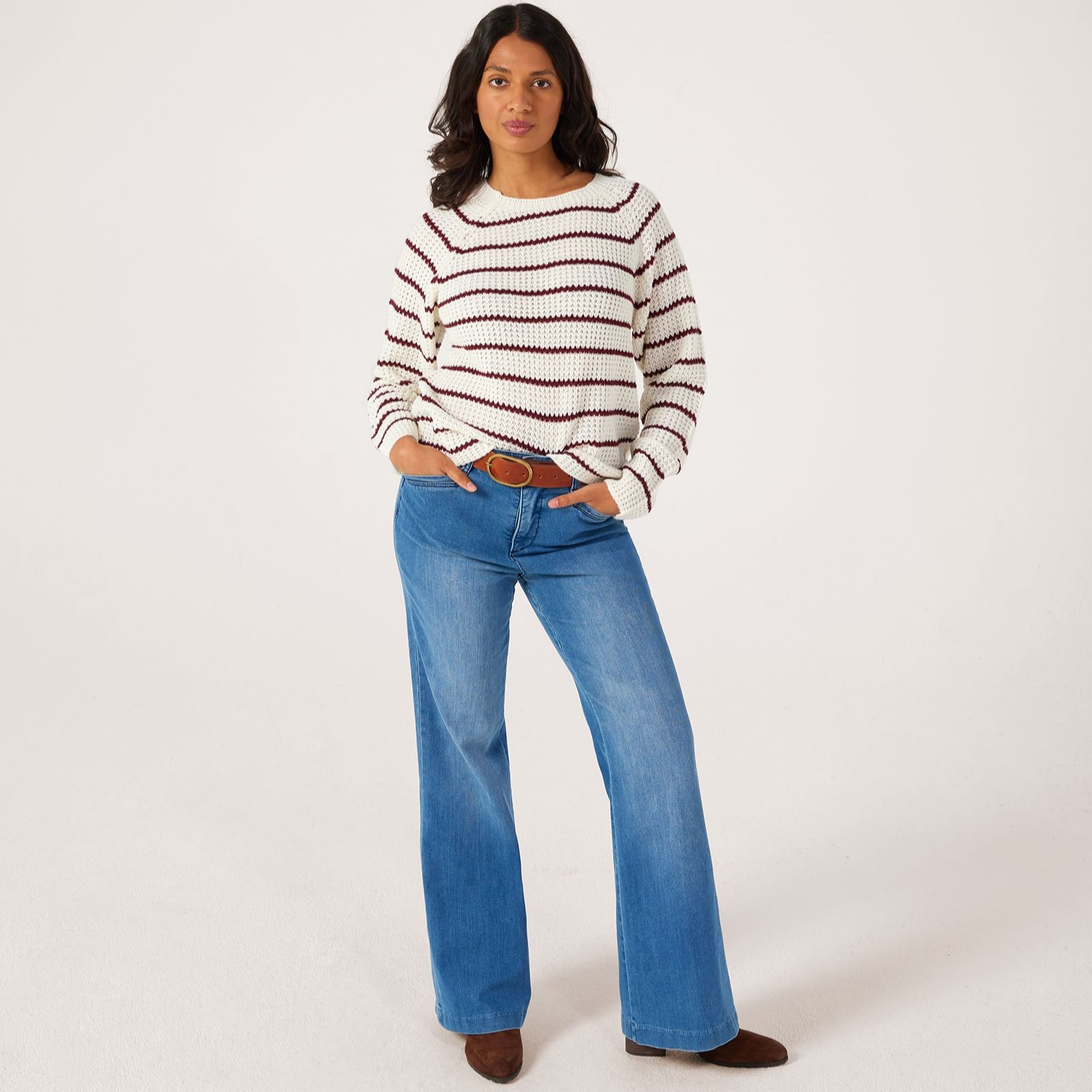 Indulge in the laid-back charm of the Ellen Striped Knitted Jumper from JDY. The classic stripes and flattering raglan sleeves give this pullover a timeless appeal, making it perfect for everything from relaxed weekends to smart-casual workdays. Layer it over a crisp shirt or style with your favourite jeans for an effortlessly stylish look.