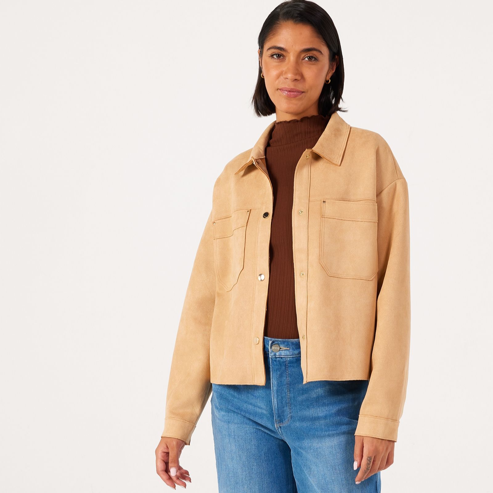 Discover where smart shirt style meets casual flair in this faux suede jacket from JDY. This jacket brings a modern edge to your everyday wardrobe thanks to its classic shirt collar, chest pockets and button fastening. Perfect for layering over a tee for a relaxed weekend look or pairing with tailored trousers for a contemporary office outfit, this versatile piece works equally well dressed up or down.