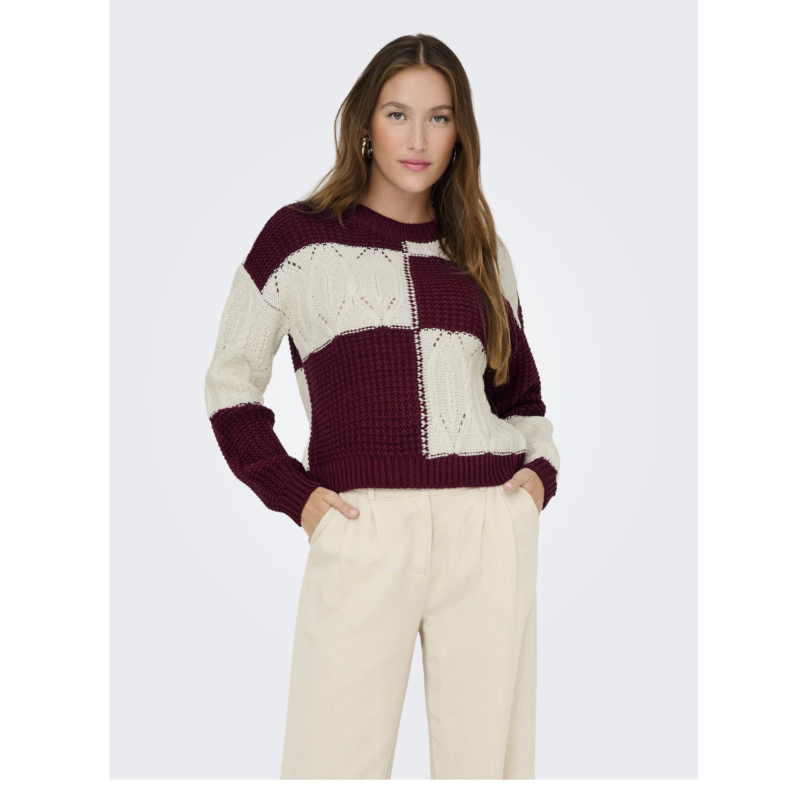 Bring a fresh twist to your wardrobe with the Justy colour block textured knitted jumper from JDY. Featuring a playful mix of patterns and a structured knit, this relaxed pullover is cosy and versatileideal for layering on chilly days or pairing with jeans and ankle boots for effortless style.