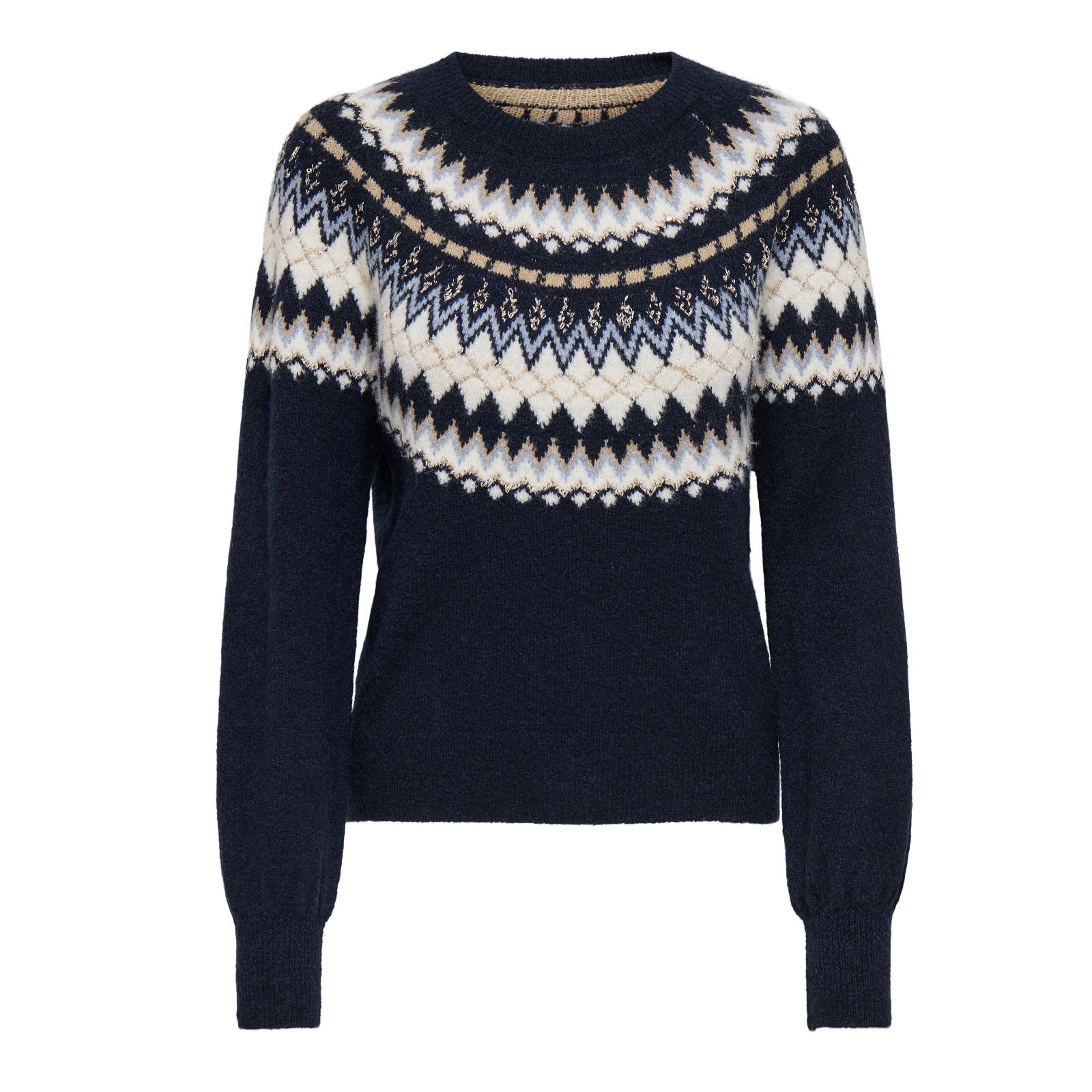 Bring a touch of Nordic-inspired charm to your wardrobe with the JDY Lina Fairisle Knitted Jumper, showcasing a classic fairisle pattern and subtle glitter detail for a hint of sparkle. Its regular fit and soft flat knit make it a comfortable choice for everything from chilly morning commutes to relaxed evenings at home. Try styling it with tailored trousers or your favourite jeans for an effortlessly chic, seasonal look.