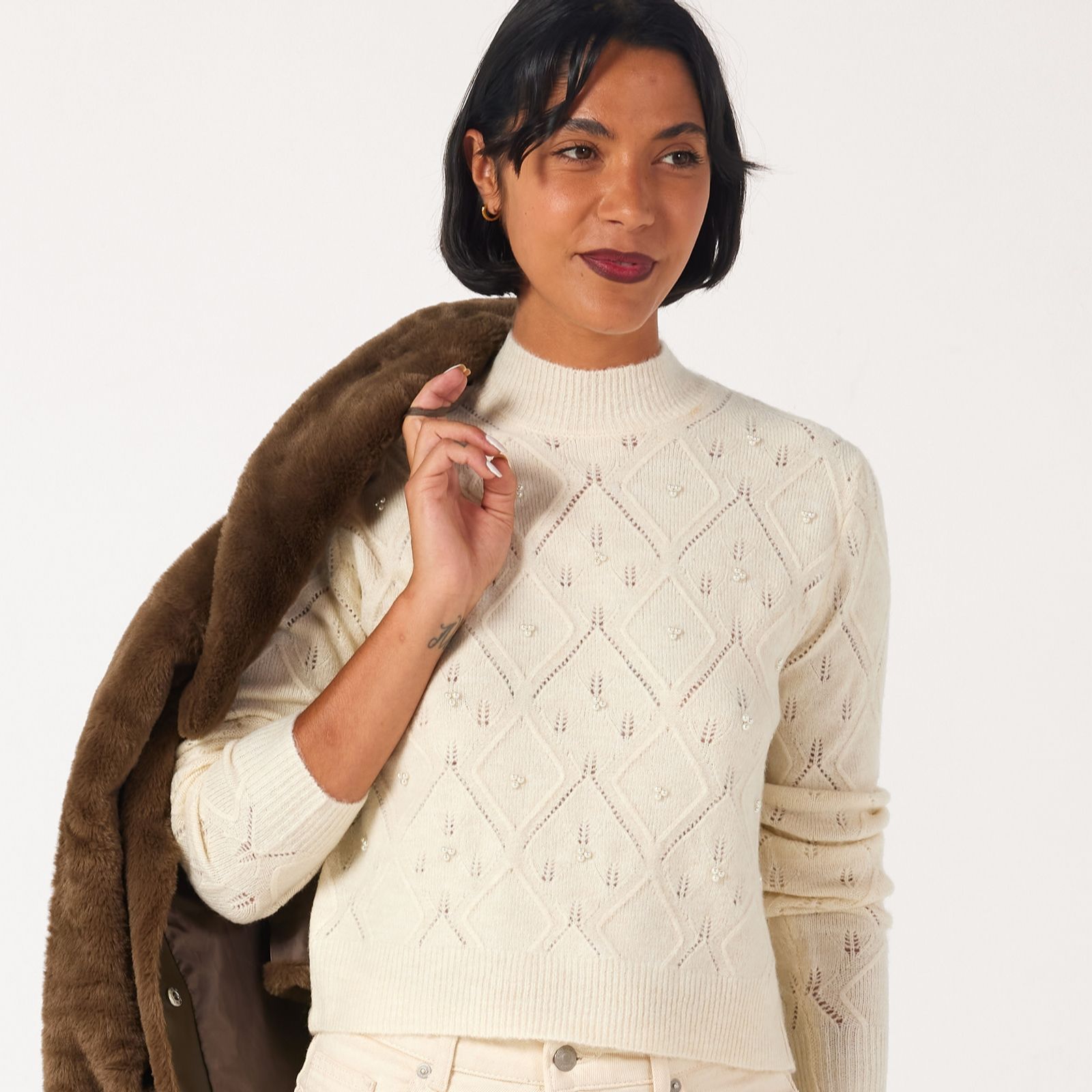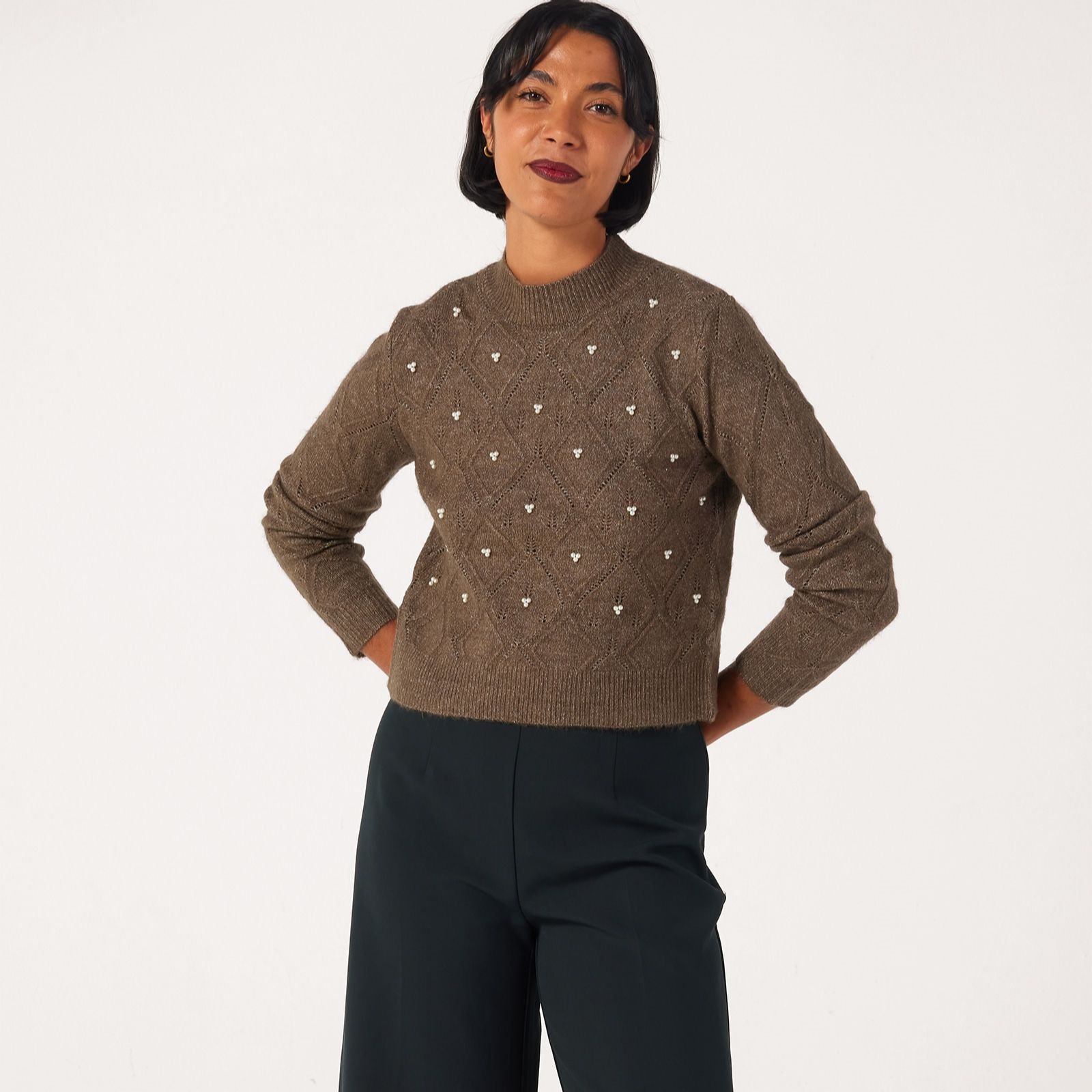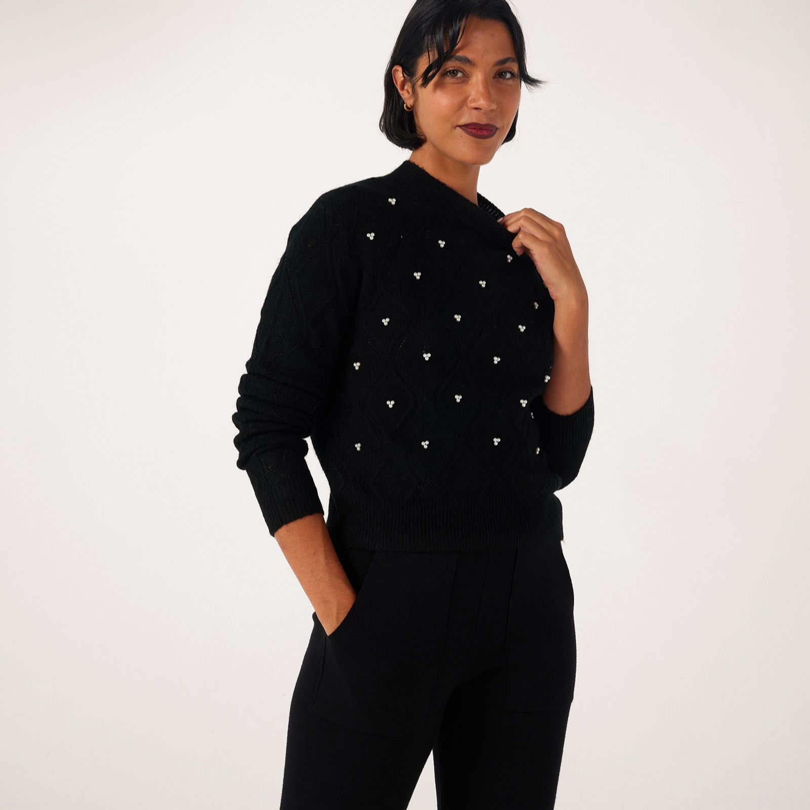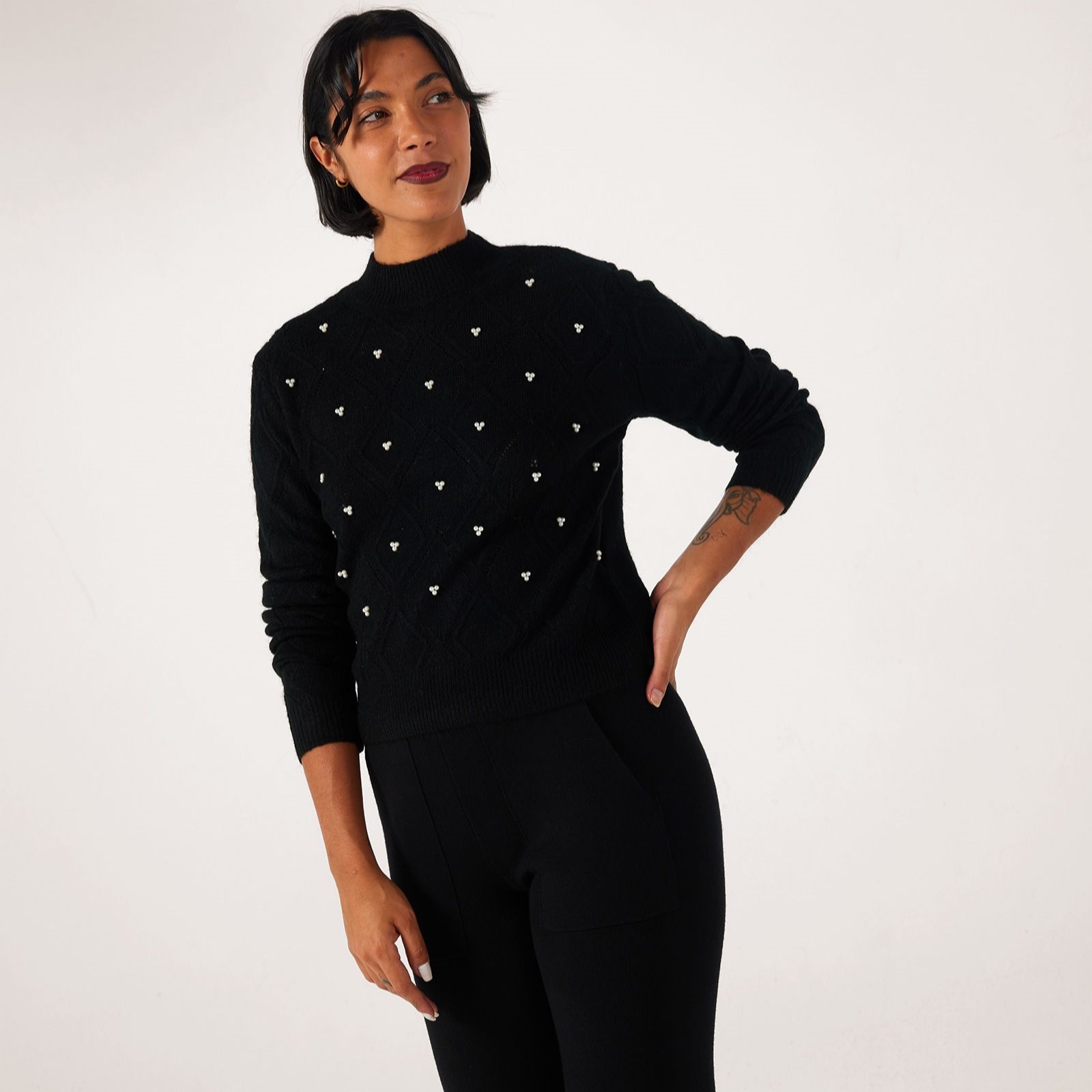 Add a charming piece to your wardrobe with the Noomi pearl pointelle jumper from JDY, a beautifully structured knit that blends timeless style with delicate detailing. Featuring a high neck, long sleeves, ribbed cuffs and gorgeous pearl embellishments, it's perfect for adding a touch of elegance to your everyday outfits or dressing up for an evening out. Pair it with tailored trousers or a flowing skirt for a chic, versatile look.