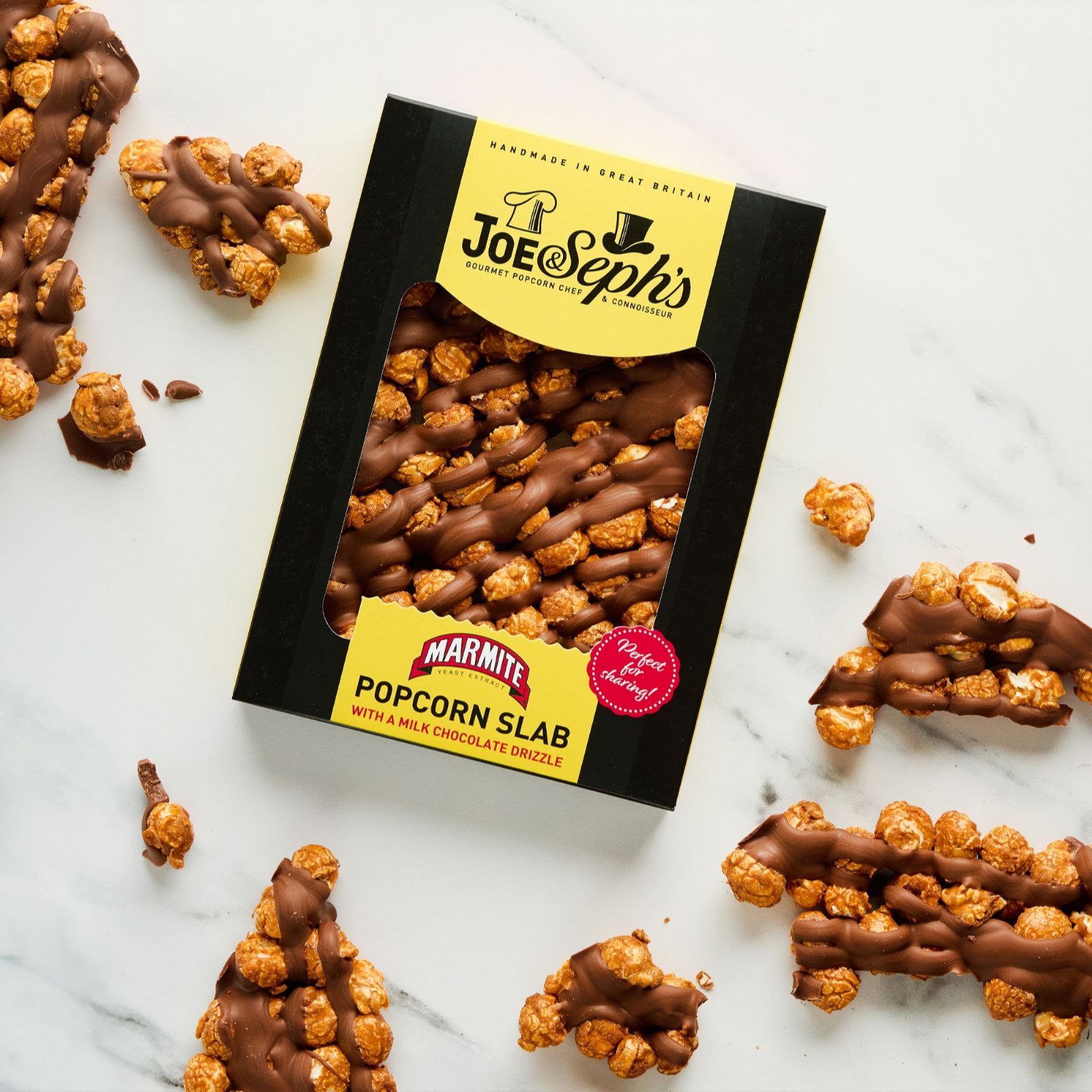 Savour the bold, savoury taste of Joe & Seph's Marmite Slab & Popcorn Duo, a deliciously inventive treat that brings together the unique flavour of Marmite with handcrafted gourmet popcorn and a decadent milk chocolate drizzle slab. Perfect for sharing during cosy nights in or as a quirky gift for Marmite fans, this duo is sure to spark conversation and satisfy your snack cravings.