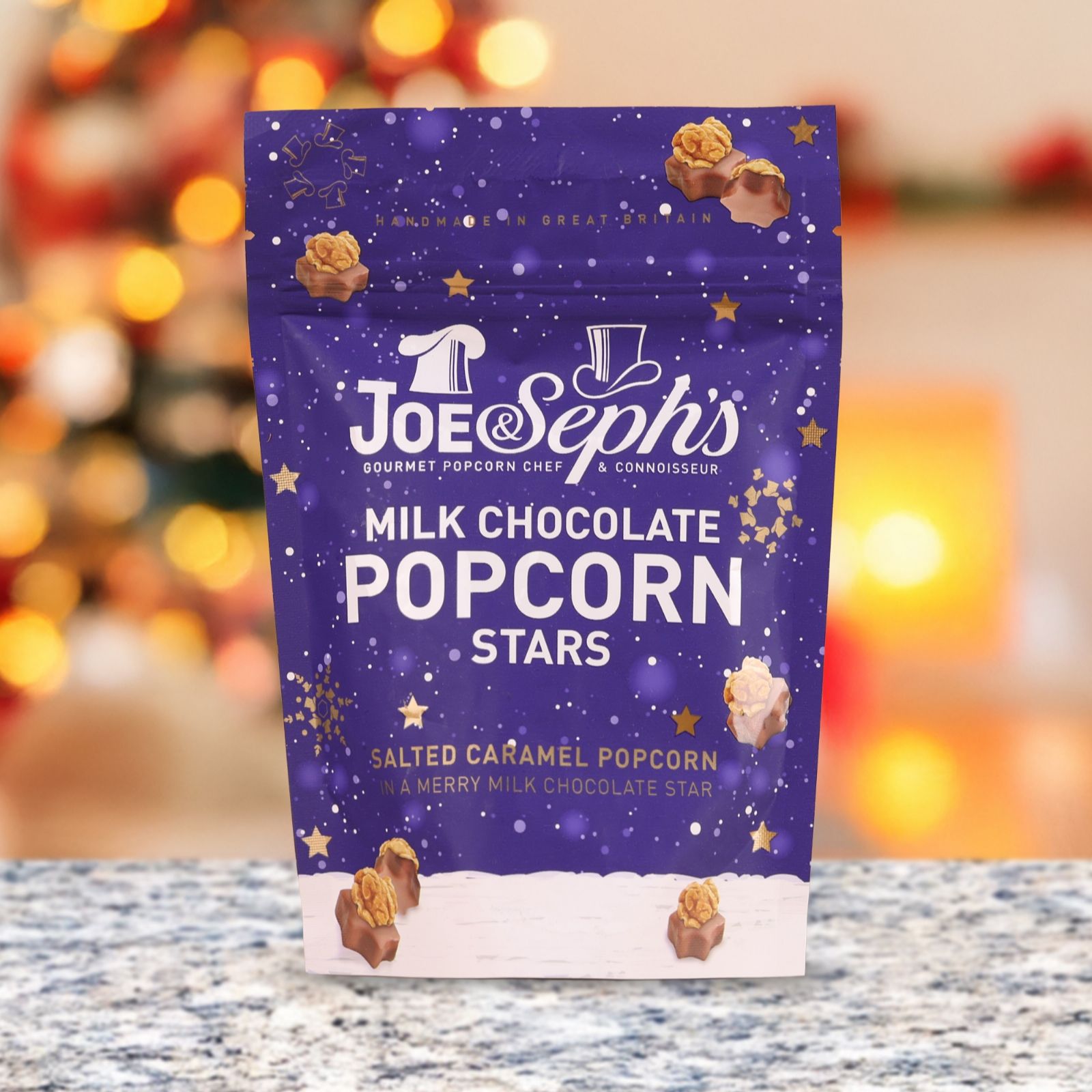Bring some festive cheer to your celebrations with this set of six star-shaped stocking filler pouches from Joe & Seph's. Featuring six Festive Bites, each pouch is filled with gourmet popcorn crafted for irresistible flavour. Perfect for sharing, gifting or adding a special touch to your seasonal gatherings, these treats are ready to enjoy straight from the pouch.