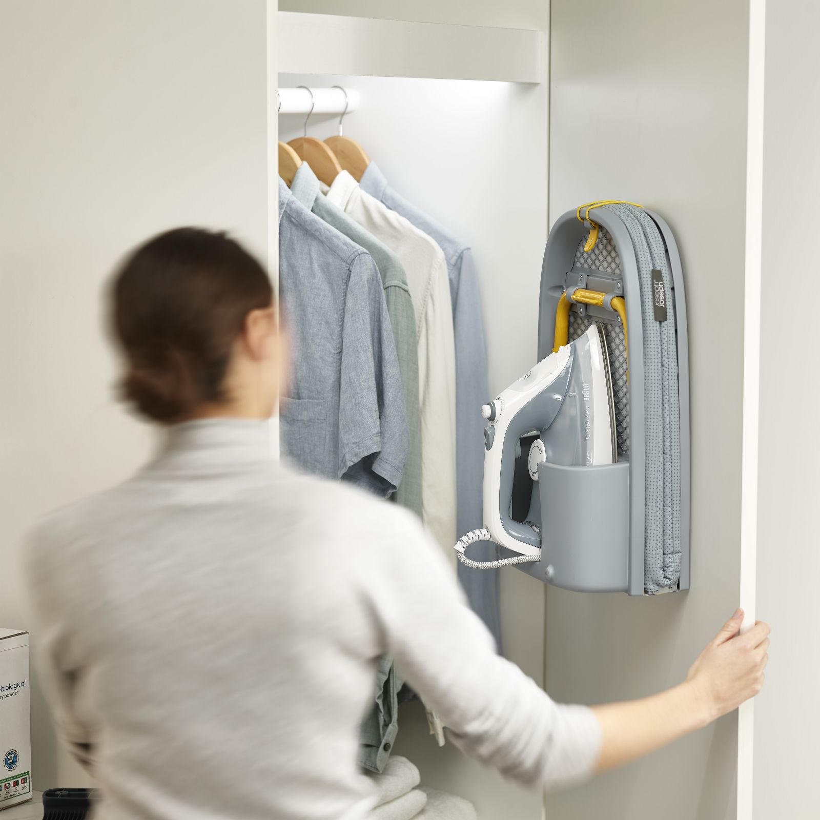 - Ensure cover is dry before folding and storing. Allow iron to cool to room temperature before storing inside the compartment
