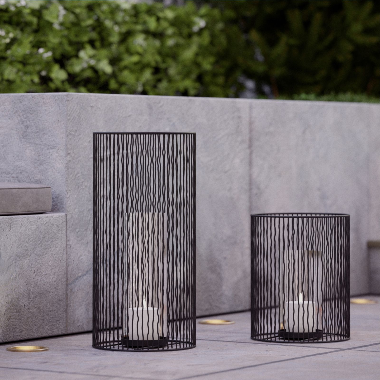 - 1 x large wire candle holder with glass hurricane