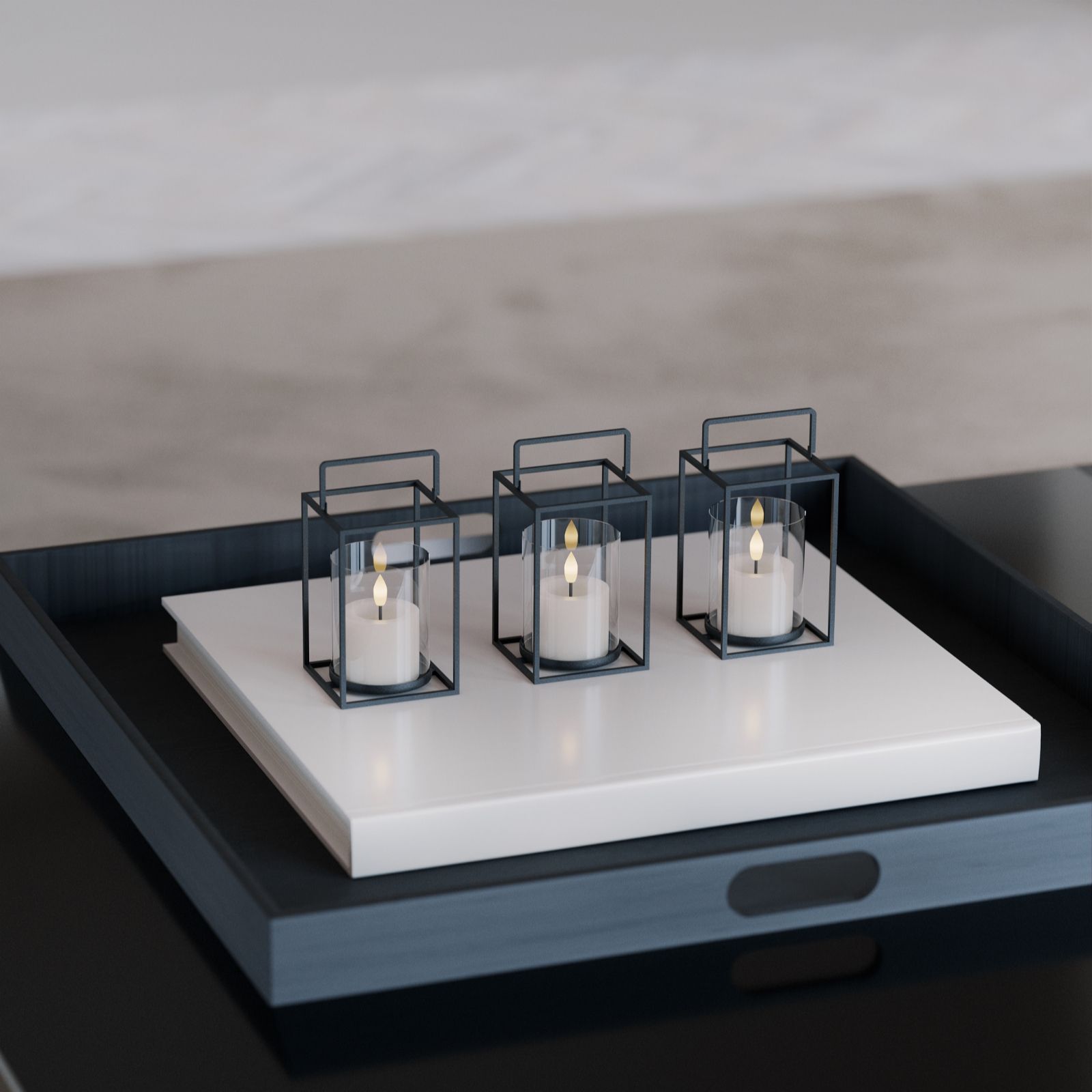 Add a warm, inviting glow to your home with this set of three small metal lanterns from K by Kelly Hoppen. Each lantern houses an LED votive, offering soft, flickering light without the fuss of real candles. Perfect for creating an ambient atmosphere on cosy evenings, dressing a dinner table, or adding a charming touch to shelves and sideboards, this trio brings effortless elegance to any space.