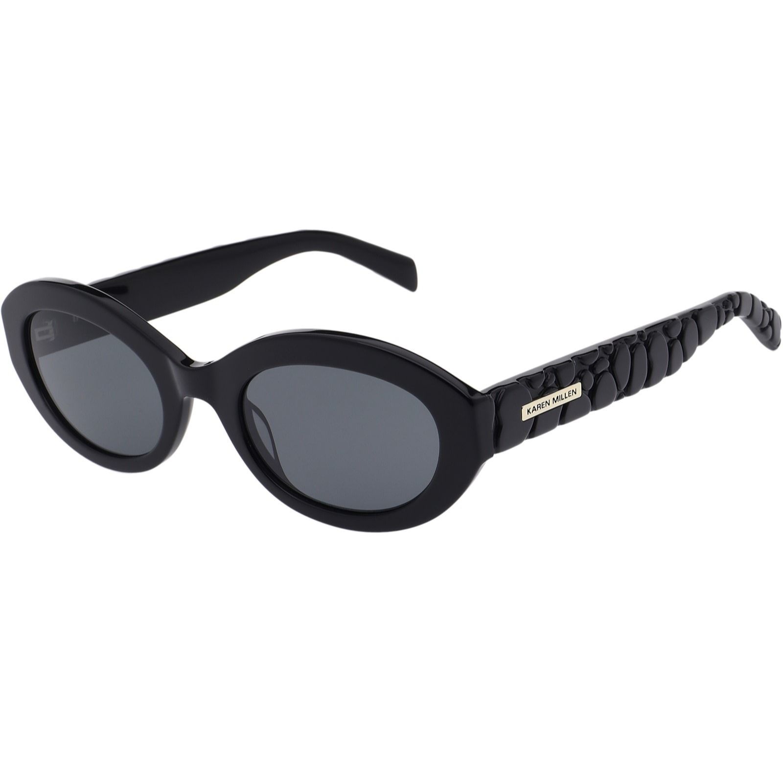 Perfect your poolside lounging look with the chic oval sunglasses from Karen Millen, showcasing a shallow, on-trend silhouette in classic black with sleek grey lenses. The subtle two-dimensional reptilian texture and silver logo plaque add a refined edge, making them ideal for sunny getaways, city strolls or al fresco lunches. Pair them with a breezy maxi dress and wide-brimmed hat for effortless summer glamour.