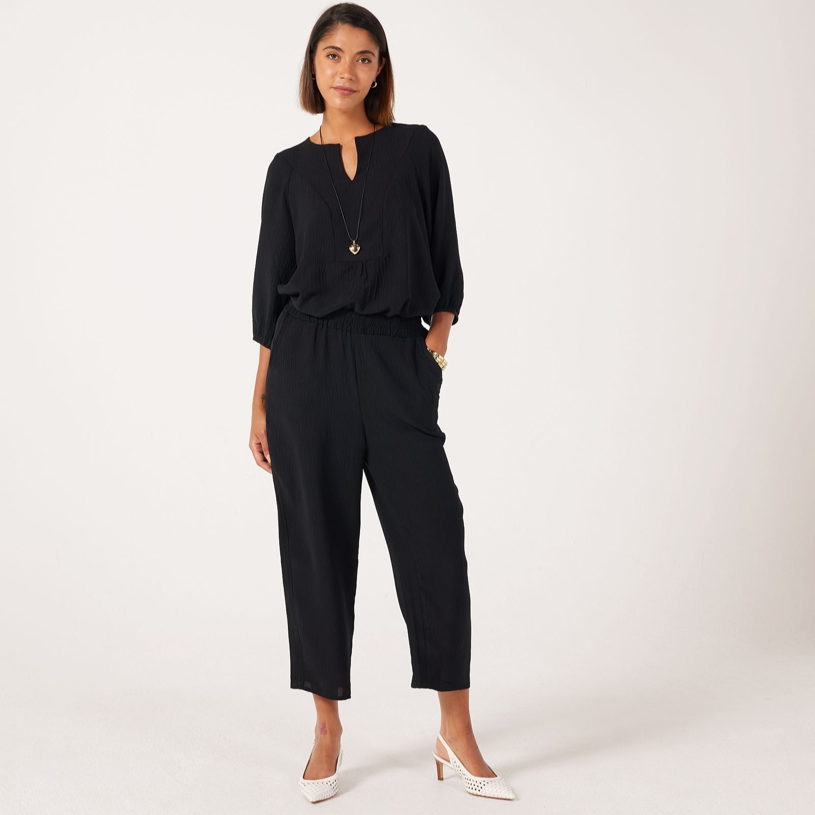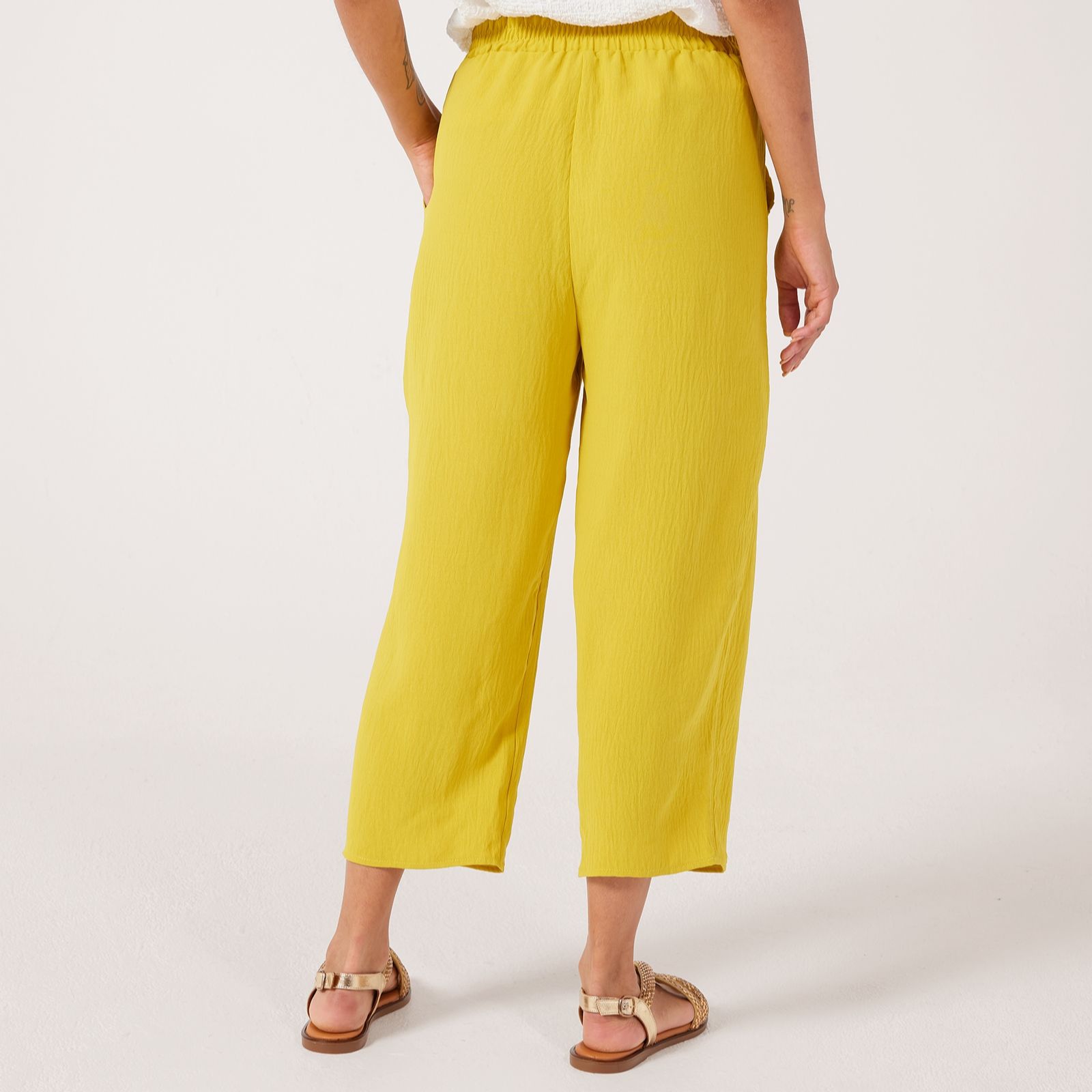 Slip into laid-back style with these crinkle poplin relaxed trousers from Kim & Co in a petite length. These everyday trousers feature a cropped length and elasticated waist that promise all-day comfort, while the slanted front pockets lend a practical touch to your look. Perfect for running errands or meeting friends, try pairing them with a loose blouse and sandals for an easy, breezy outfit.