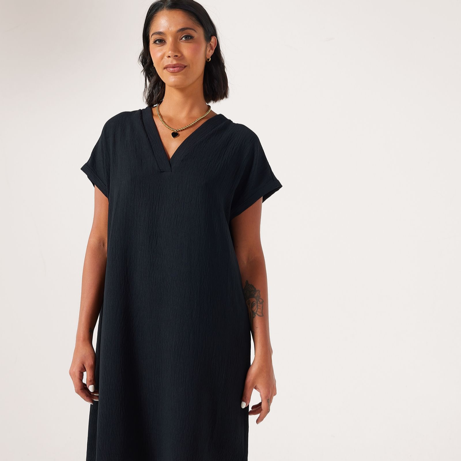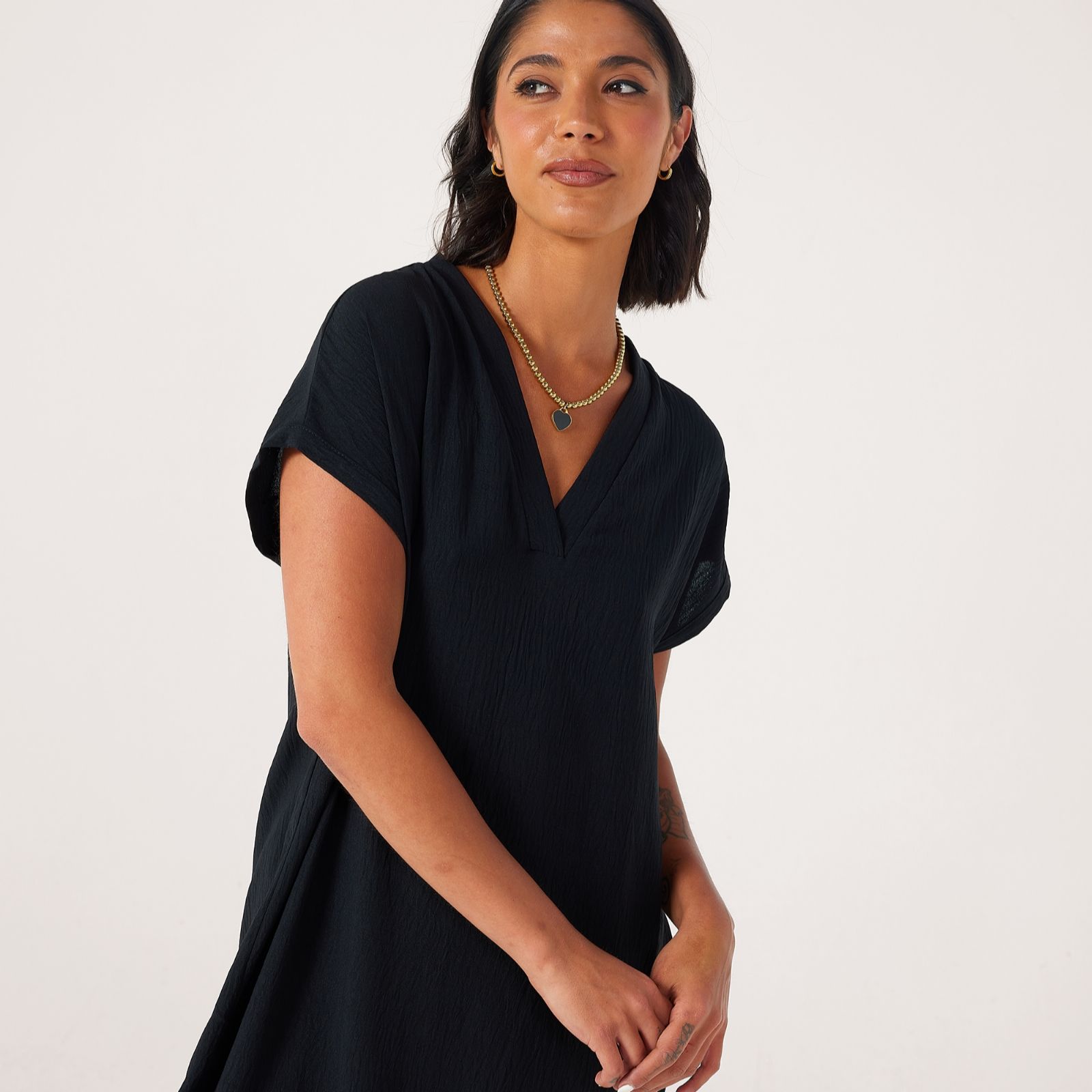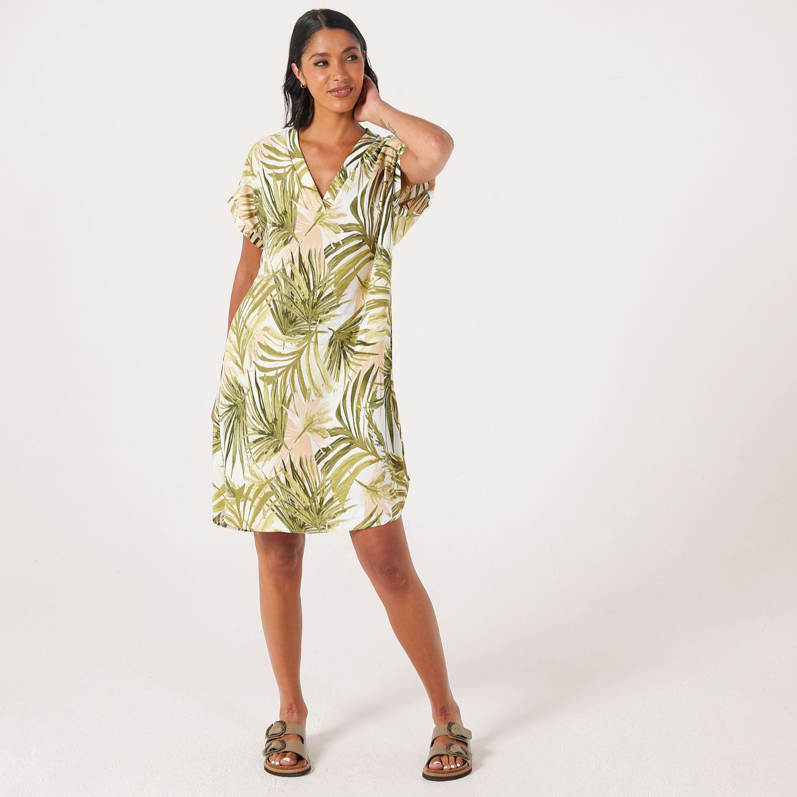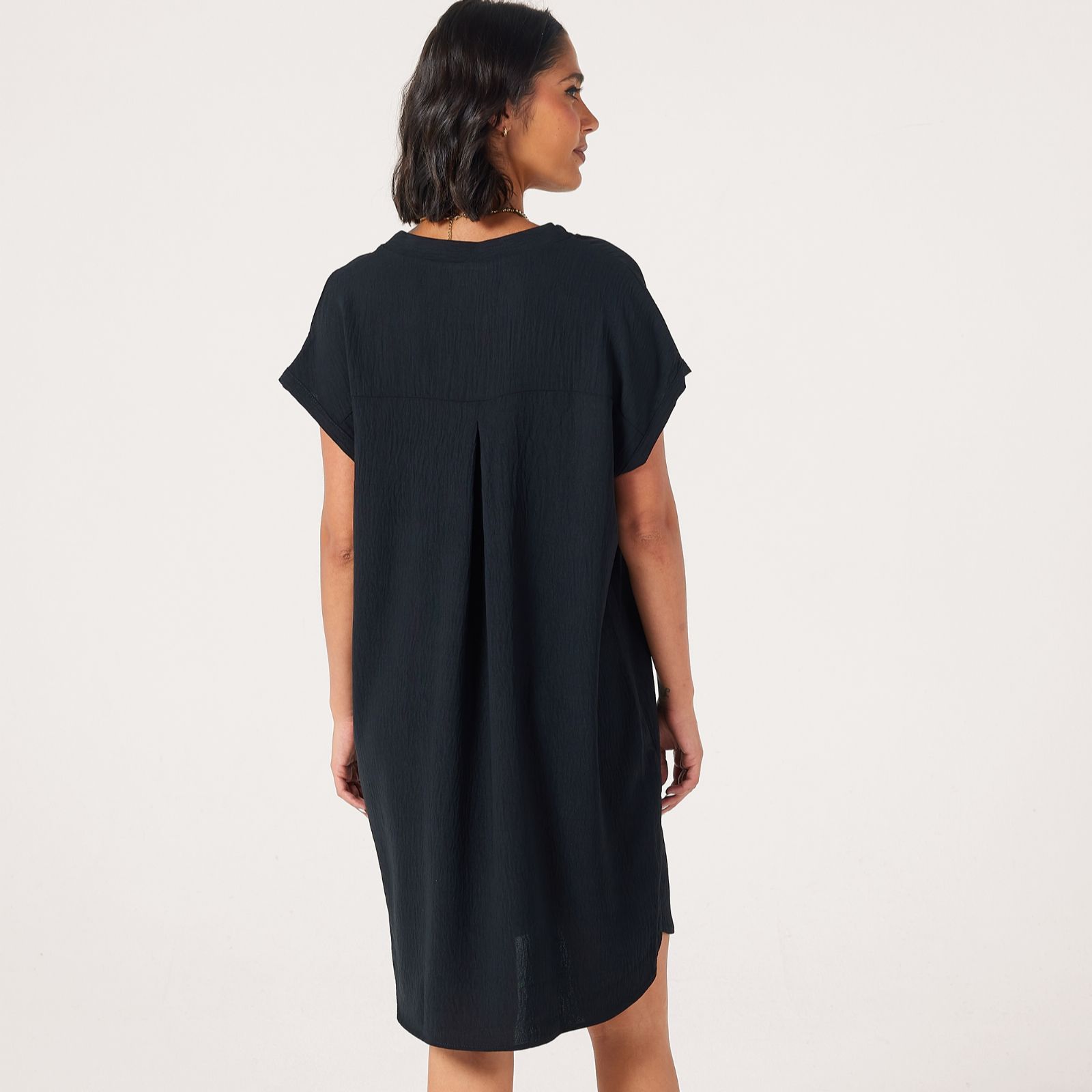 Step out in easy elegance with the Crinkle Poplin Short Dolman Sleeve Dress from Kim & Co, a relaxed silhouette designed to flatter with its softly draped shape and playful rounded hem. Whether you're heading to brunch, a casual garden party or simply enjoying a day out, this knee-length style offers comfort with a touch of sophistication. Pair it with sandals and a crossbody bag for a chic, laid-back look.