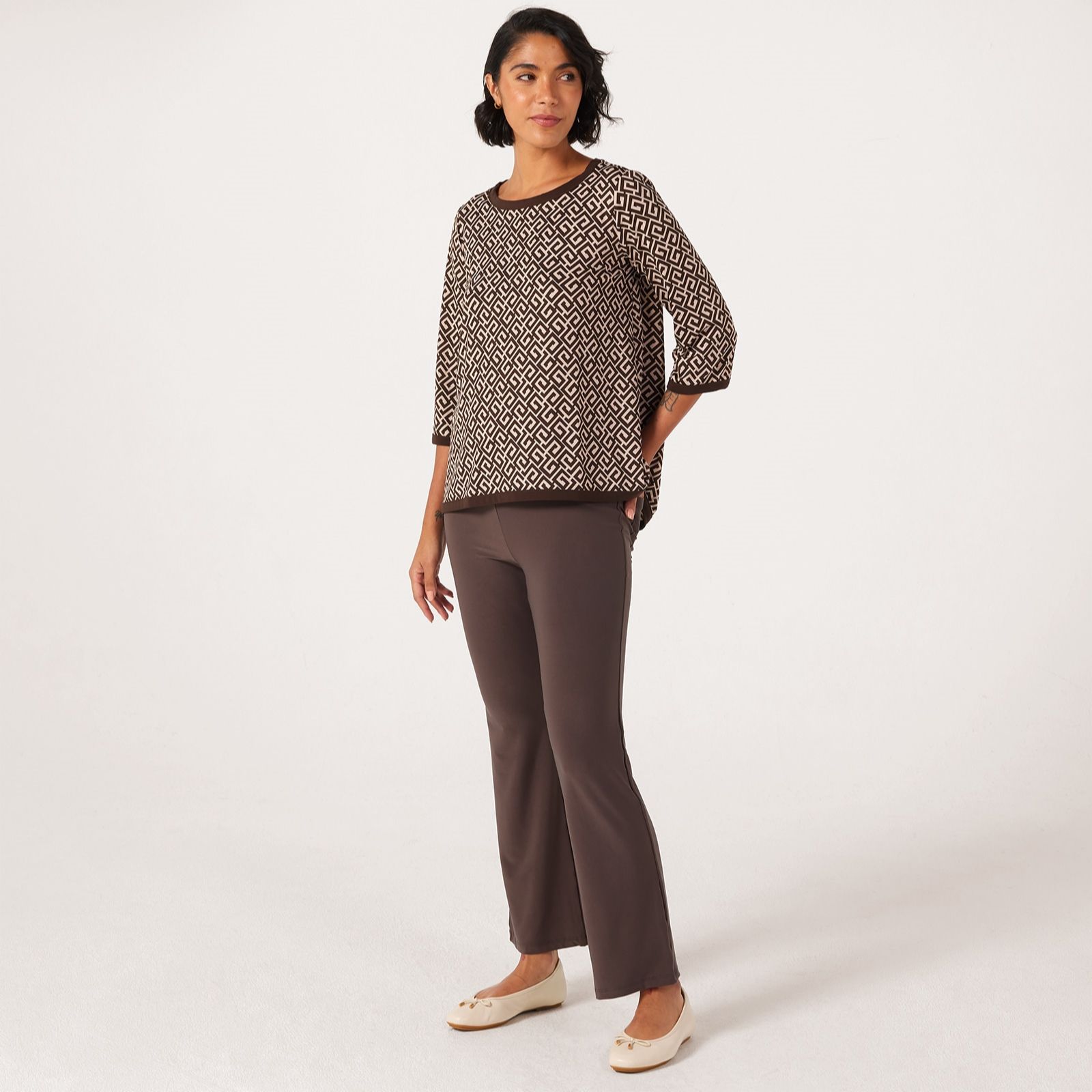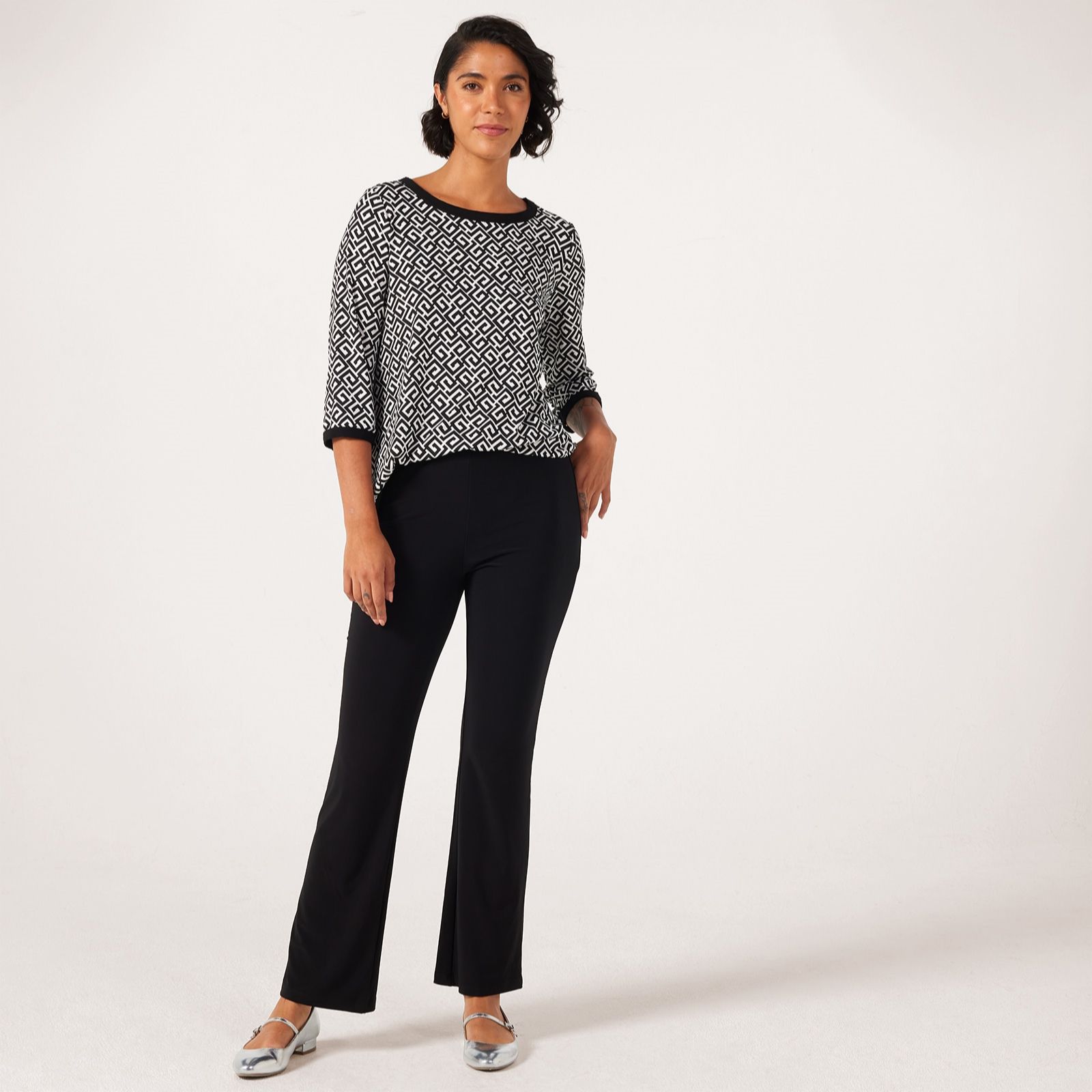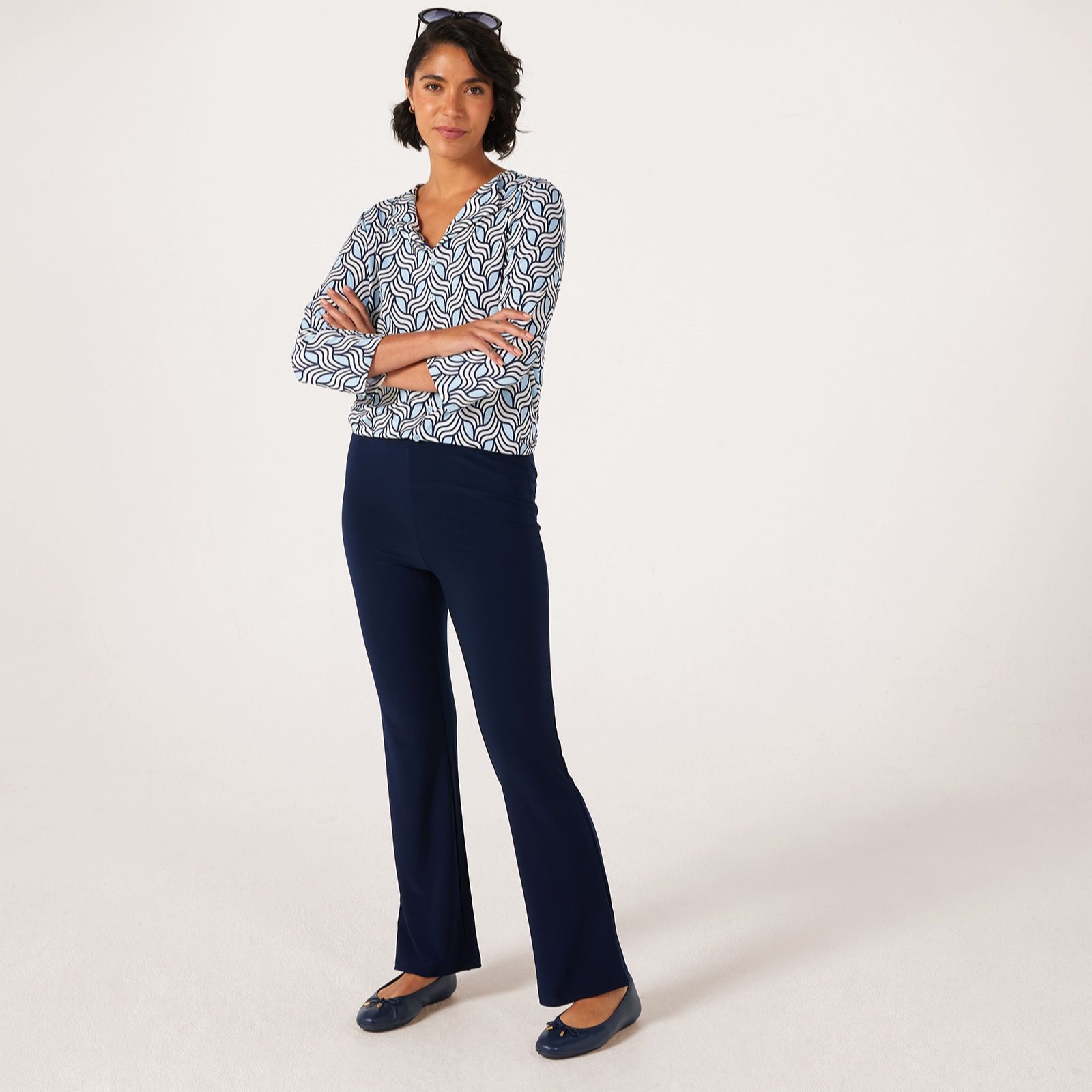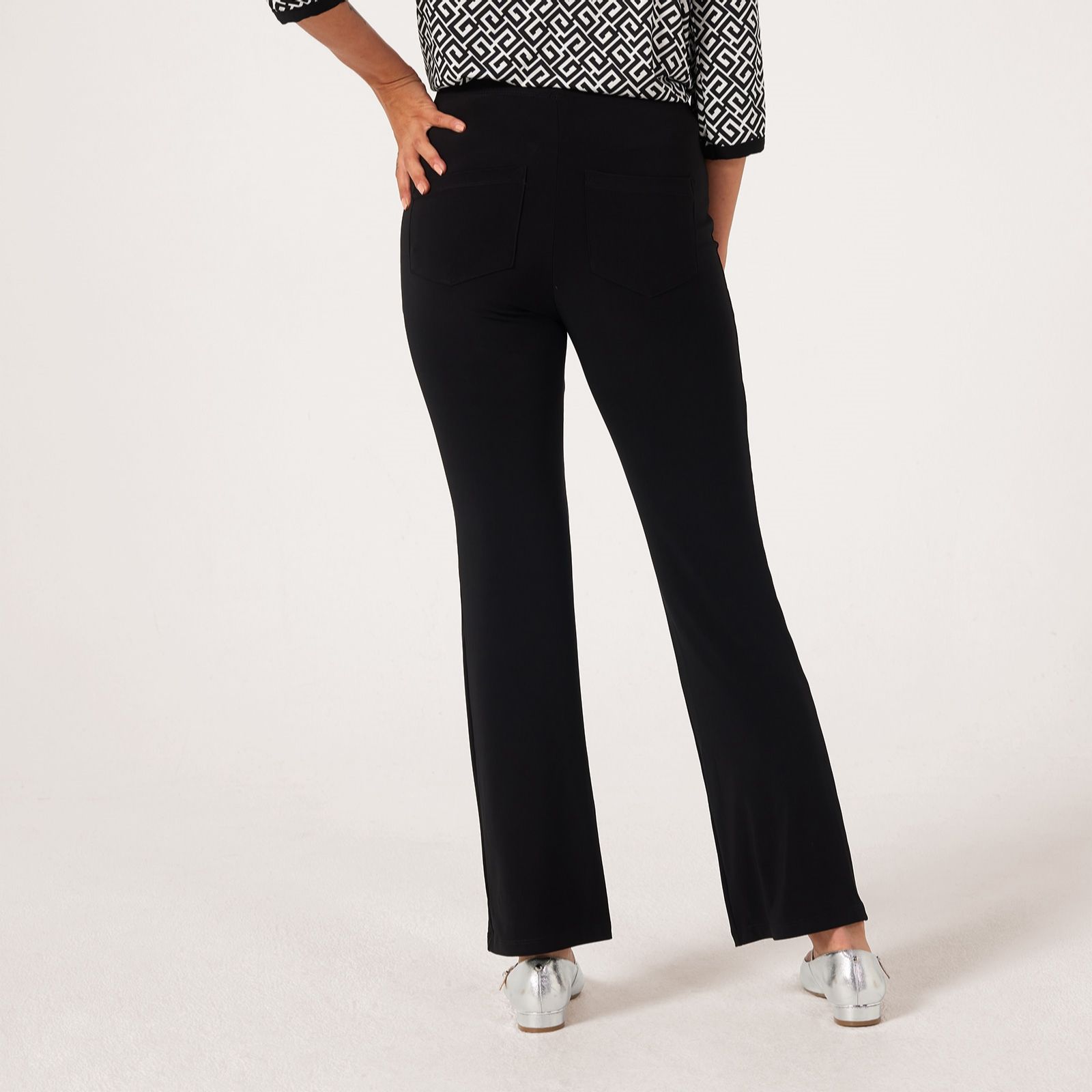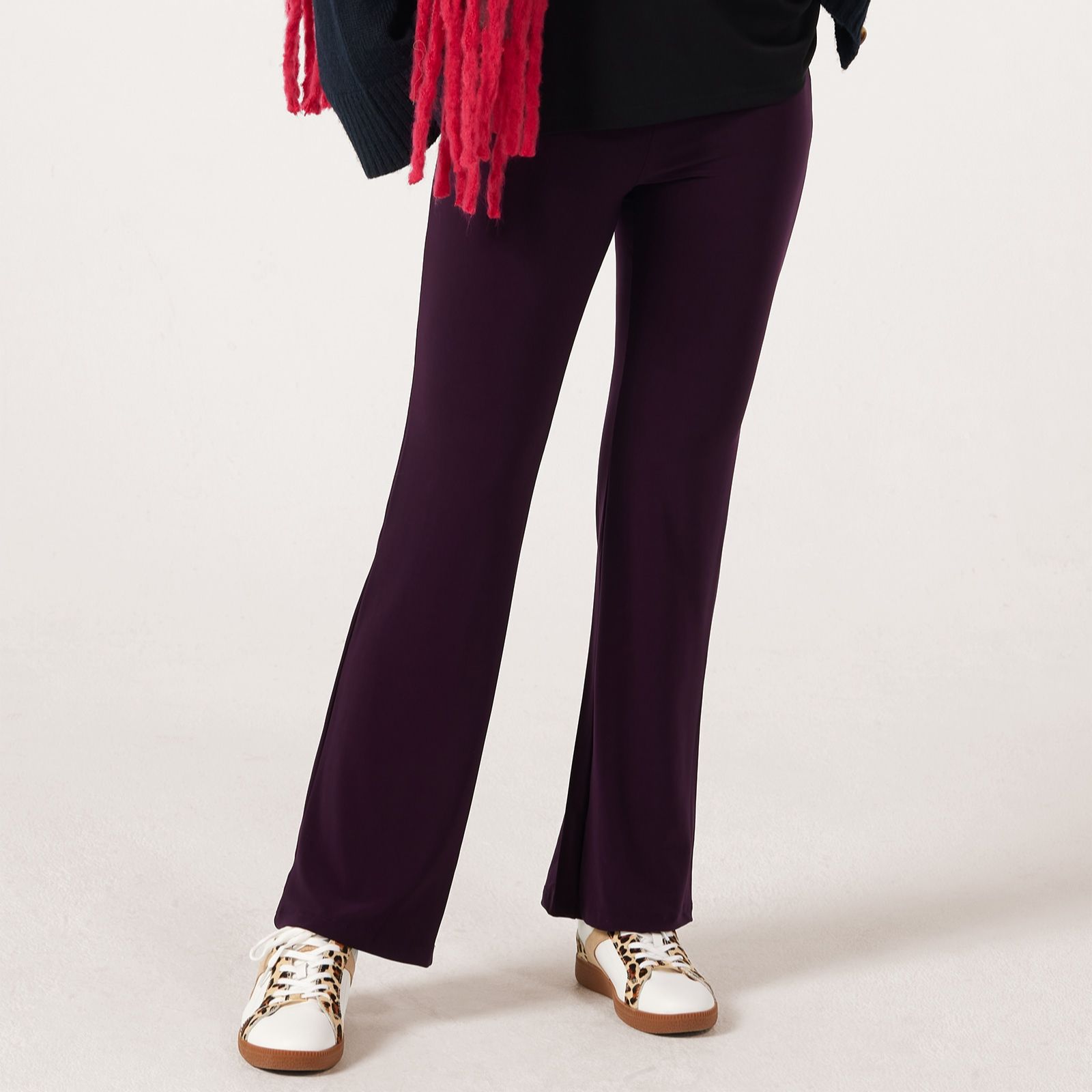 Slip into the easy elegance of the Deluxe Brazil Jersey Carla Flare Standard Trousers from Kim & Co, designed with a flared leg and practical back patch pockets for a modern twist on a classic silhouette. Whether you're heading to lunch or relaxing at home, their comfortable elasticated waistband ensures a perfect fit all day. For a polished finish, style them with a simple tee and statement jewellery.
