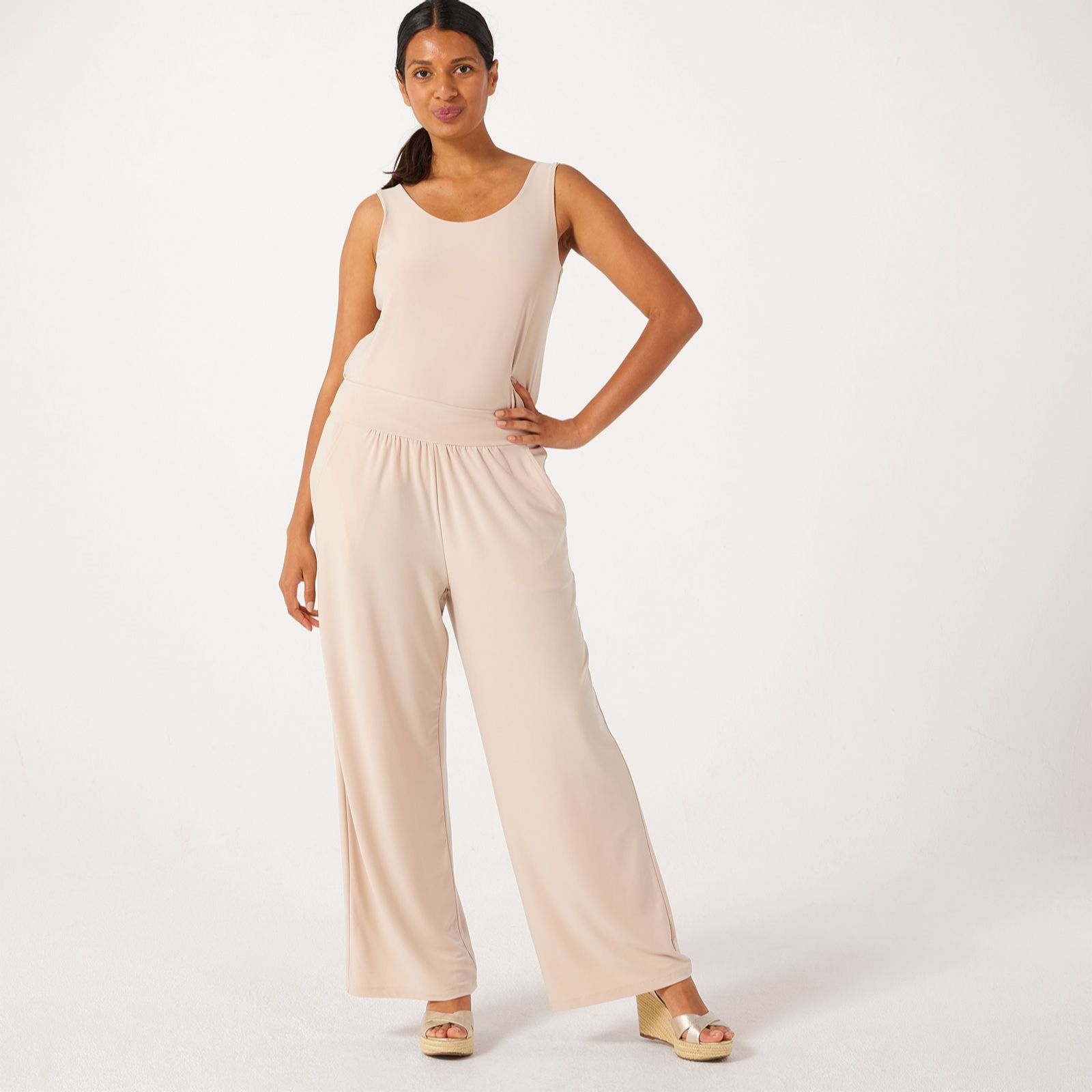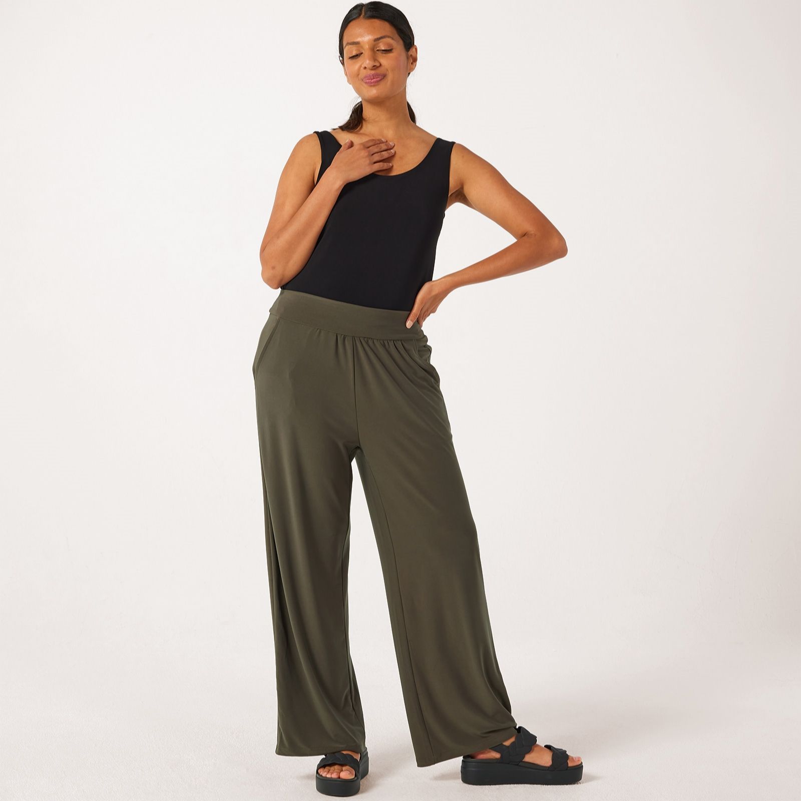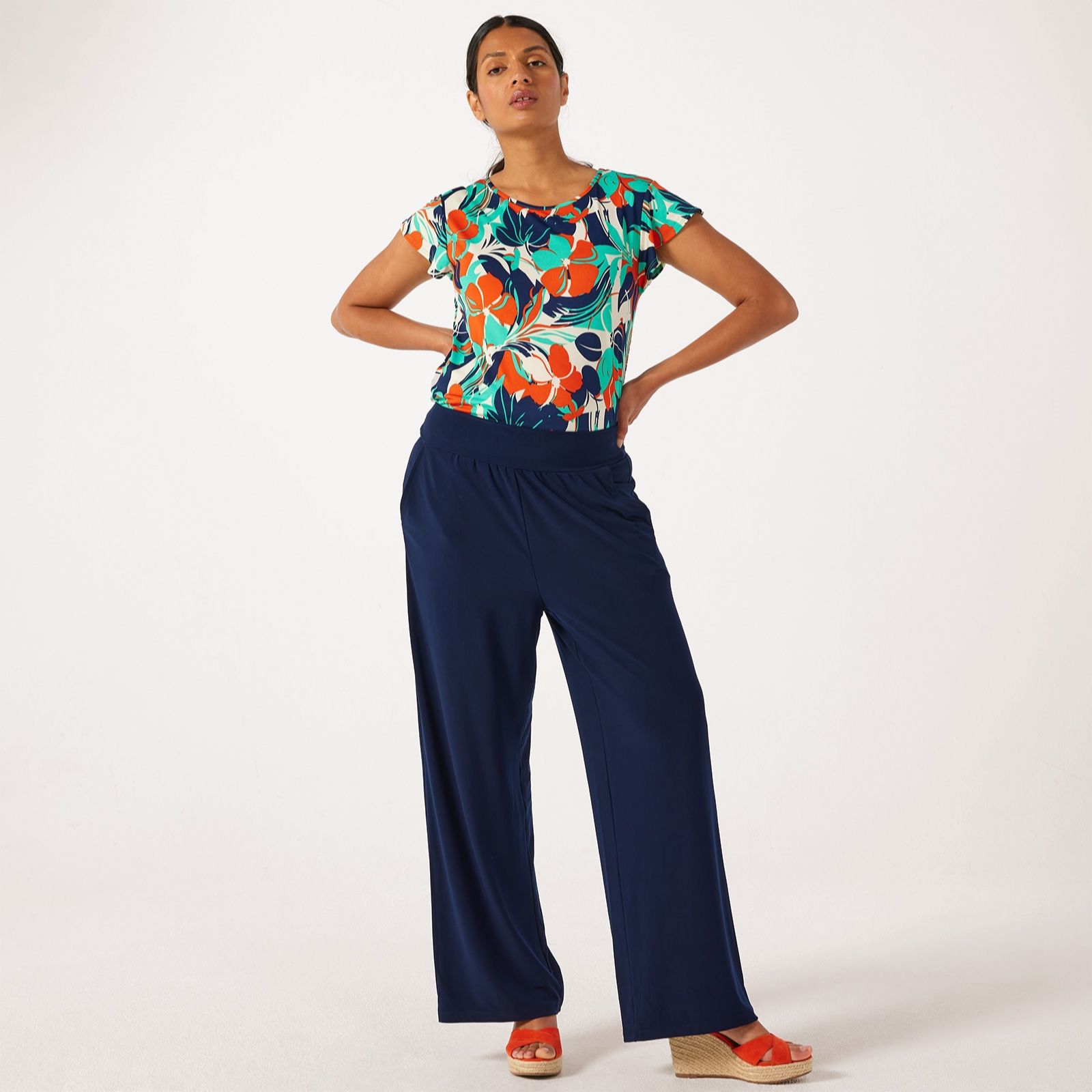 Refresh your everyday style with the Deluxe Brazil jersey wide leg Riviera trousers from Kim & Co in a petite fit. These trousers boast a soft drape and generous cut, creating a fluid silhouette, while the wide comfort waistband and subtle shirring ensure all-day ease. Whether you're heading to lunch or relaxing at home, these trousers transition beautifully from day to evening. Pair with a fitted top and statement jewellery for a polished finish.