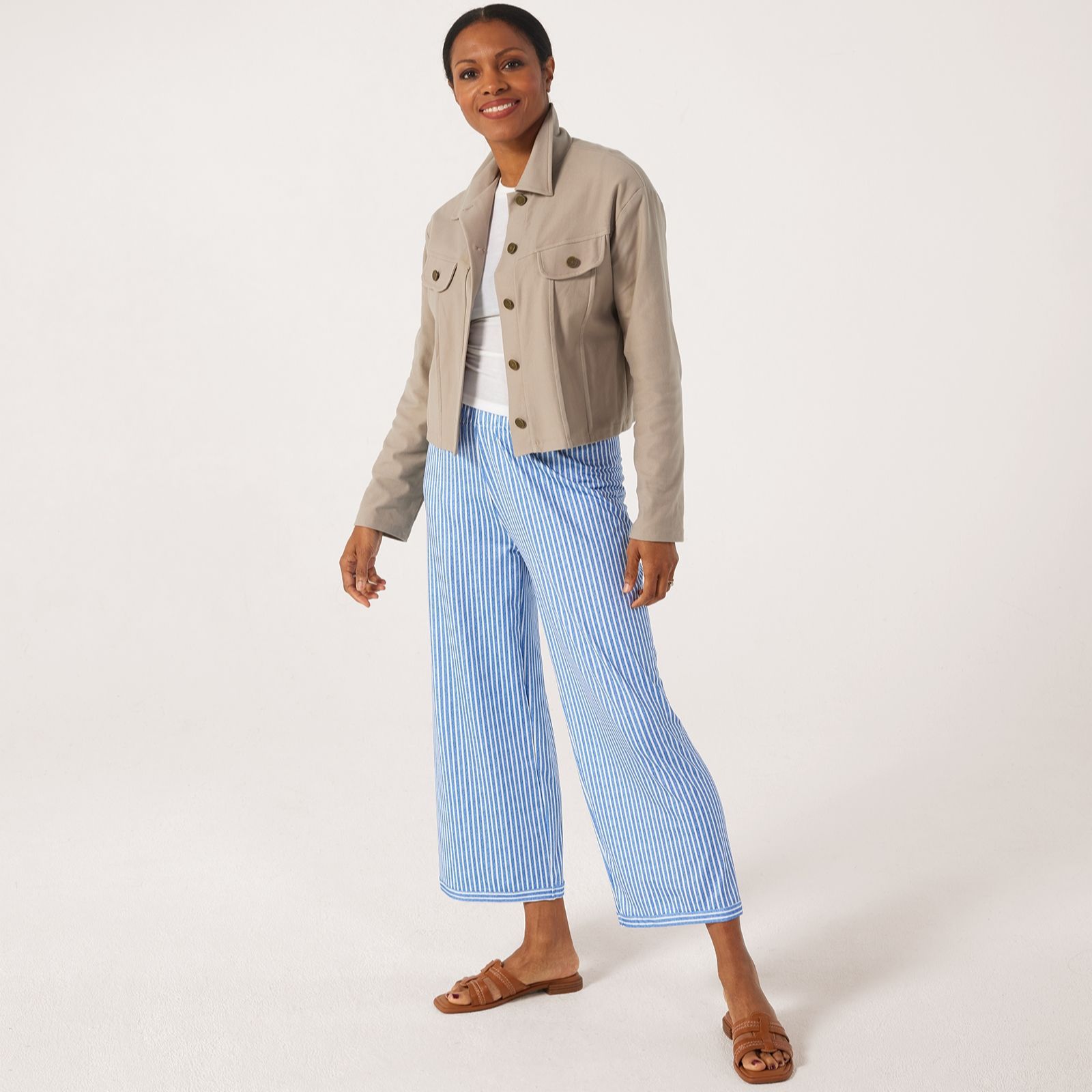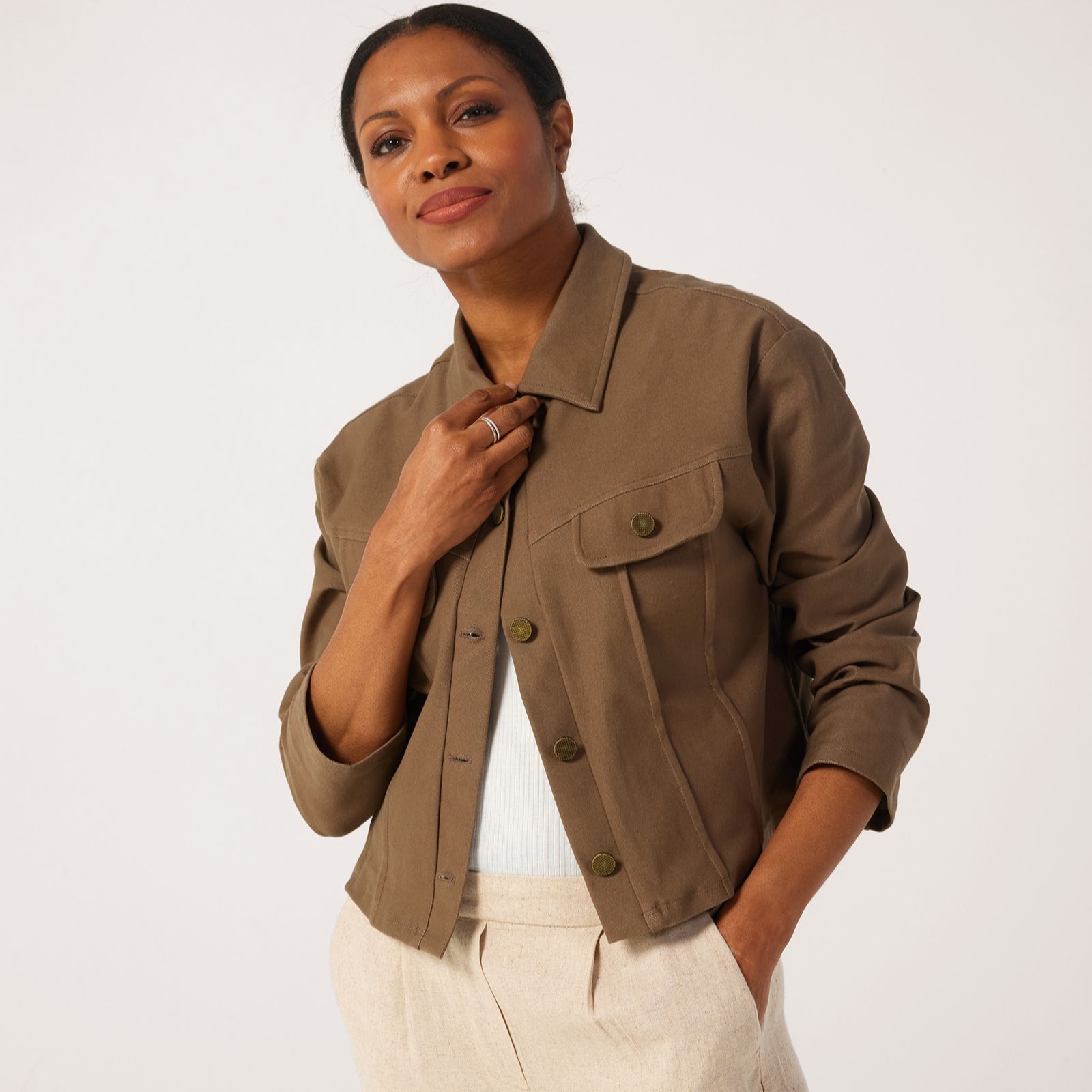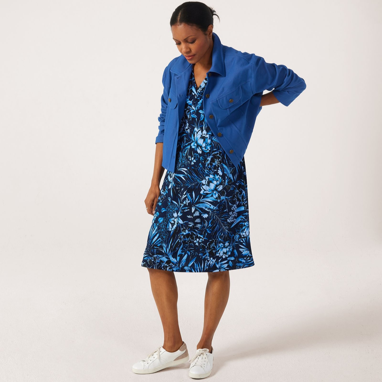 Discover a unique blend of classic style and modern comfort with the Kim & Co Deluxe Denim Knit jacket. This relaxed fit jacket features a drop shoulder design, short length and a collar at the neck, making it perfect for layering over your favourite outfits. The front and back yokes, along with the seam detailing and metallic snap buttons, add a touch of sophistication. Pair it with a simple tee and jeans for a laid-back vibe or over a dress for a more polished ensemble.