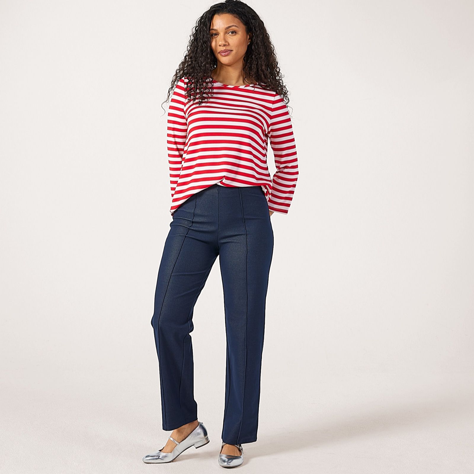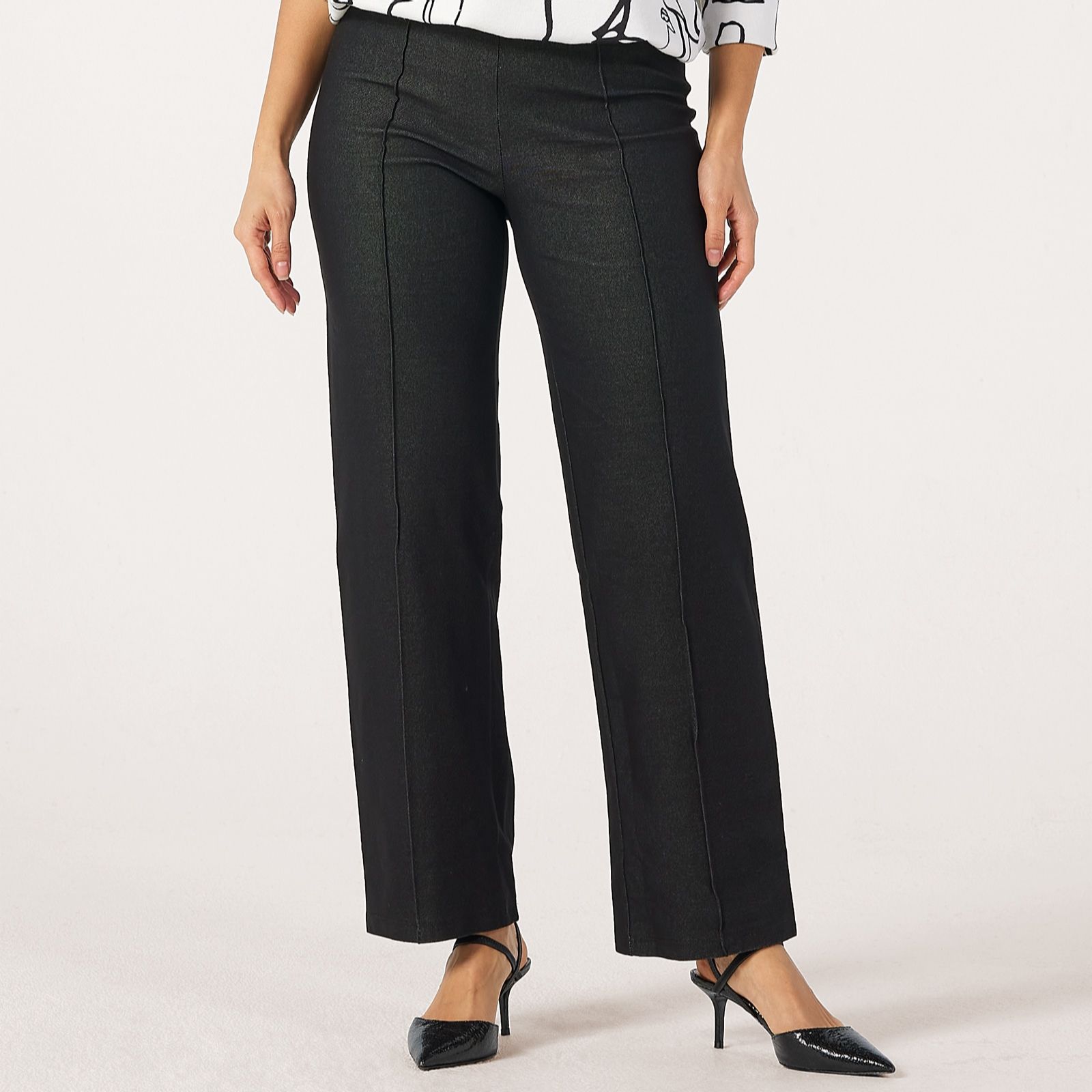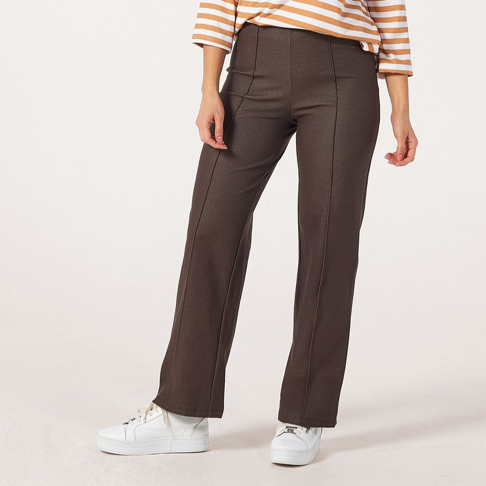 Refresh your everyday style with the Kyla straight petite pintuck trousers from Kim & Co. Crafted in deluxe denim knit with a flattering pintuck detail along the front leg and a comfortable elasticated waist, these full-length trousers blend classic tailoring with effortless comfort. Perfect for work, weekends or casual outings, they pair beautifully with a crisp blouse or a relaxed knit for a versatile look.