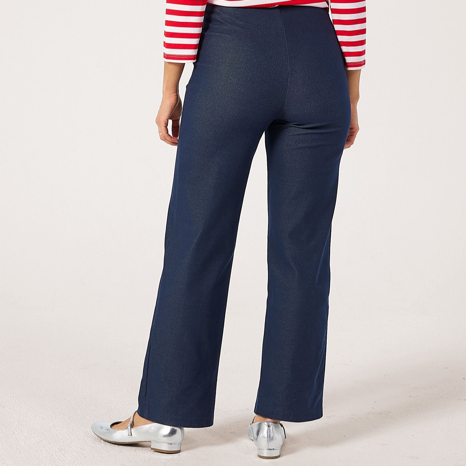 Step into effortless style with the Kim & Co Deluxe Denim Knit Kyla Straight Standard Pintuck Trousers, where classic straight-leg tailoring meets the comfort of a soft knit. The pintuck detailing along the front leg and elasticated waist create a polished yet relaxed look, perfect for everything from casual lunches to smart-casual evenings. Try pairing these versatile trousers with a crisp blouse and loafers for a chic, everyday ensemble.