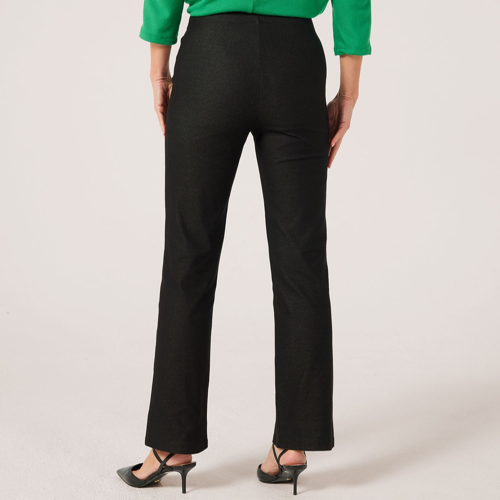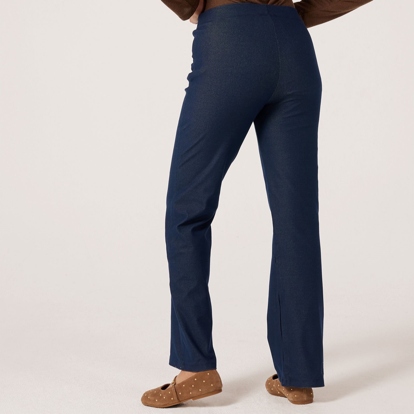Dare to flare in these Deluxe Denim Knit soft flare petite-fit trousers from Kim & Co, where a softly flared leg and elasticated waistband marry style and comfort for effortless everyday dressing. Whether you're heading to brunch, working from home or enjoying a weekend shopping trip, these trousers are designed to move with you throughout your busy day. Try pairing them with a ruffle blouse and suede loafers for a polished yet laid-back look.