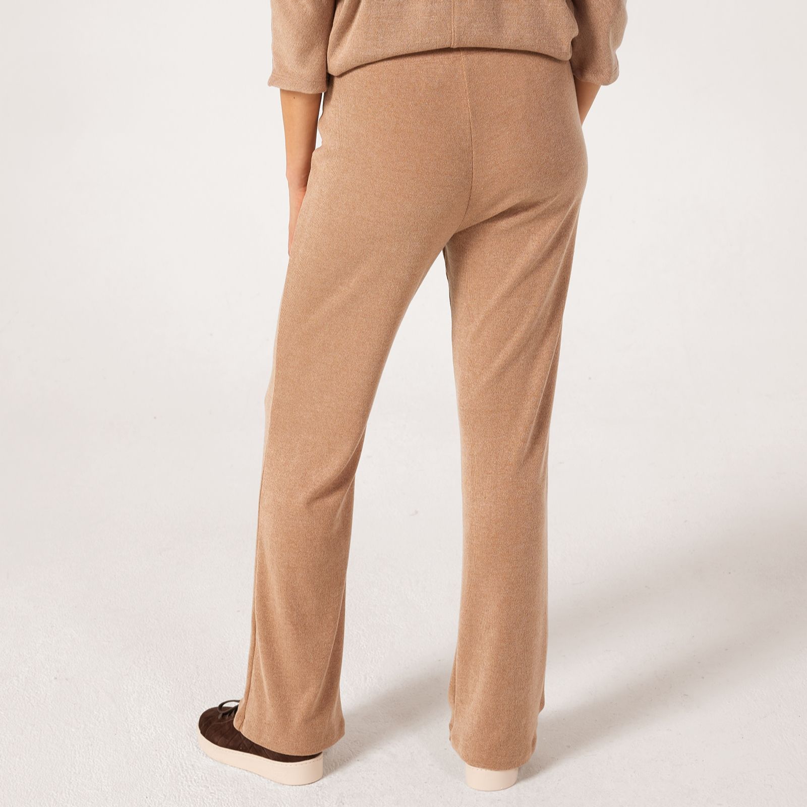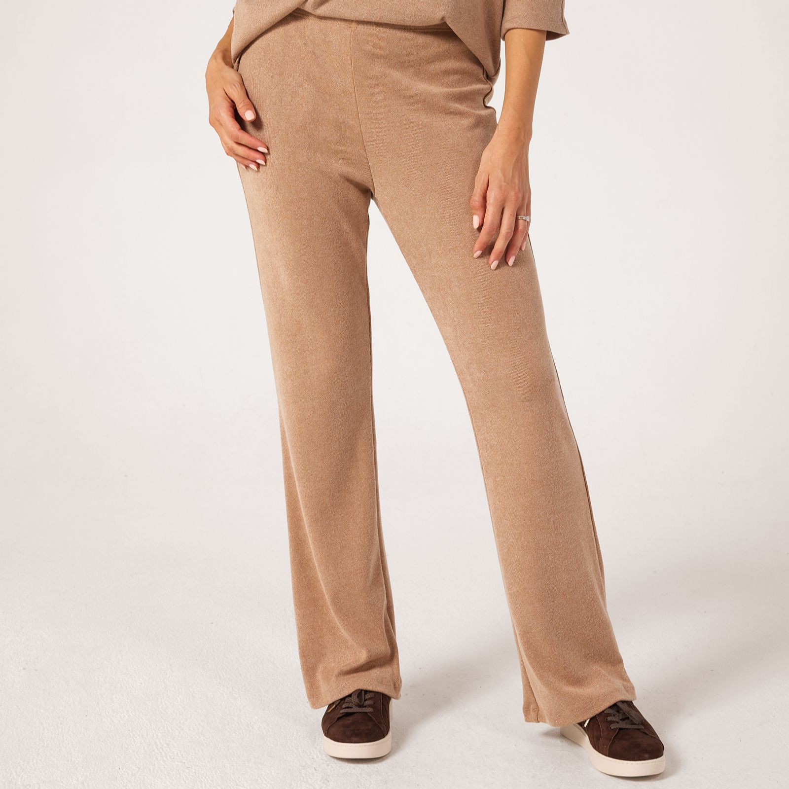 Bring a touch of modern flair to your wardrobe with the Divine Knit Carla Flared Petite Trousers from Kim & Co. The flattering full-length flared leg and easy elasticated waist create a silhouette that's both chic and comfortable, perfect for everything from busy workdays to relaxed weekends. For a polished look, team these trousers with a crisp blouse and statement accessories.