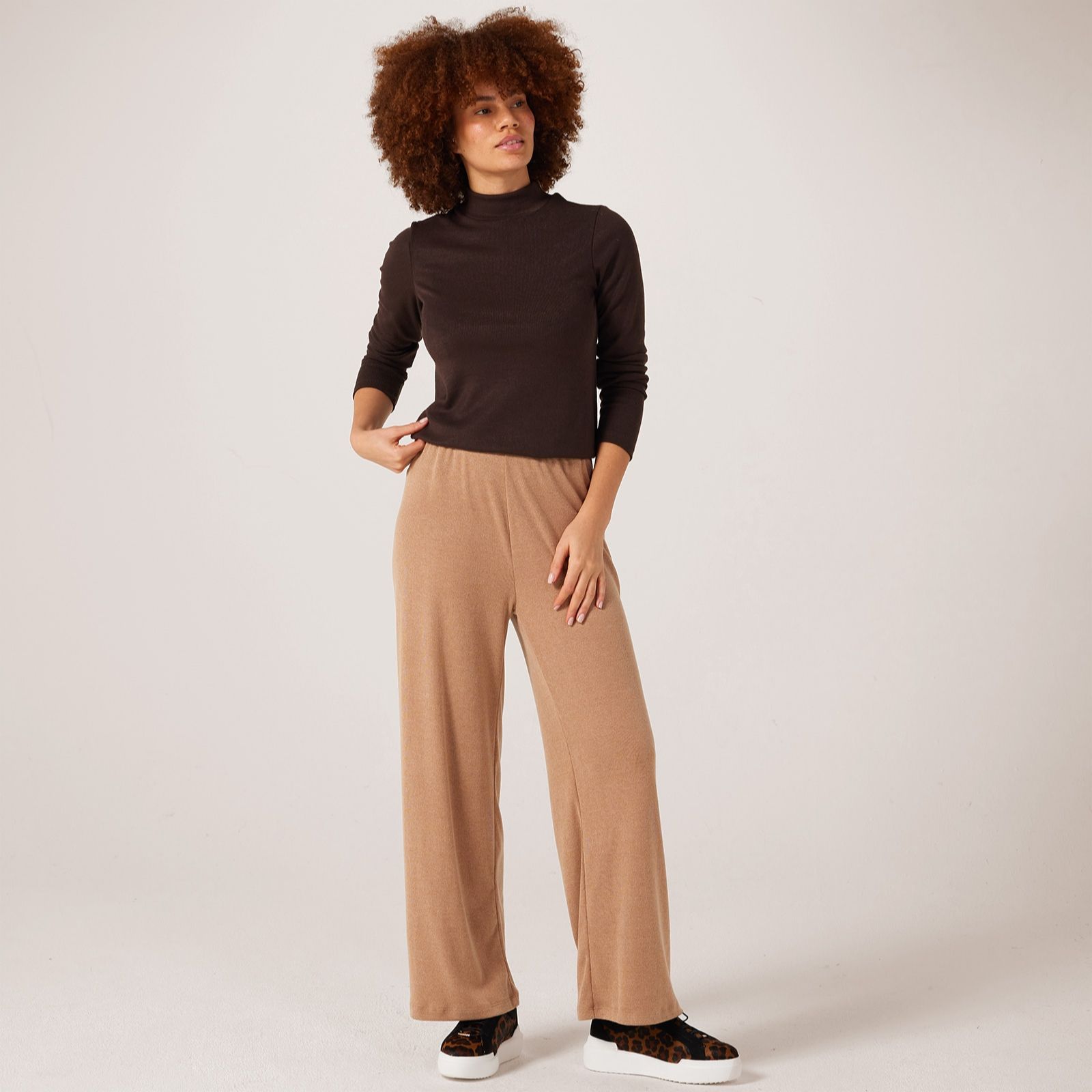 Embrace comfort and style with the Divine Knit Elasticated Kim Wide Leg Trousers from Kim & Co. These wide-leg trousers boast a relaxed fit and an open front, making them perfect for both casual outings and more polished occasions. The elastic waistband ensures a snug yet comfortable fit, allowing you to move freely throughout your day. Pair them with a fitted blouse and heels for a chic office look or dress them down with a cosy jumper and trainers for weekend errands.