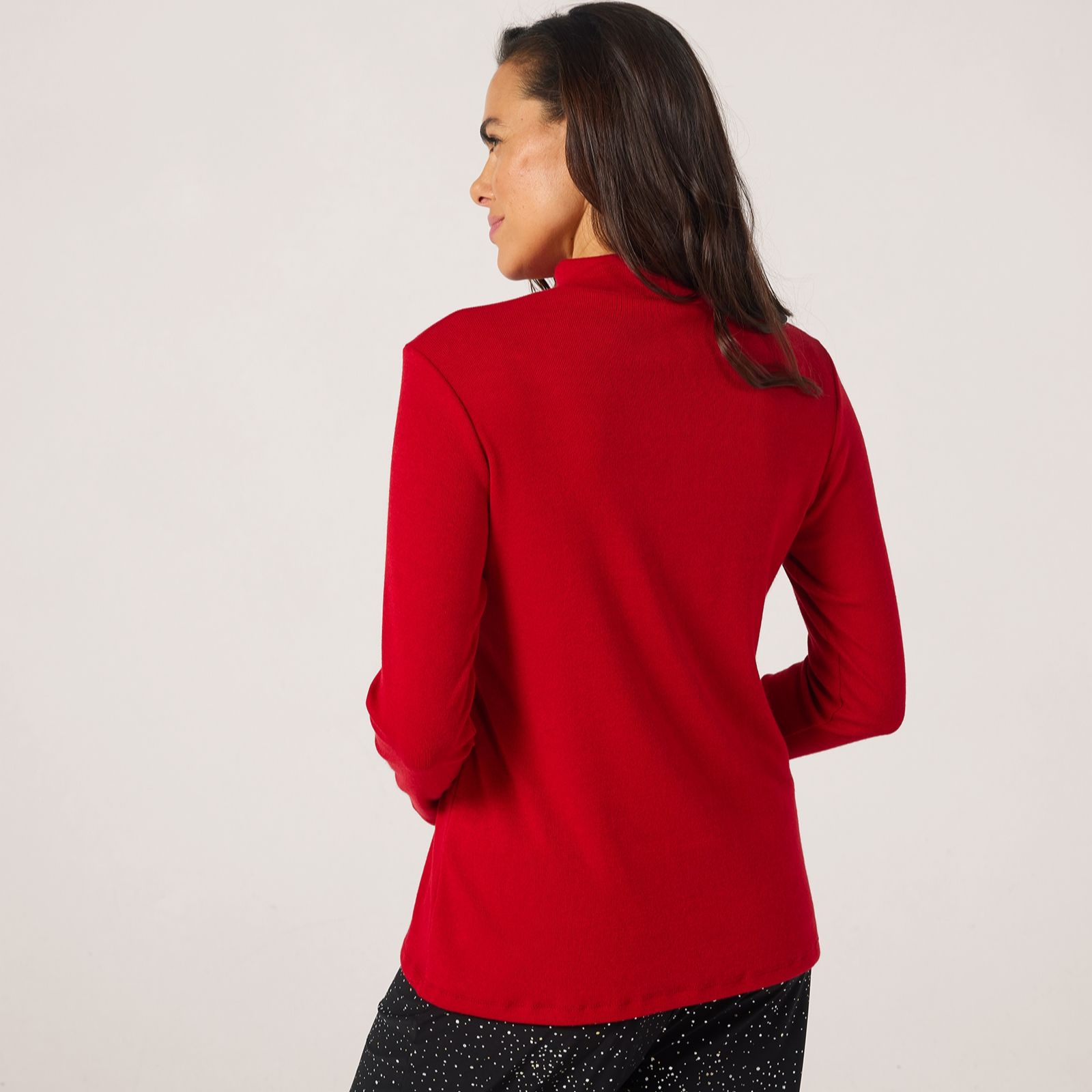 Enjoy the effortless style of this Divine Knit Long Sleeve High Mock Neck Top from Kim & Co. This chic design blends a sleek mock neckline with a casual fit, making it a versatile choice for everything from relaxed coffee dates to smart office looks. Whether layered under a blazer or paired with your favourite jeans, its elegant silhouette and soft knit will keep you looking sharp and feeling comfortable all day.
