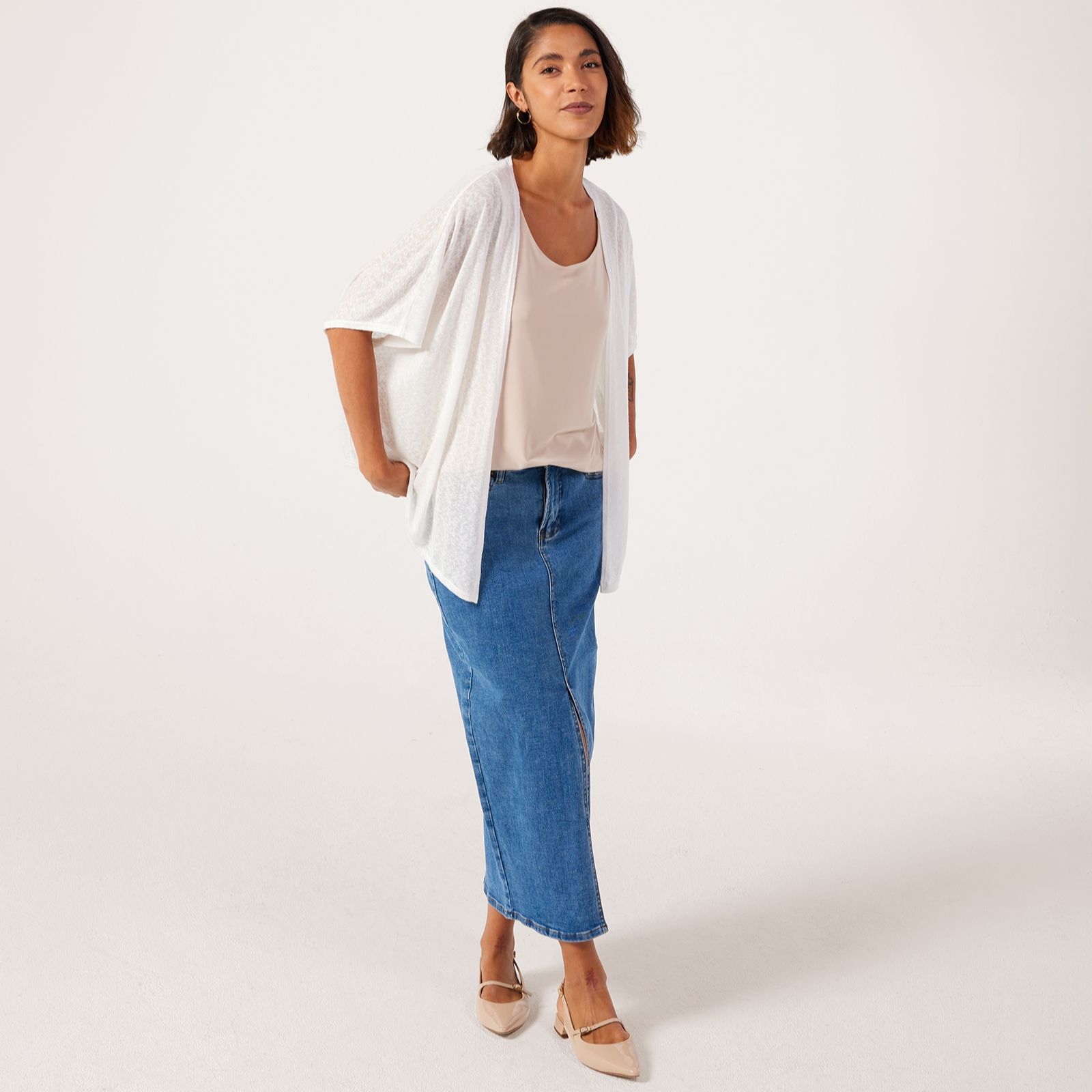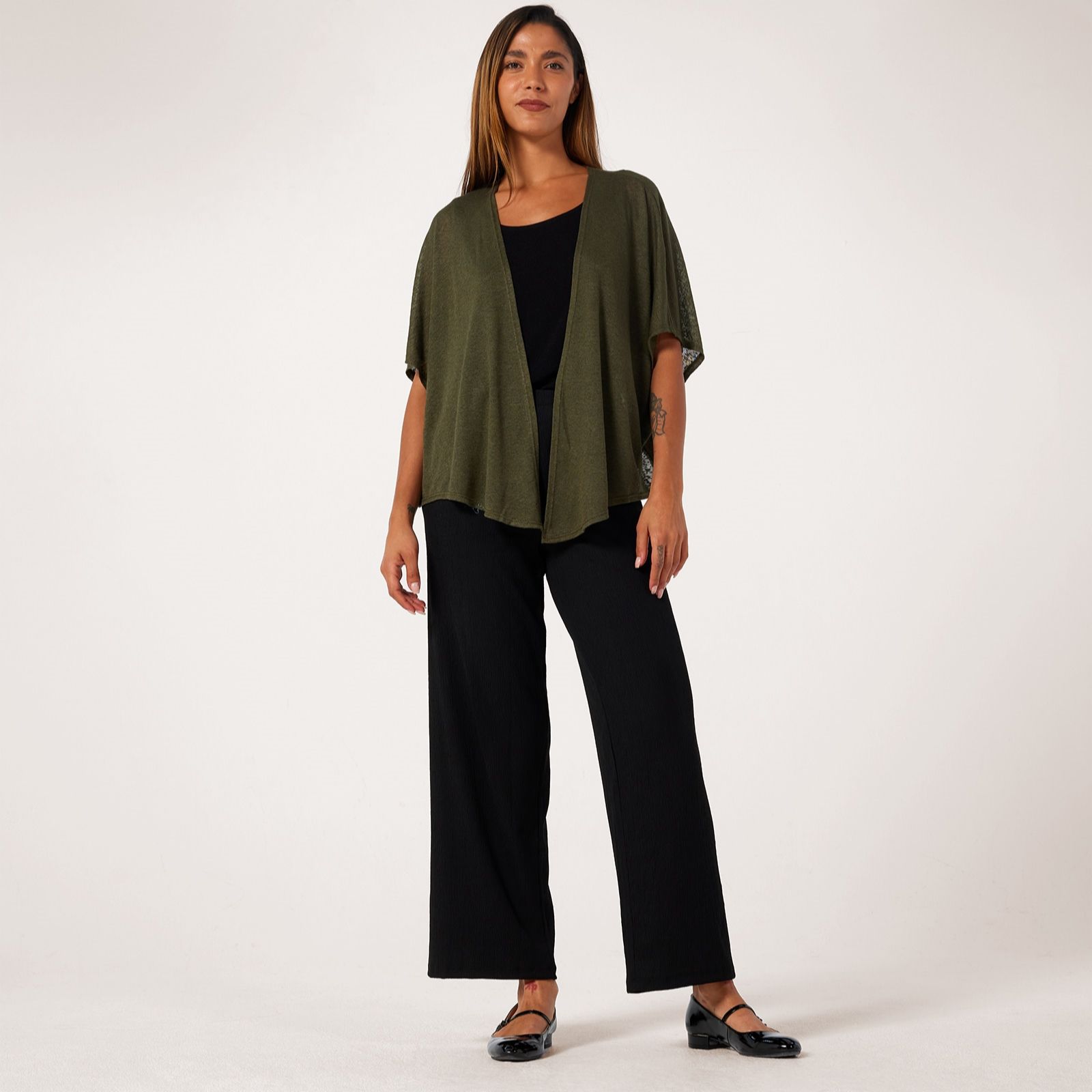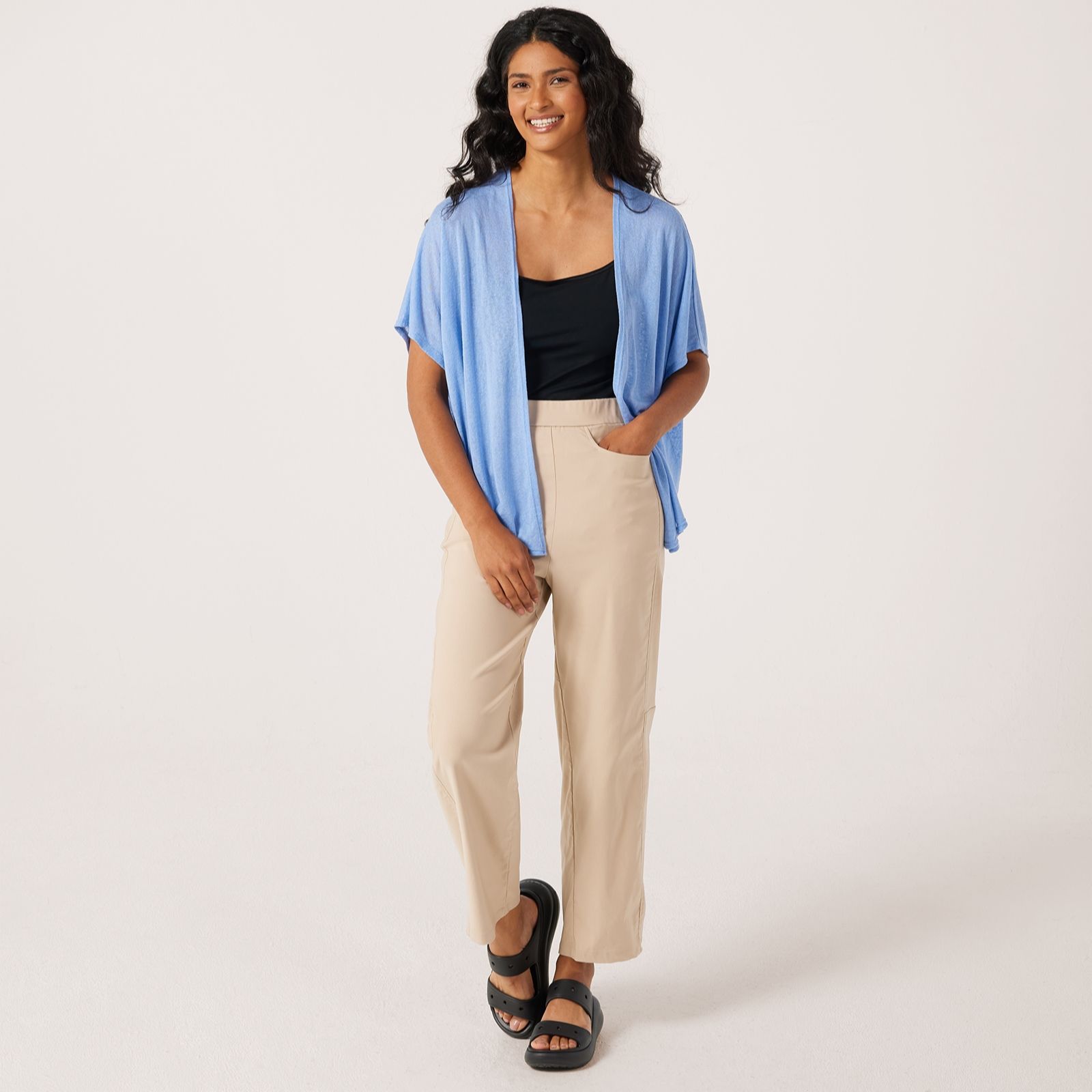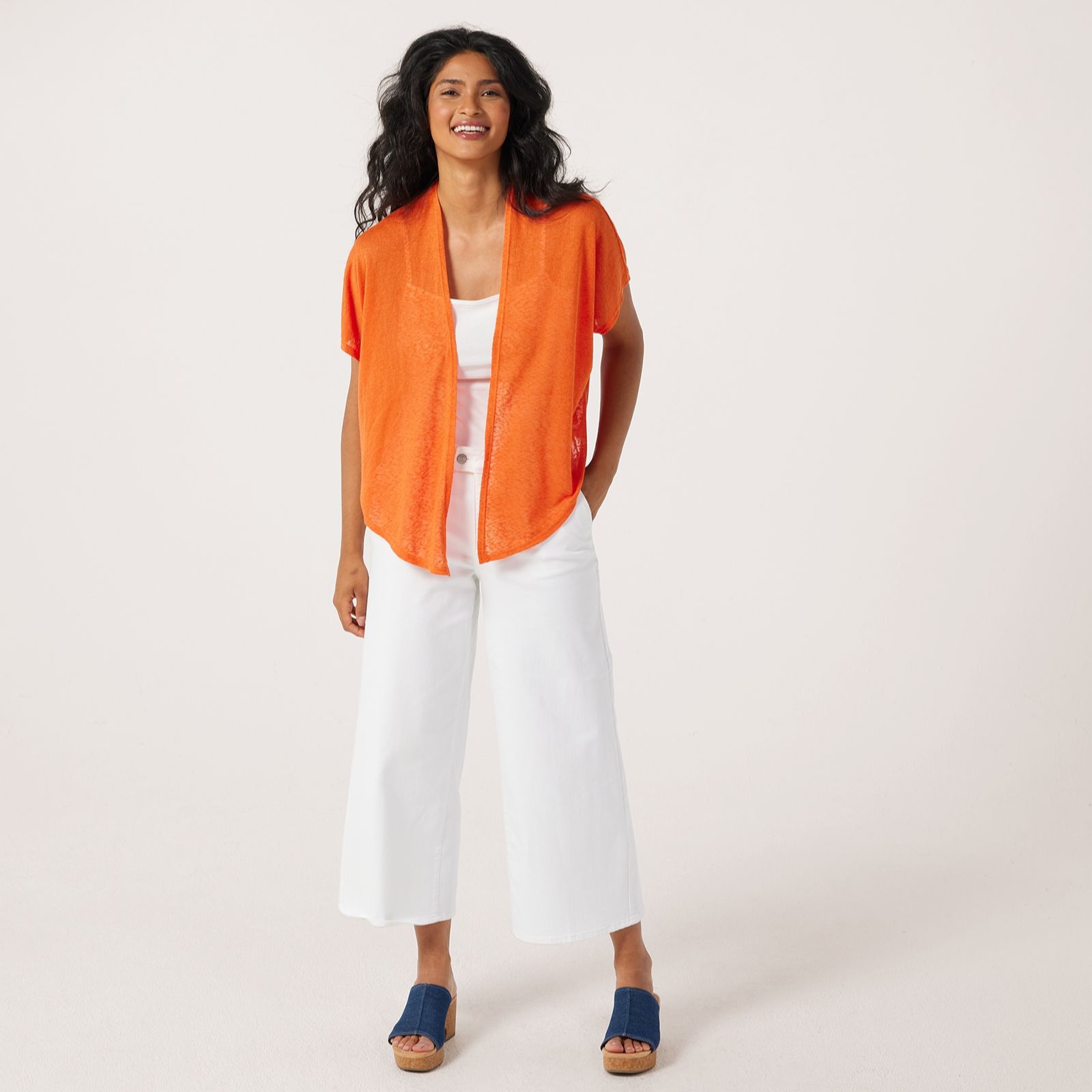 Add a touch of sophistication to your wardrobe with this versatile linen look knit sleeveless bolero from Kim & Co. Designed with an open front and a relaxed fit, its perfect for layering over your favourite outfits for an effortlessly chic look. Ideal for both casual and more formal occasions, this stylish bolero can be worn over a dress for an elegant touch or paired with a blouse and trousers for a polished ensemble.