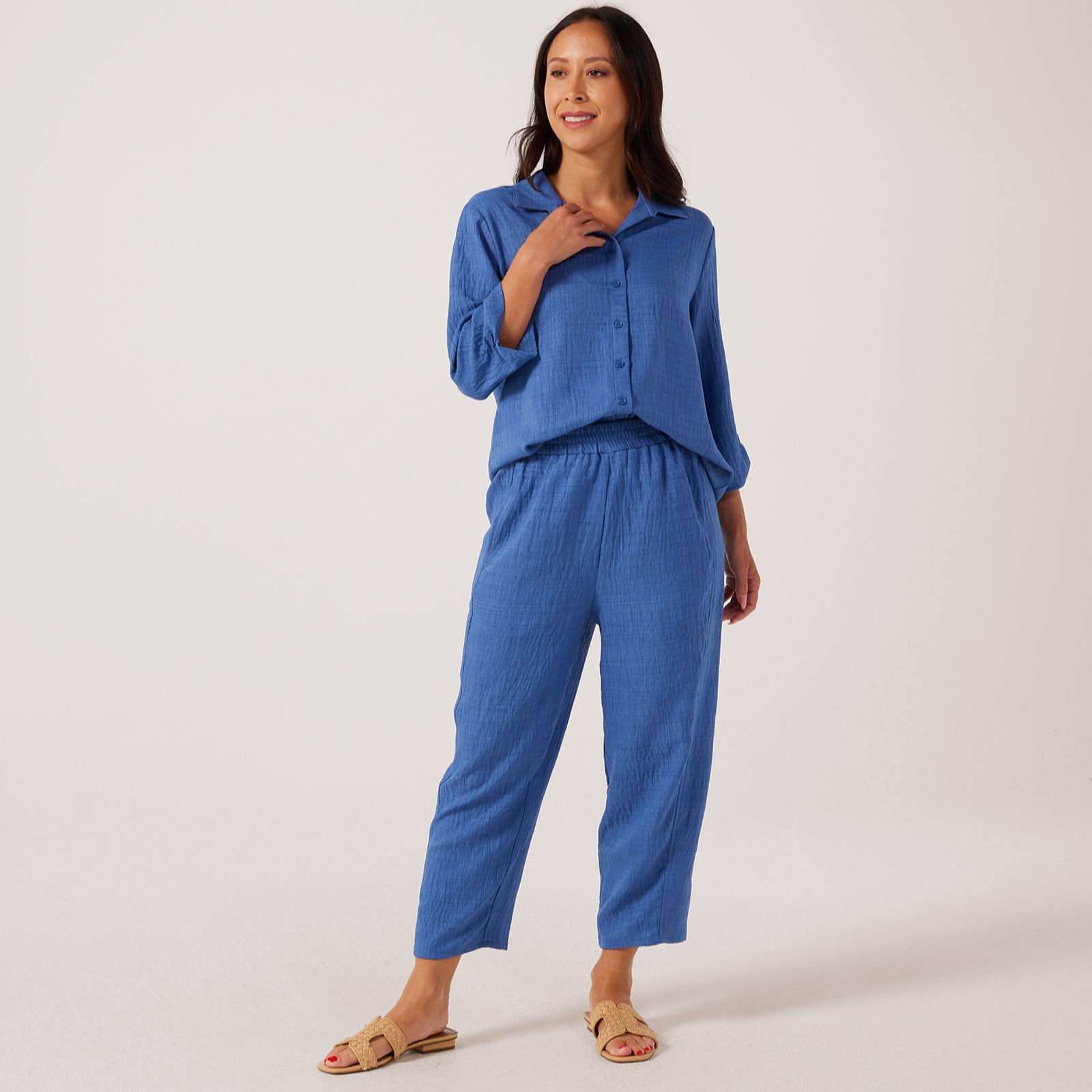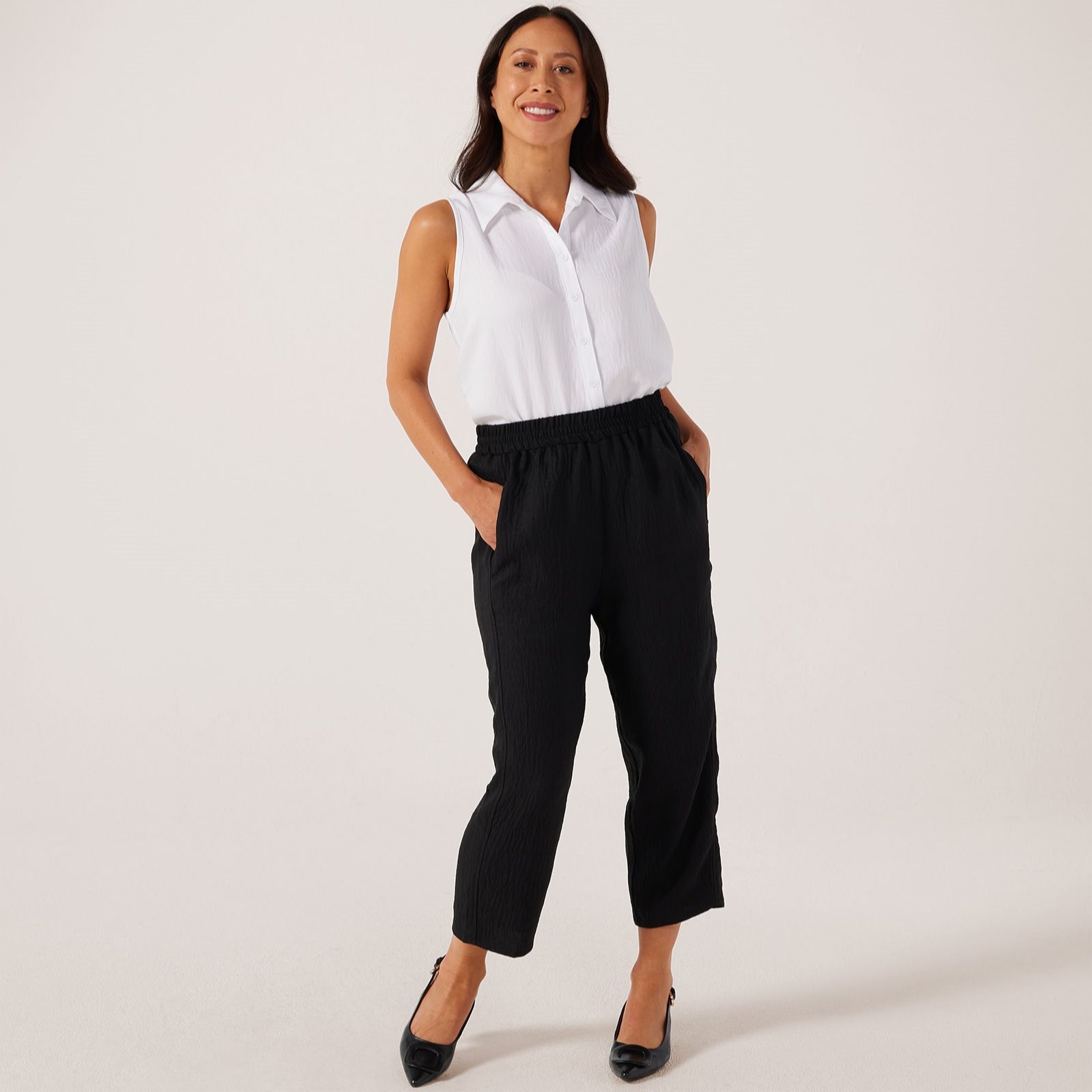 Step out in style with these petite linen style poplin wide leg crop trousers from Kim & Co, designed to bring a breezy, contemporary feel to your everyday wardrobe. These trousers feature an elasticated waistband and forward side seams that create a sleek but comfortable silhouette, while the cropped length is perfect for everything from relaxed lunches to city strolls. Pair with a tucked-in T-shirt and sandals for a laid-back yet polished look.