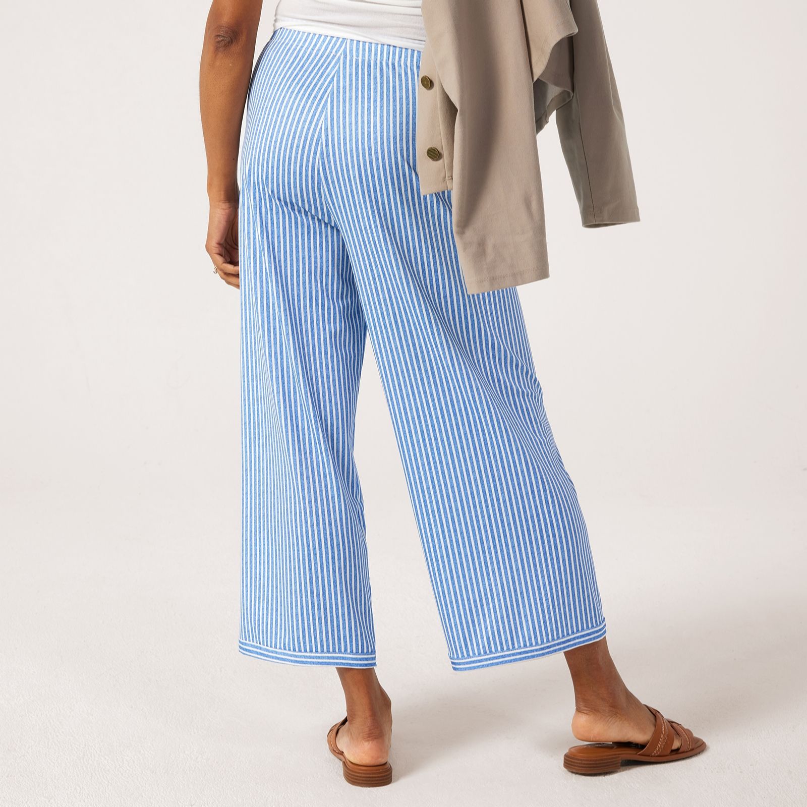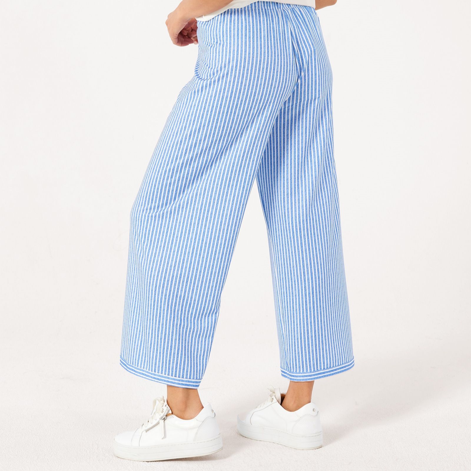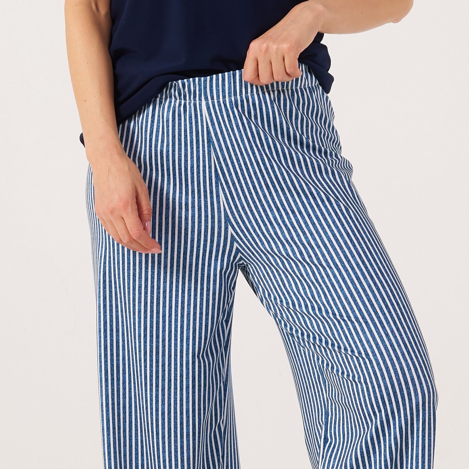 Embrace relaxed elegance with the Kim & Co Printed Brazil Jersey Kim Seamfree Relaxed Leg Ankle Trousers in a standard fit. These ankle-length trousers boast a hidden elastic waistband for a smooth, comfortable fit and a 1" band at the bottom hem that adds a subtle yet stylish touch. Perfect for everyday wear, these trousers are versatile enough to transition from casual outings to cosy evenings at home. Pair them with a simple blouse and your favourite flats for an effortlessly chic look.