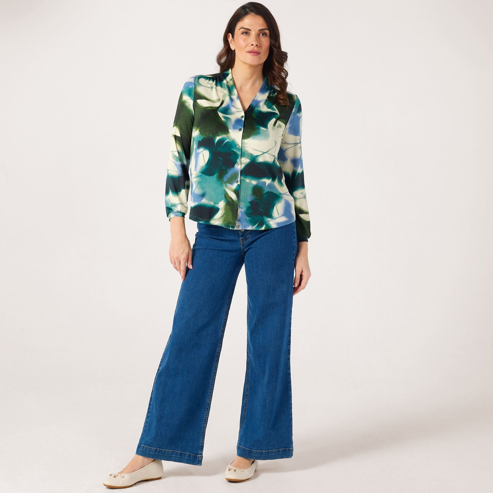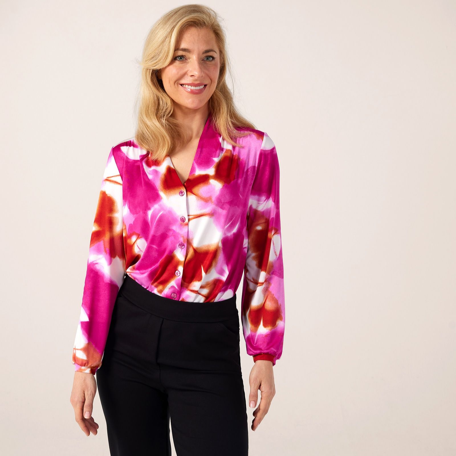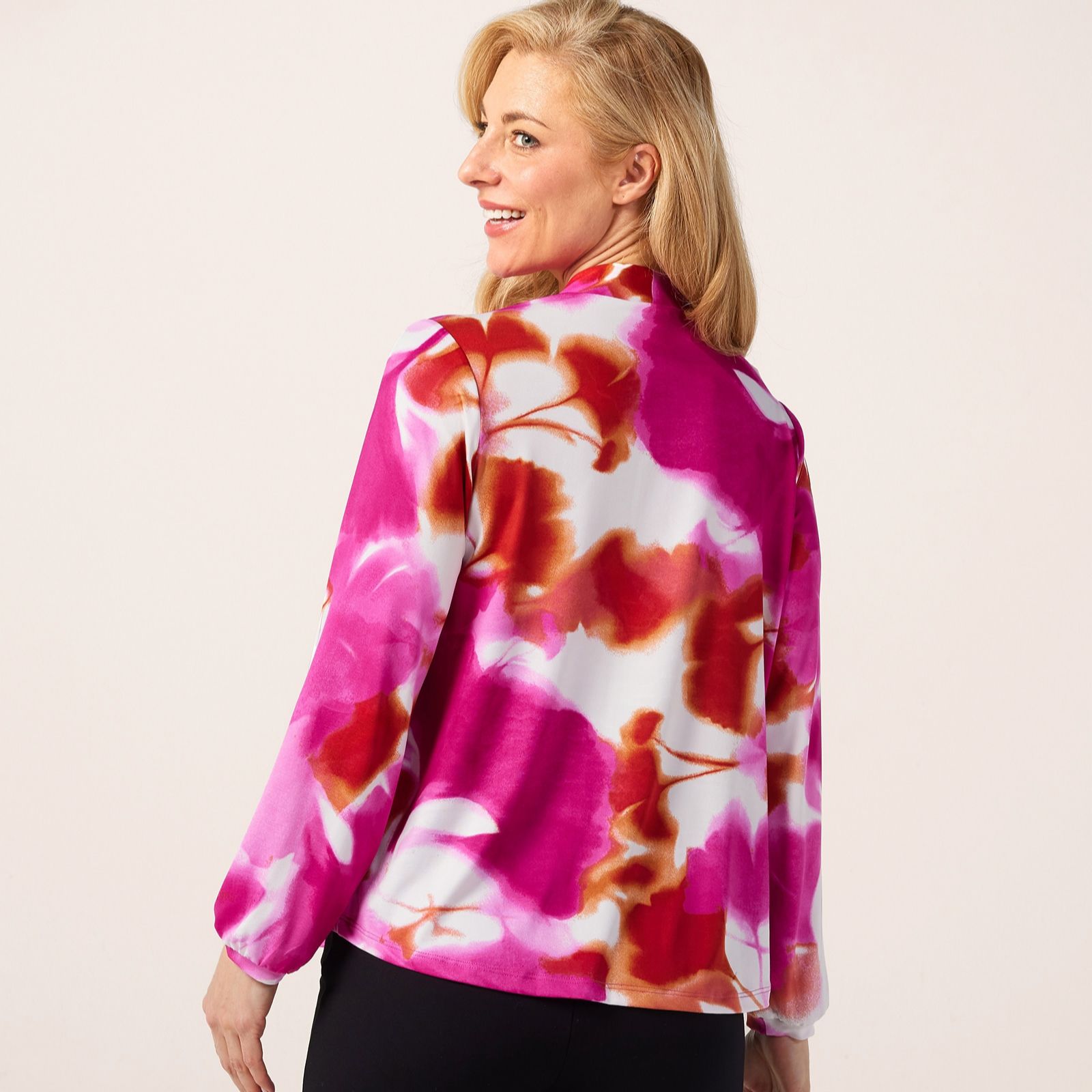 Bursting with vibrant colour, the Printed Brazil Jersey Long Blouson Sleeve Shirt from Kim & Co brings a playful twist to your everyday wardrobe. Its relaxed silhouette, blouson sleeves with delicate shirring, and a flattering V-neckline combine for a look that's effortlessly chic, whether you're heading to brunch or dressing up for a dinner date. Pair it with tailored trousers or slim jeans for a polished finish.