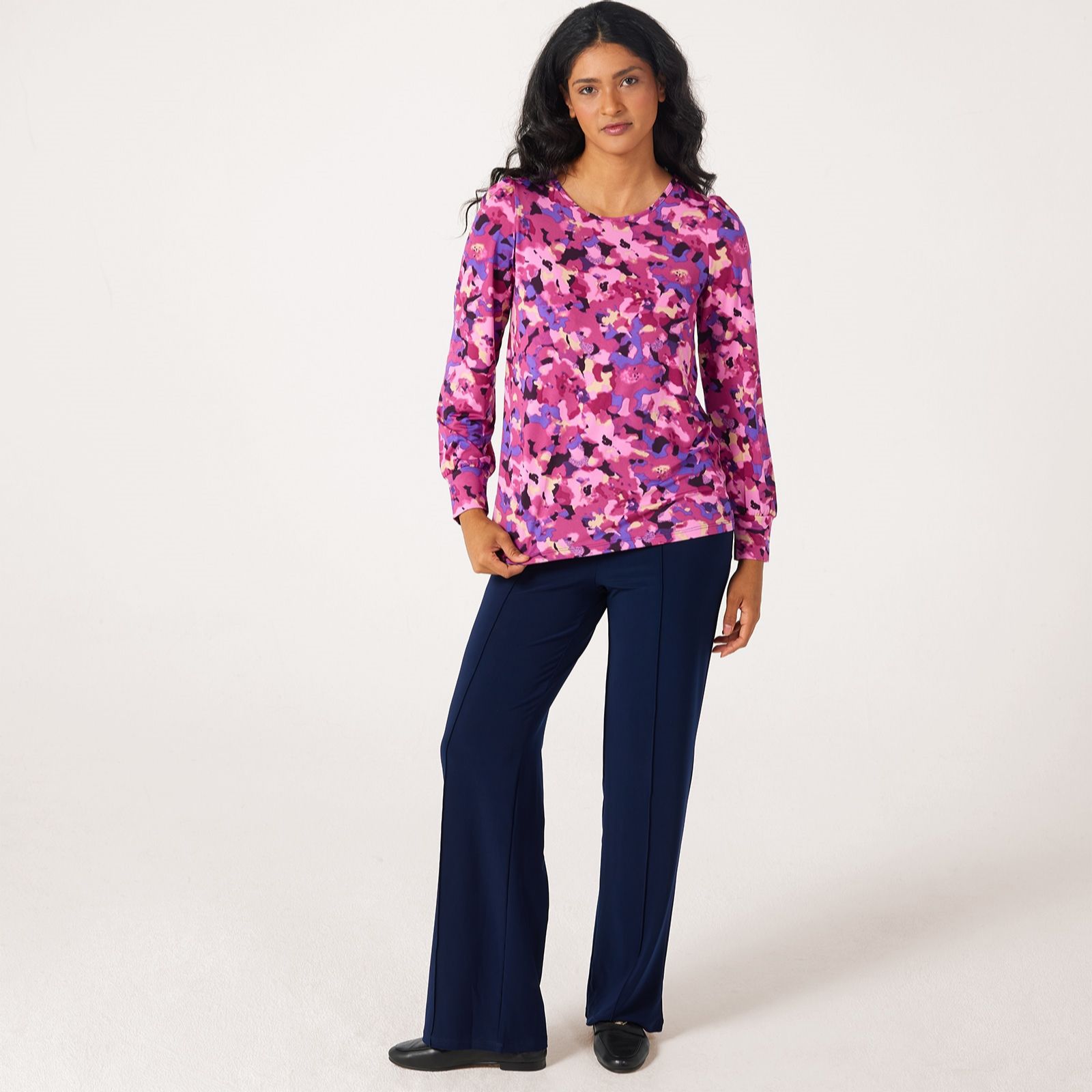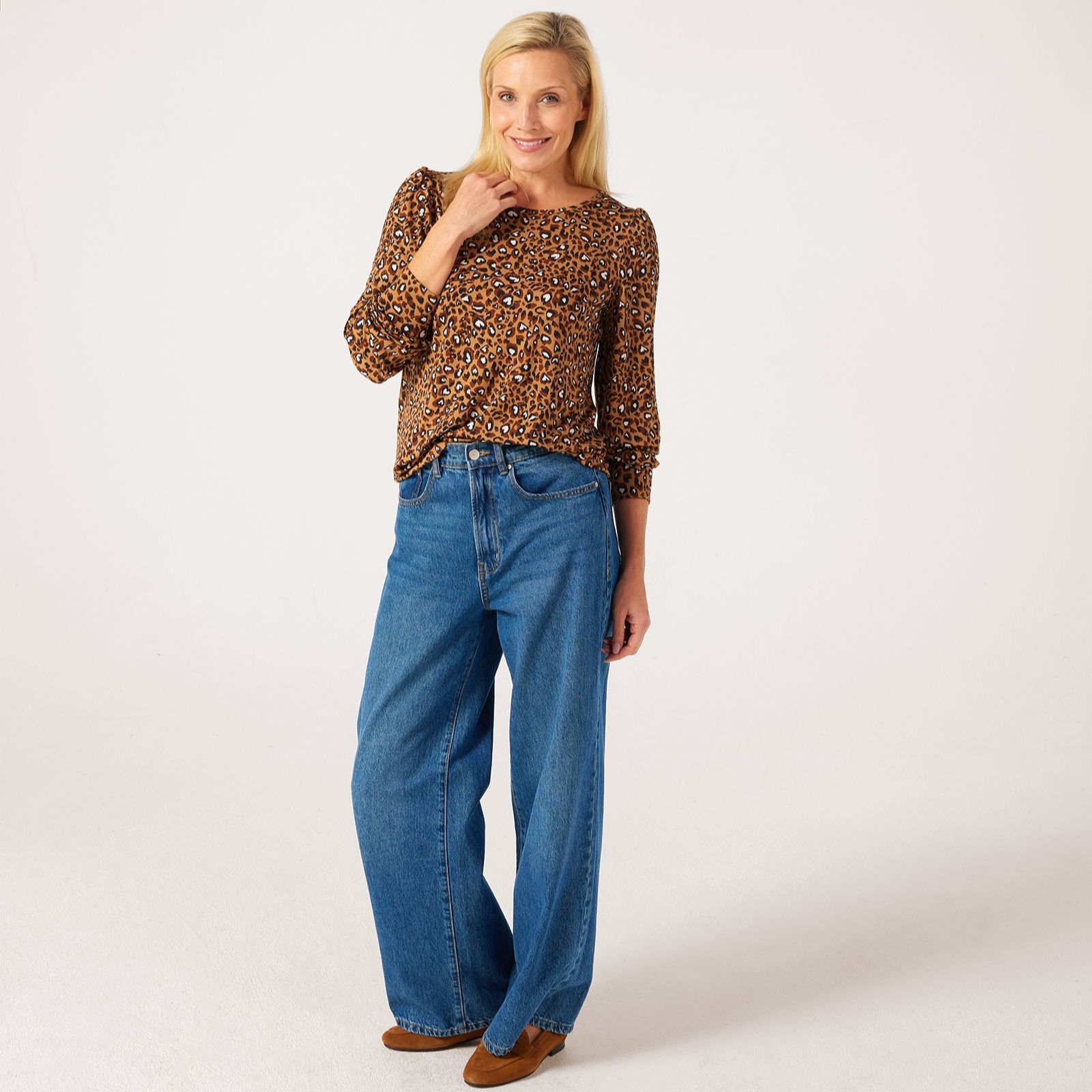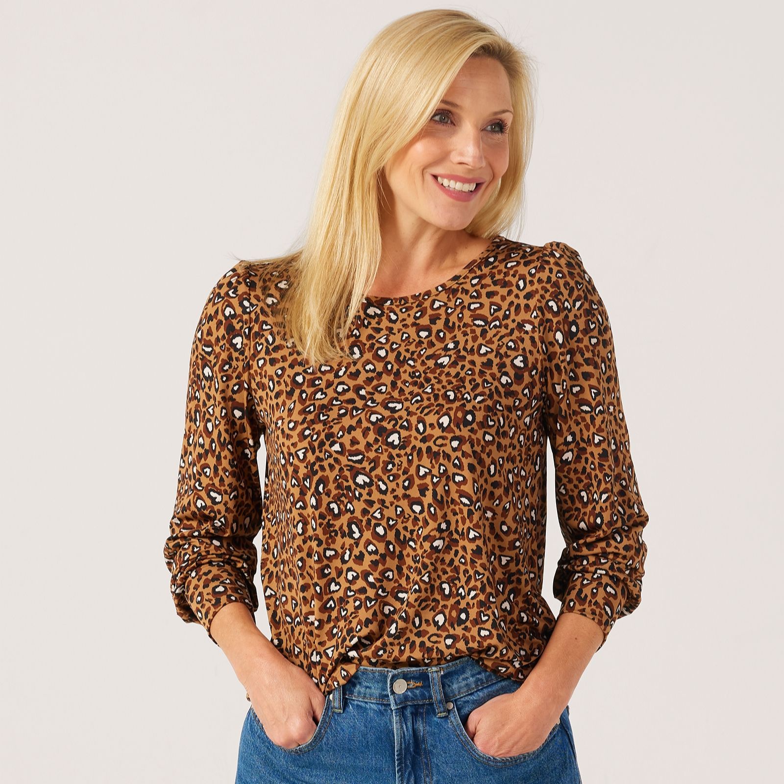 Turn heads in the Kim & Co printed Brazil Jersey long blouson sleeve top, where vibrant prints meet the elegance of blouson sleeves with delicate shirring at the shoulder and cuffs. Whether you're heading to brunch, the office or an evening out, this top brings a touch of sophistication to any occasion. Try pairing it with tailored trousers or your favourite jeans for a chic, effortless look.