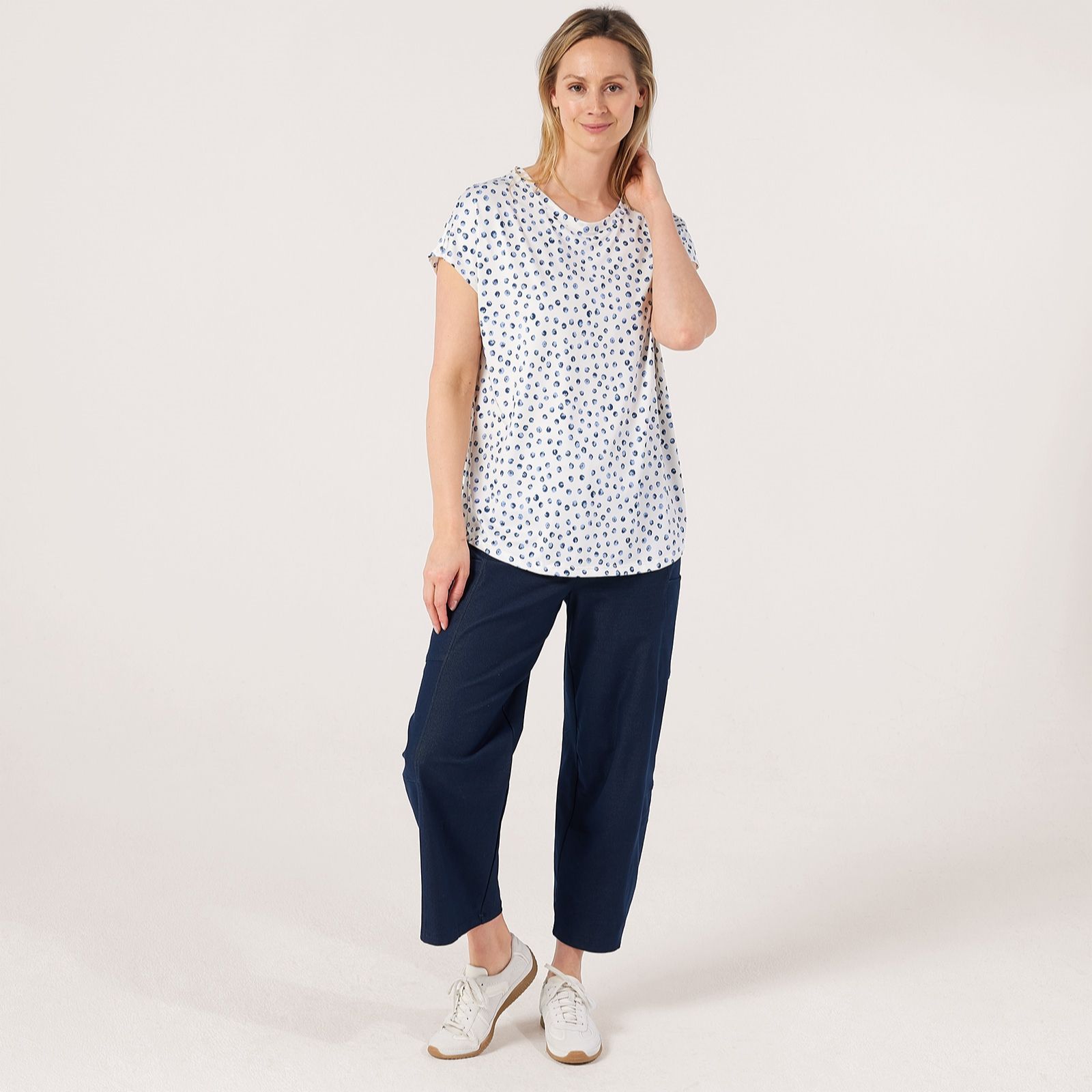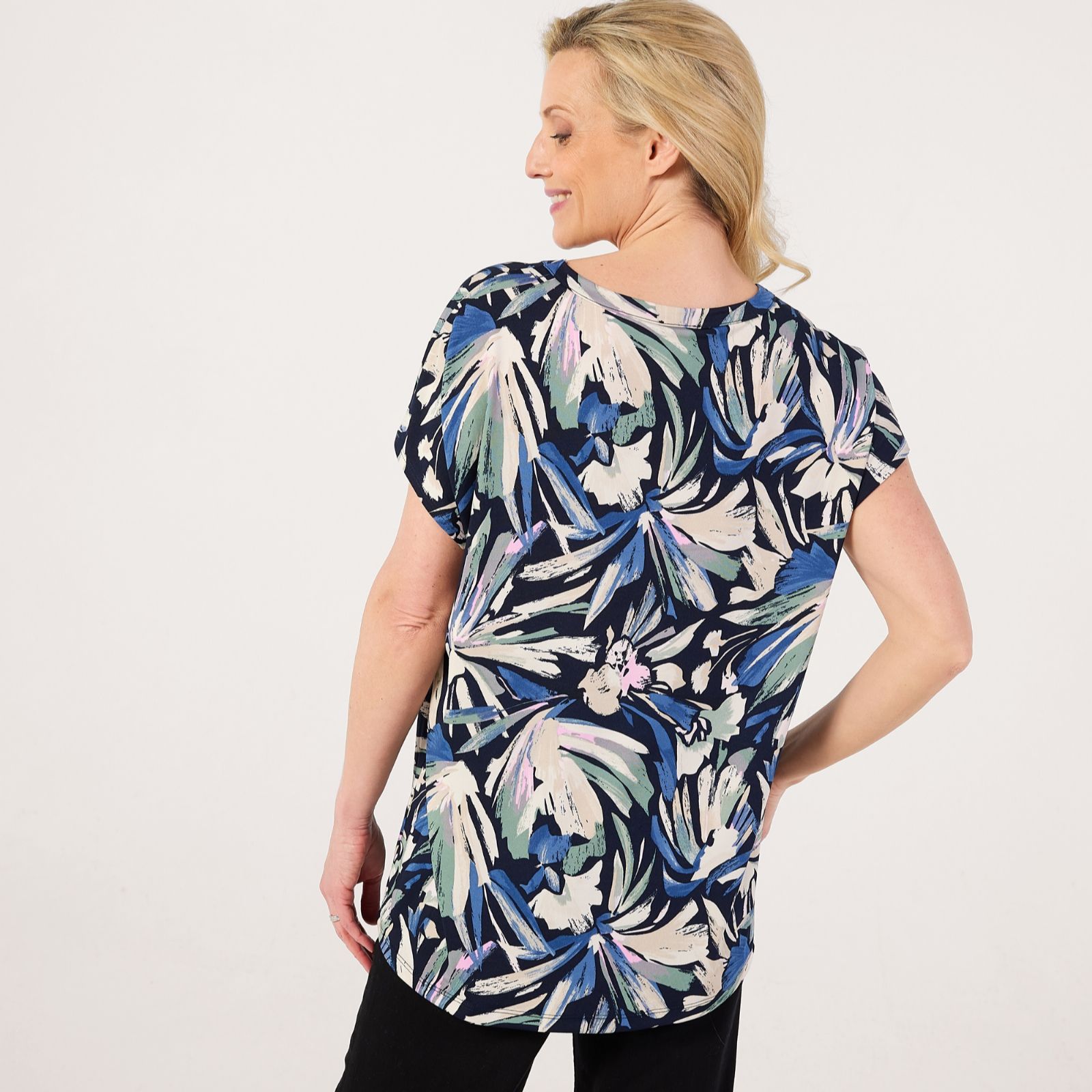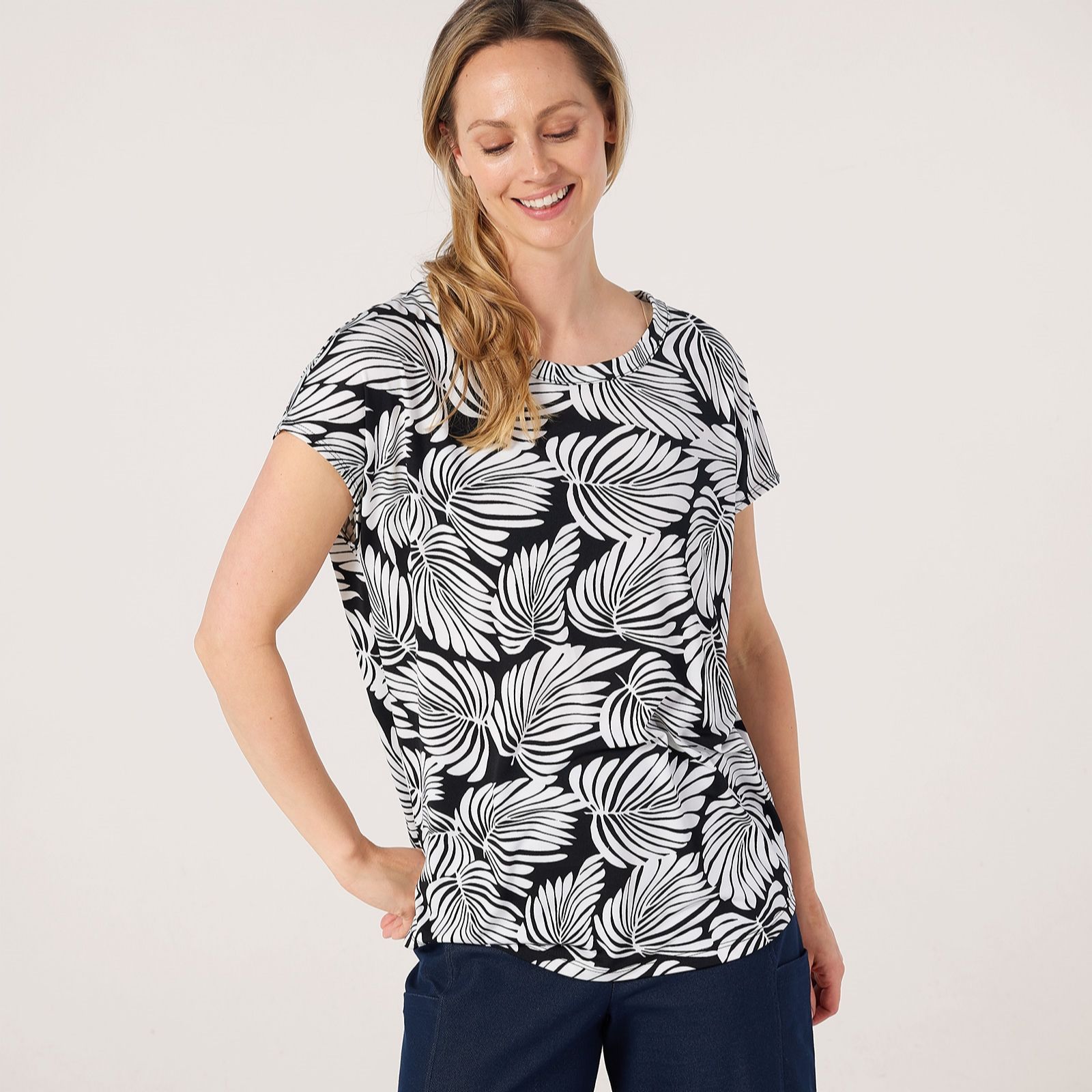 Step into effortless style with the Printed Brazil jersey relaxed short dolman sleeve tunic from Kim & Co, featuring vibrant prints and a comfortable loose fit, finished with a round neck and band detail. Perfect for everything from brunch with friends to relaxed weekends at home, this tunic brings a pop of colour to any occasion. Try pairing it with slim trousers or leggings for a chic, laid-back look thats easy to dress up or down.