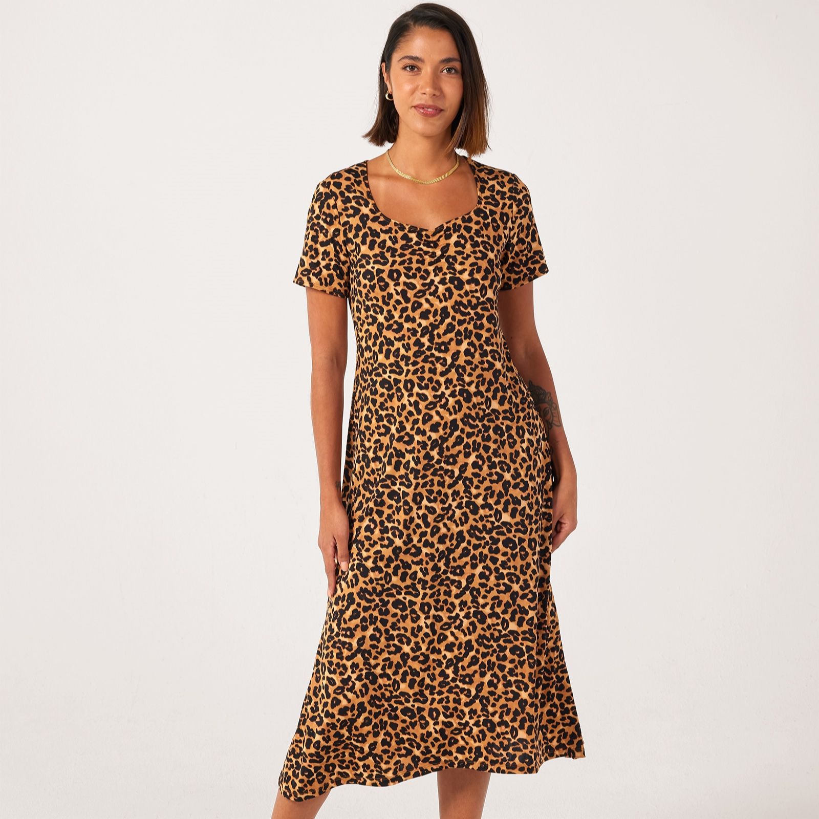 Bring a touch of effortless elegance to your wardrobe with this printed Brazil jersey midi dress from Kim & Co, designed with a classic sweetheart neckline, soft shirring at the centre front and a gently curved hem for graceful movement. Ideal for anything from daytime gatherings to evening socials, this dress adapts beautifully to the occasion. Pair it with block-heeled mules and a cropped jacket for a chic, polished finish.