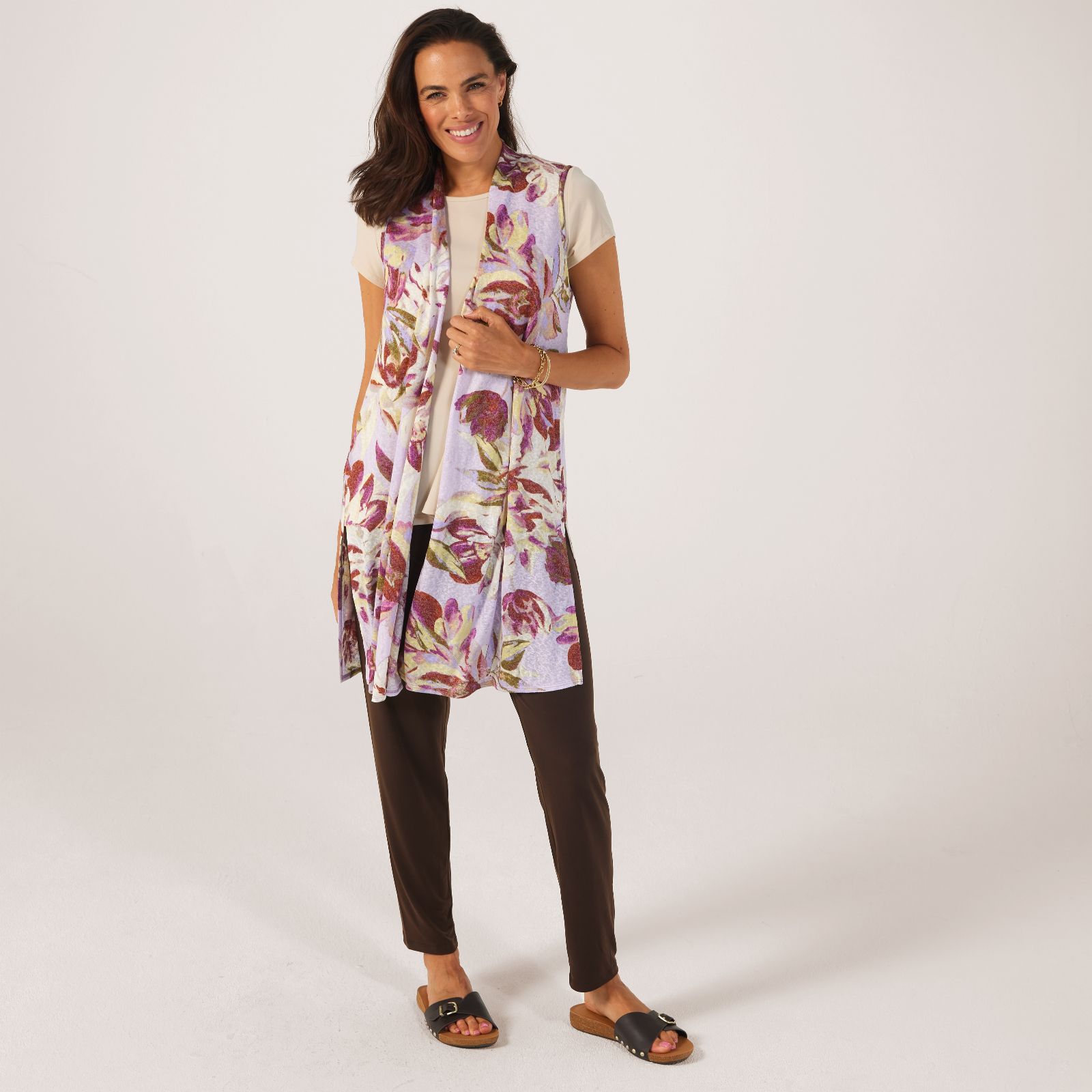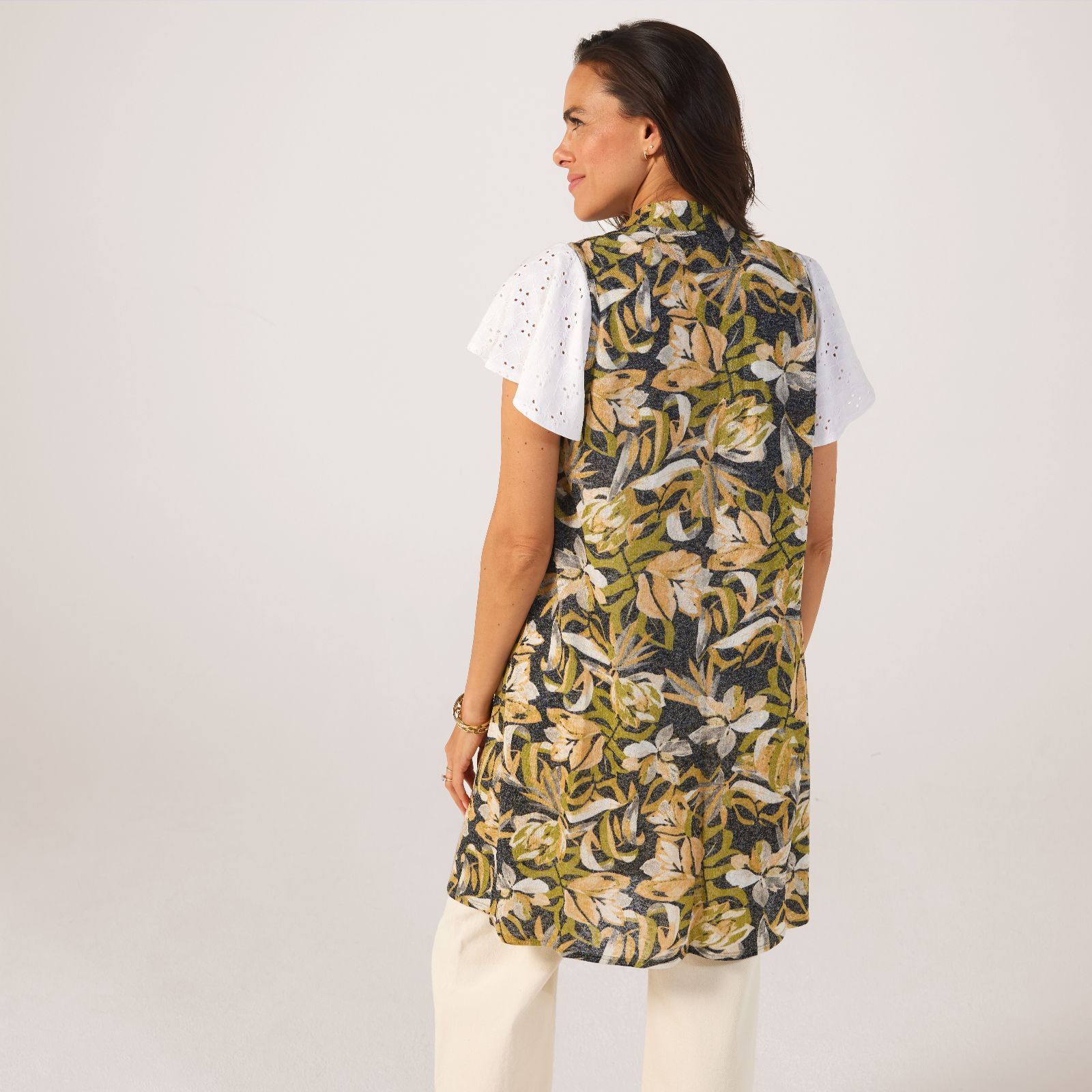Experience effortless style with the printed linen look knit long vest from Kim & Co. This relaxed-fit vest is designed to elevate your everyday wardrobe with its sleeveless silhouette and edge-to-edge closure, making it perfect for layering over your favourite tops. Whether you're heading to a casual brunch or a day at the office, this versatile piece can be dressed up or down. Pair it with tailored trousers for a polished look or with jeans for a laid-back vibe.