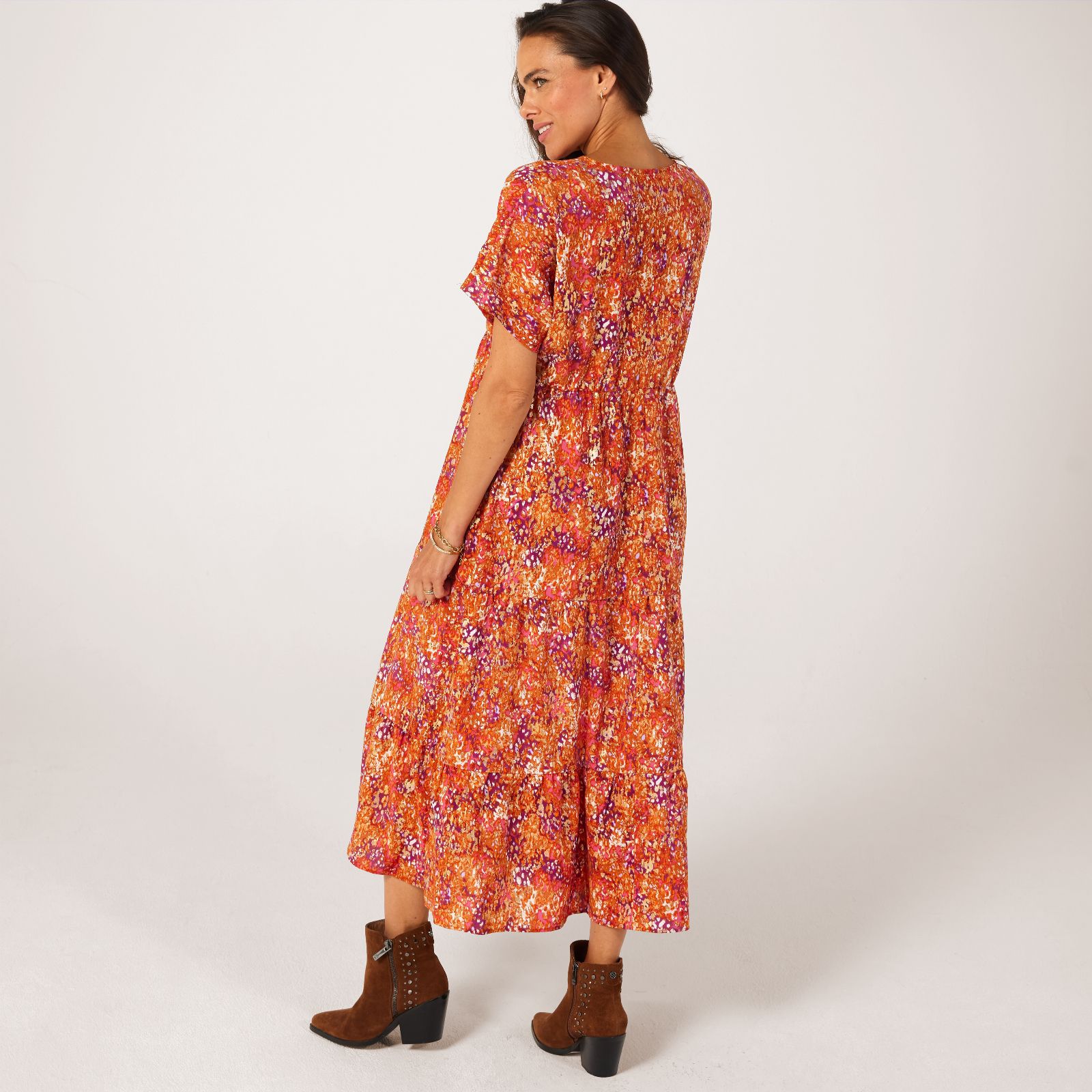 Kim & Co Printed Poplin Elbow Sleeve Maxi Tired Dress