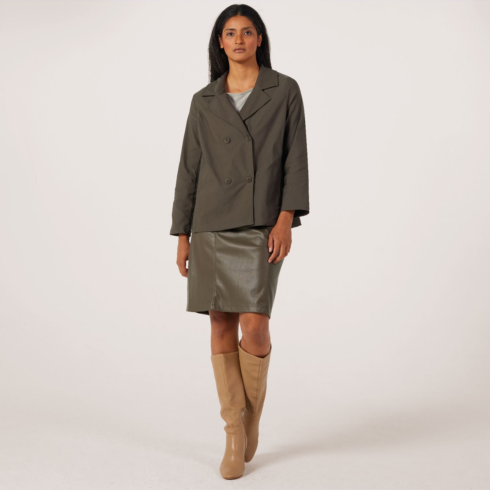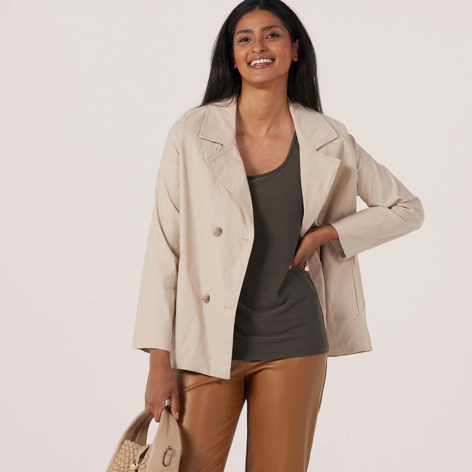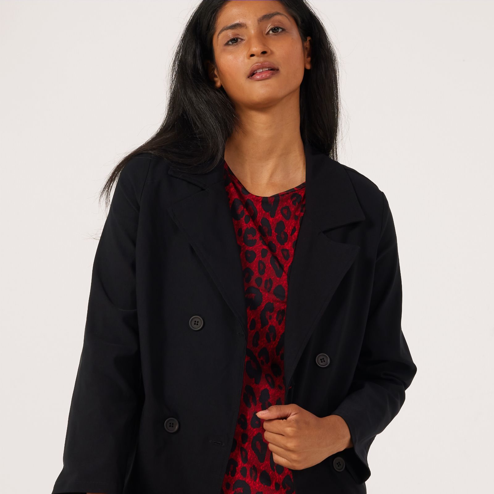 Step out in style whatever the weather with this Soft Millennium Mini Trench Coat from Kim & Co. The tailored collar and double-breasted front give this coat a smart, polished finish, while the hidden front pockets add a practical touch. Perfect for elevating your workwear or layering over casual outfits, it's a go-to piece for both everyday errands and special occasions. Try styling it with slim jeans and ankle boots for an effortlessly chic look.