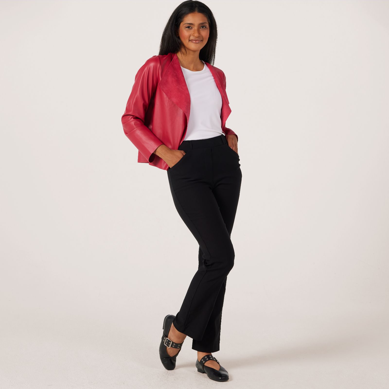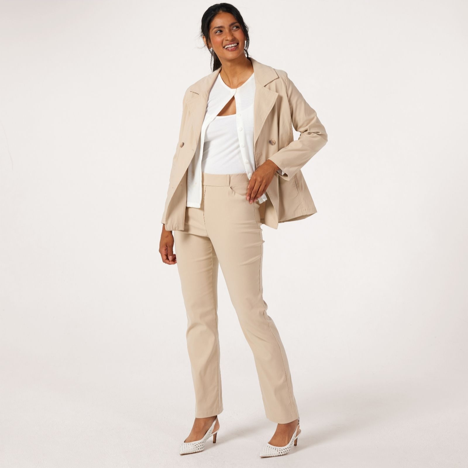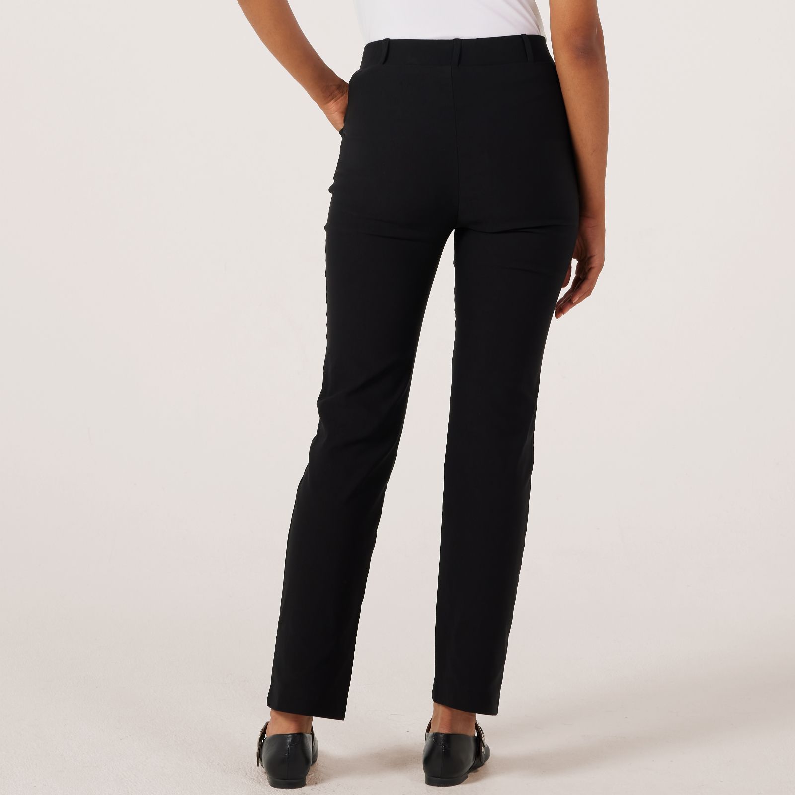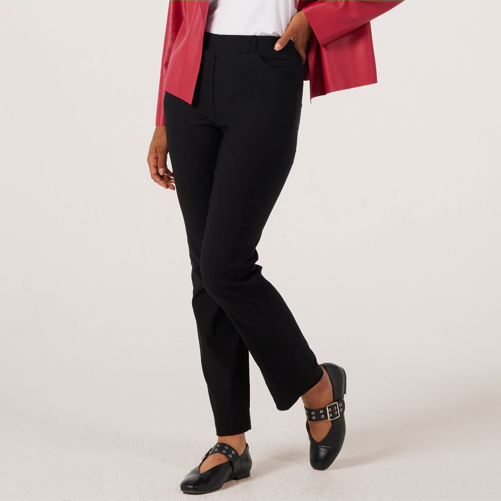 Indulge in easy sophistication with the Soft Millennium narrow leg trousers from Kim & Co, blending a tailored silhouette with everyday comfort. These trousers feature an elasticated waistband and faux fly placket, creating a polished look without sacrificing wearability, while practical belt loops and front pockets add a finishing touch. Dress them up for work or style them with a relaxed knit for off-duty days - these trousers are a true wardrobe staple.