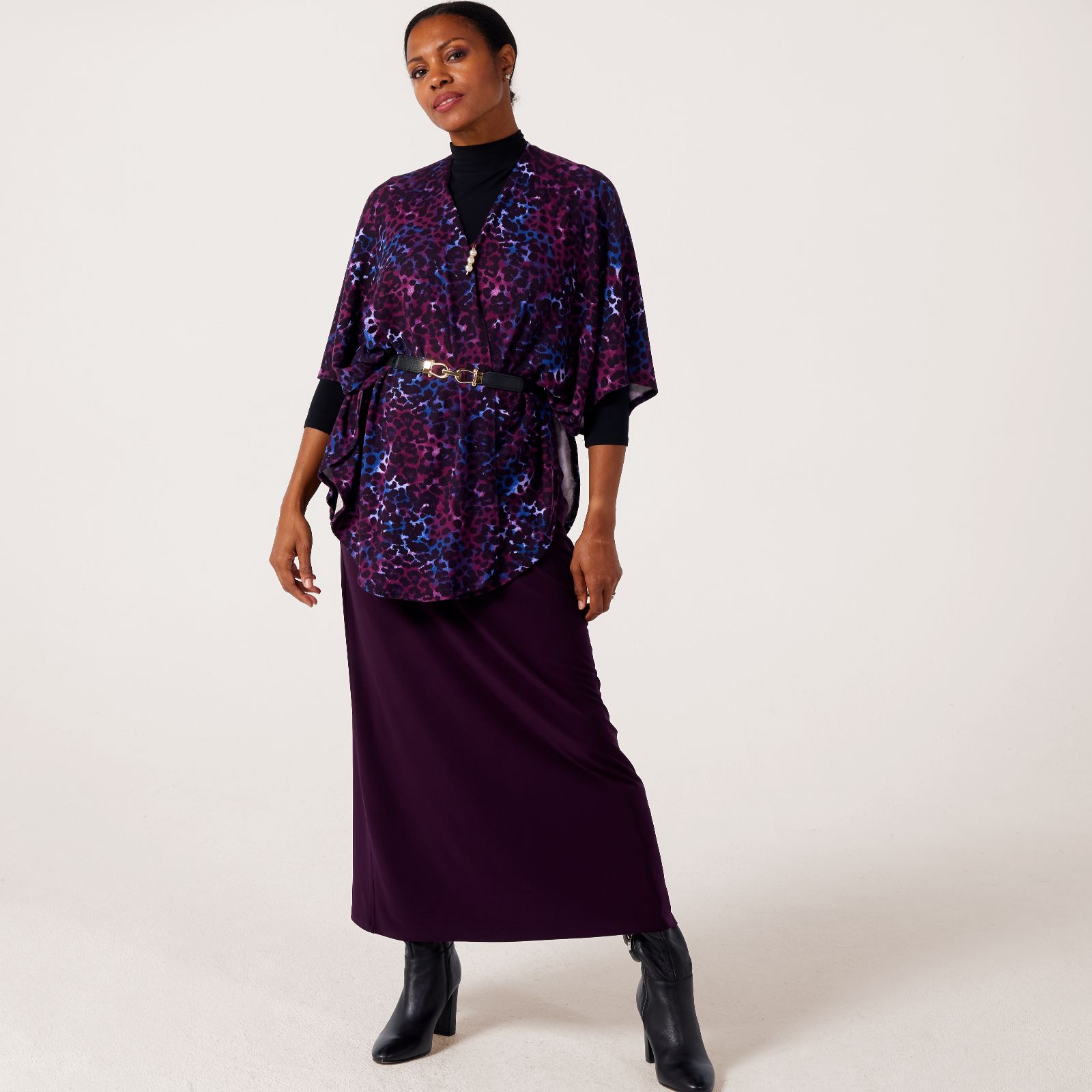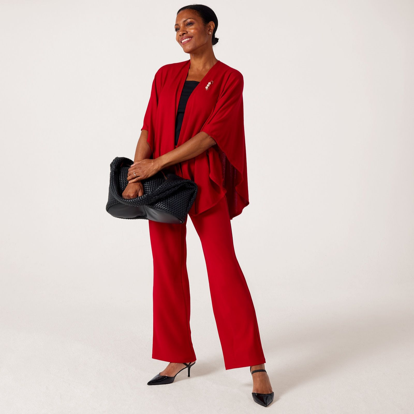 Cosy up and stay warm with the Soft Touch Cozy Cape from Kim & Co, designed with a relaxed fit and open front for laid-back dressing. The cape's standout decorative pearl quilt pin adds a touch of sparkle, making it perfect for bringing a hint of elegance to everyday outfits or adding a chic finishing touch on special occasions. Layer it over a simple top and slim trousers for an effortlessly polished look.