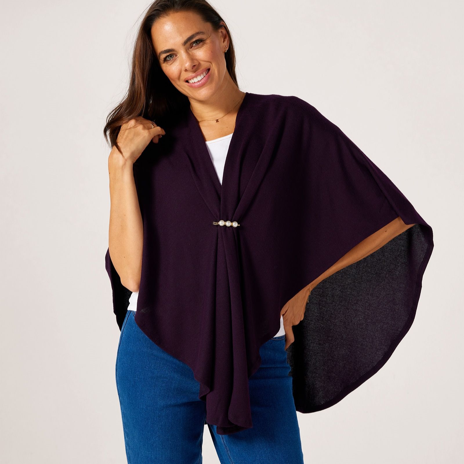 Kim & Co Soft Touch Cozy Cape With Rhinestone Quilt Pin