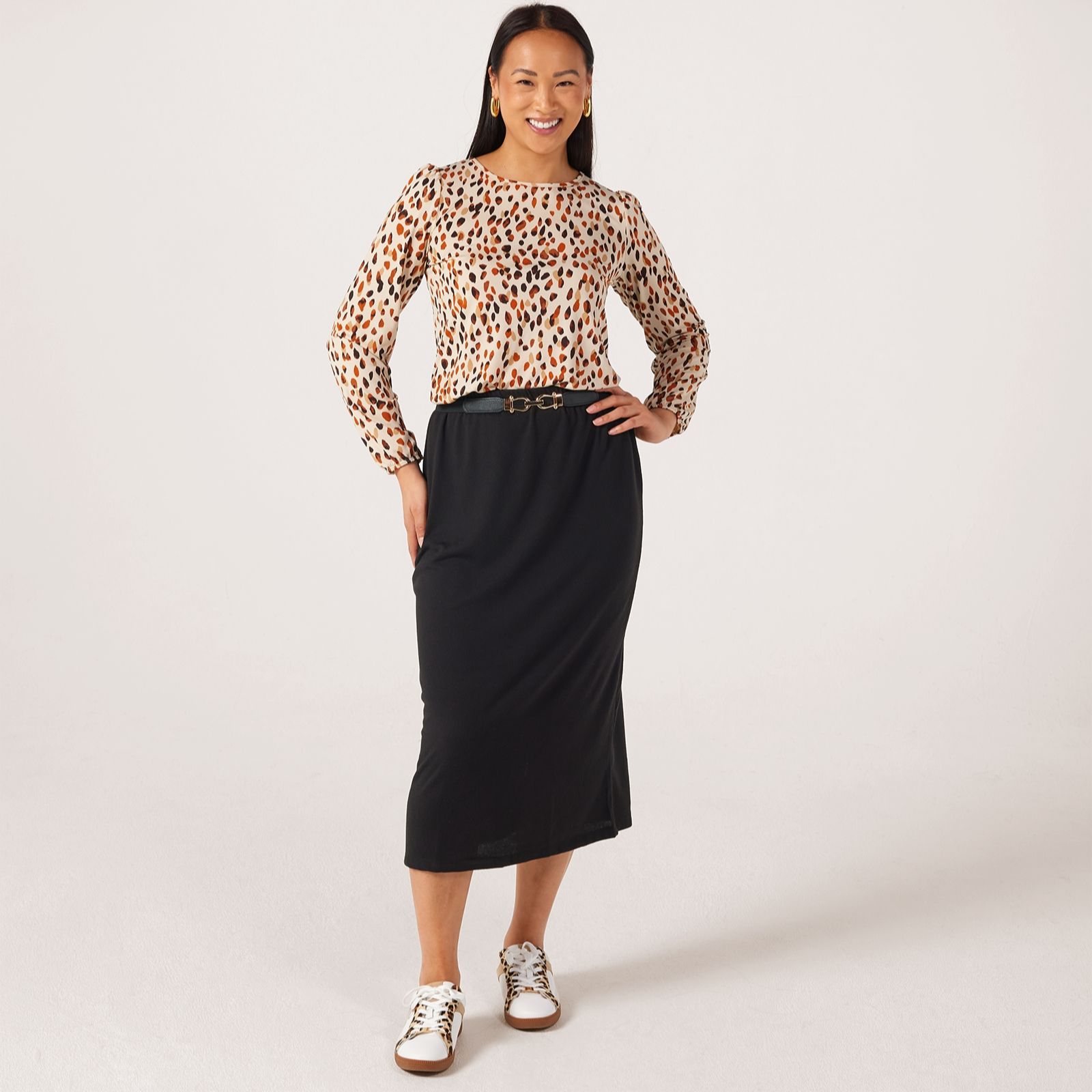 Step out in style with this Soft Touch lined long skirt from Kim & Co, offering a fluid silhouette and a chic back slit that moves with you. Perfect for both relaxed afternoons and evenings out, this skirt's casual fit and elasticated waist ensure comfort all day. Pair it with a tucked-in blouse and ankle boots for effortless sophistication, whatever your plans.