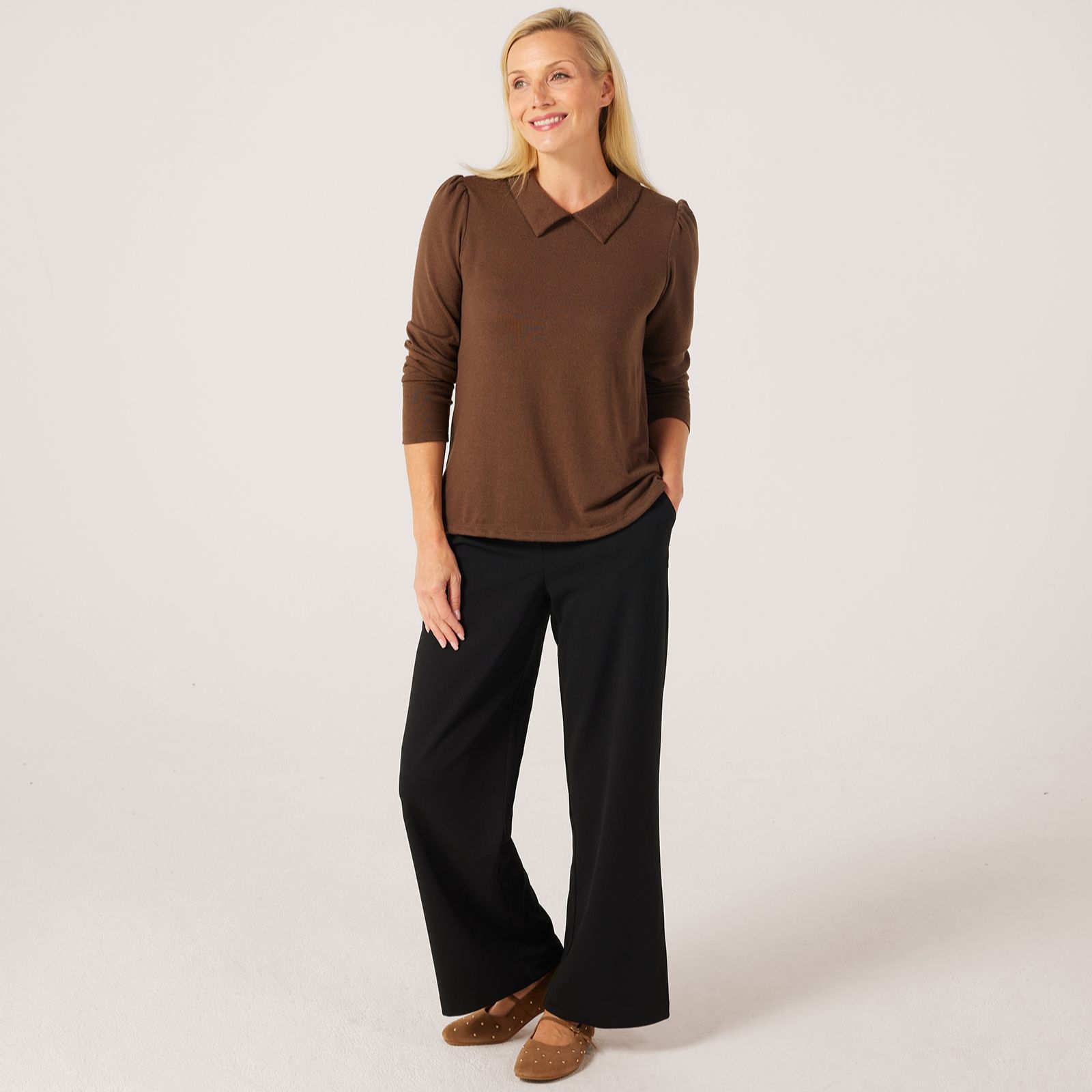 Kim & Co Soft Touch Long Sleeve Collar Top