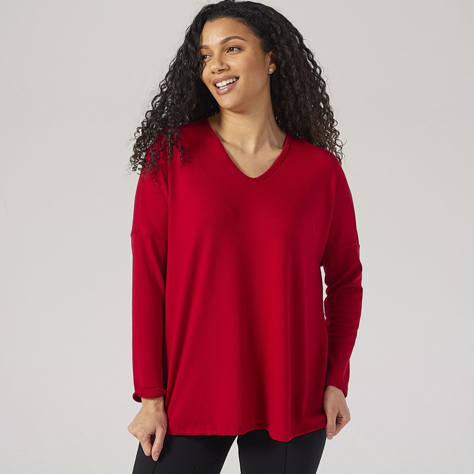 Embrace relaxed tailoring with the Soft Touch long sleeve tunic from Kim & Co, a beautifully easy-going piece designed with a V-neckline, drop shoulders and a gently rounded hem for a laid-back silhouette. Perfect for casual days, cosy evenings or layering for weekend outings, its soft knit makes it a joy to wear. Style it with slim trousers and ankle boots for an effortlessly chic look that works from day to night.